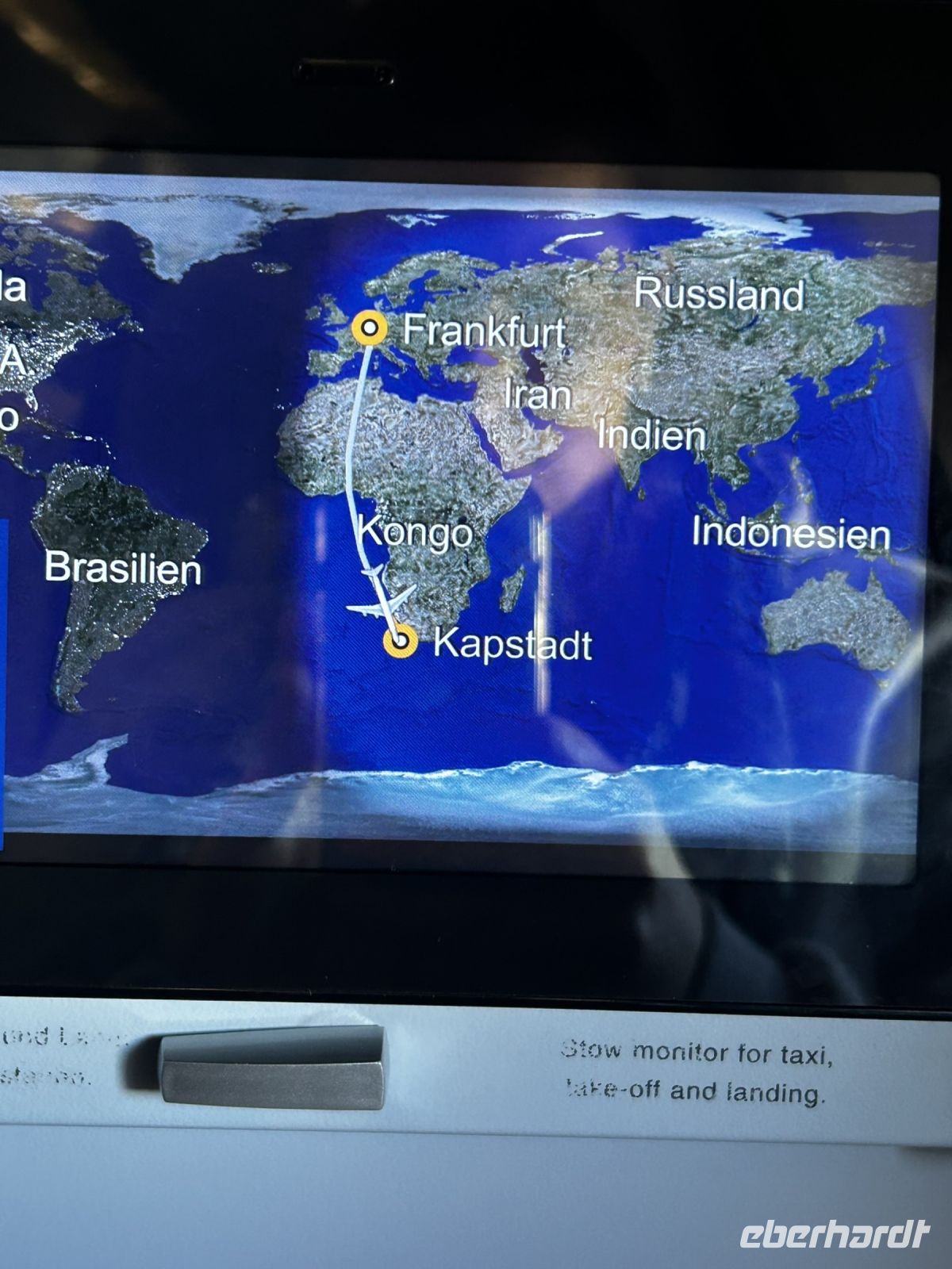 Das Boarding beginnt und wir steigen in den Flieger, welcher uns innerhalb von 10,5 Stunden nach Kapstadt bringt.