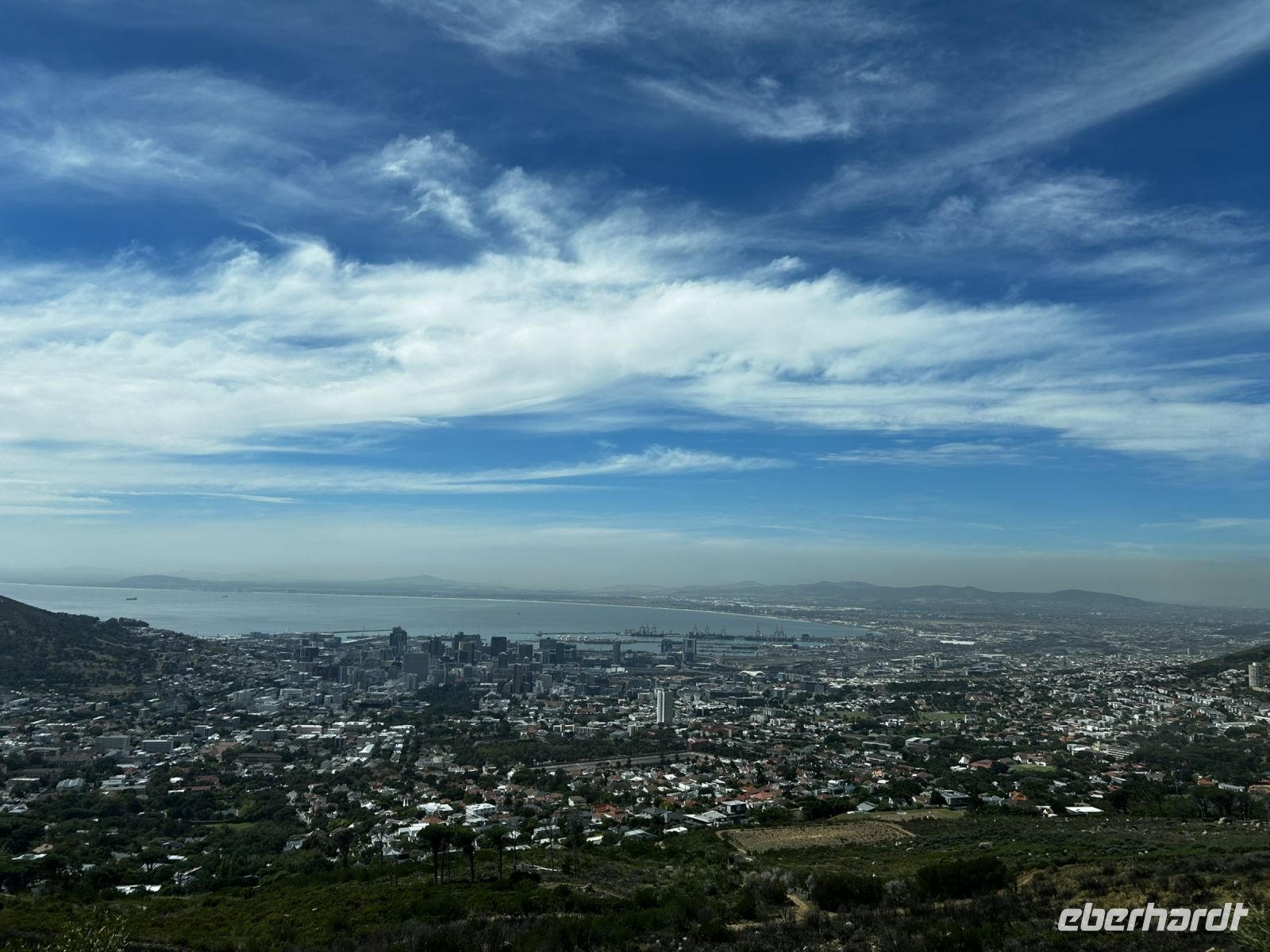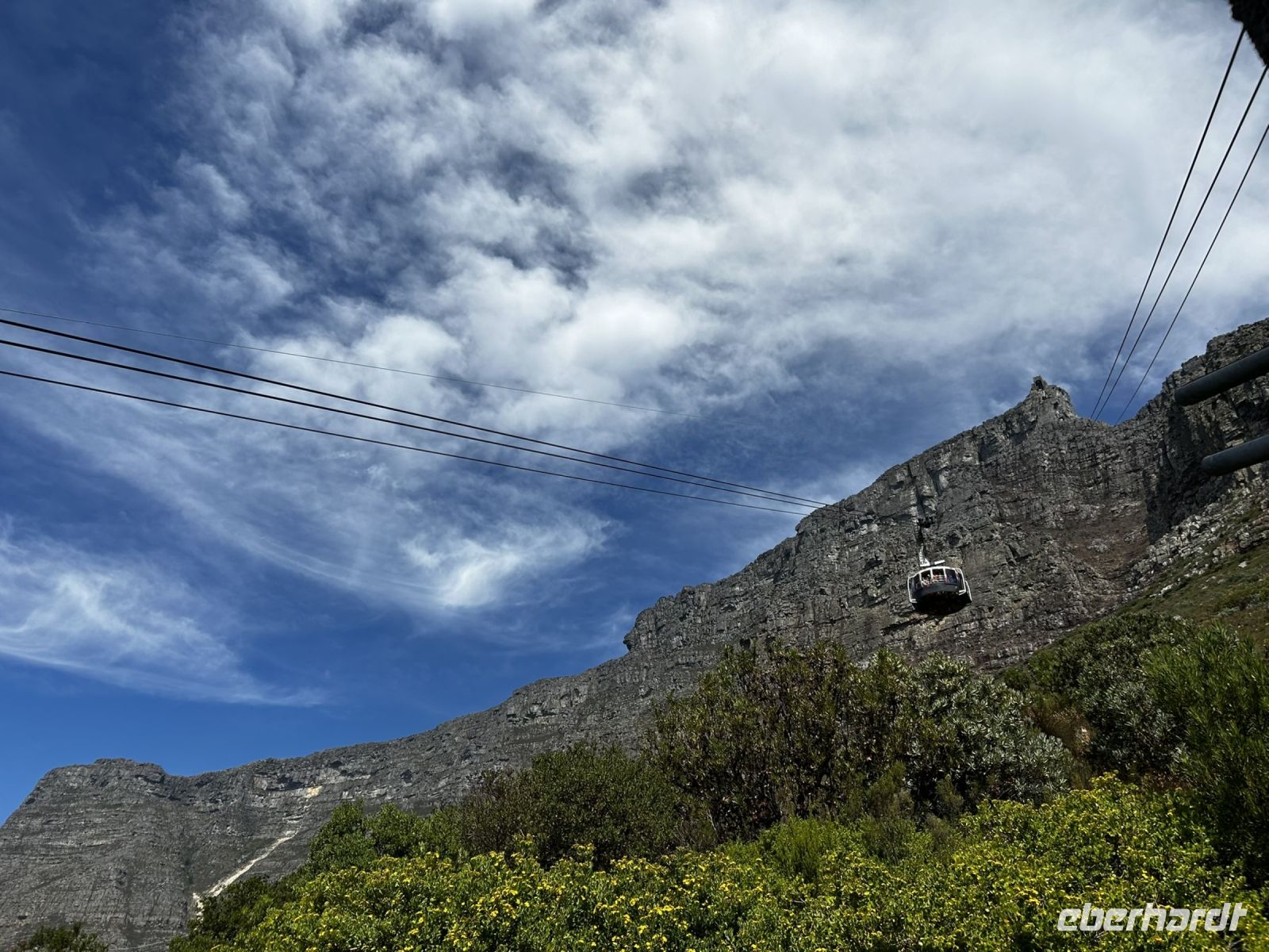 Ganz fasziniert schauen wir aus der Gondel, welche sich während der Fahrt um 360° dreht und genießen den somit den Panoramaausblick auf Kapstadt.