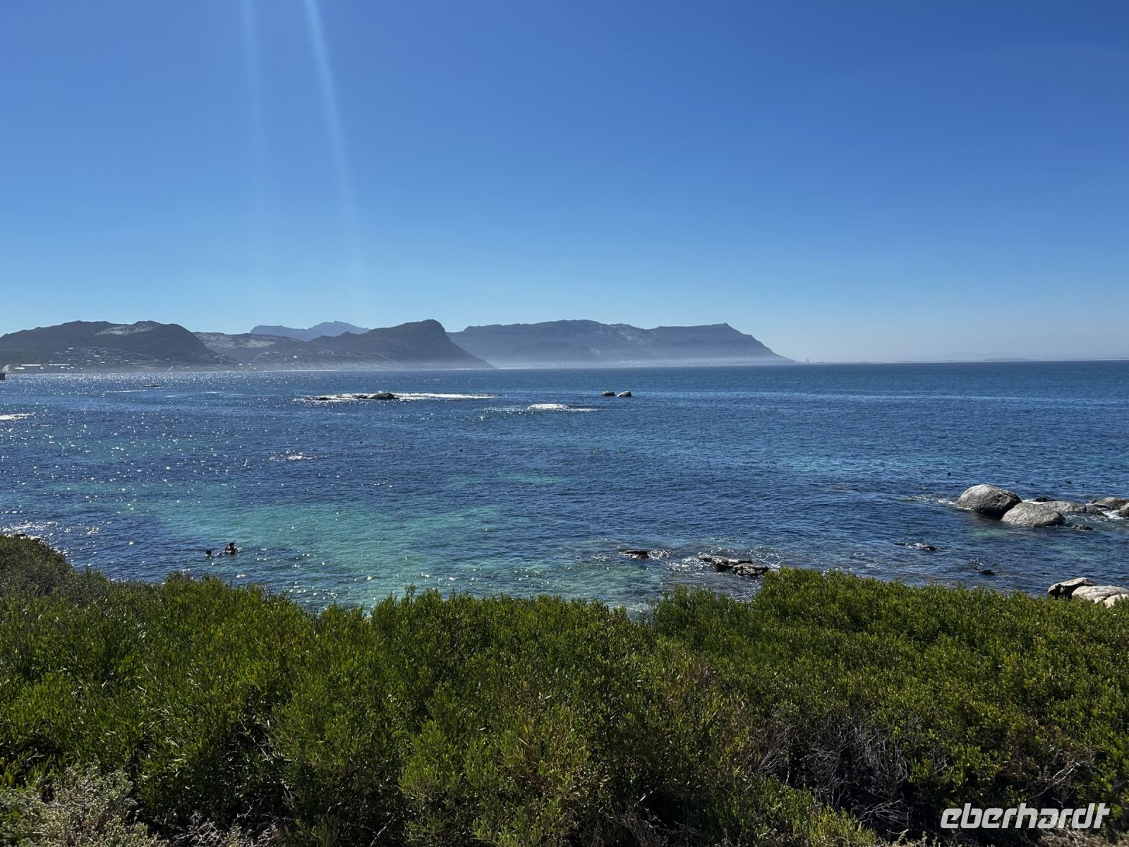 Unseren ersten Fotostopp machten wir Camps Bay, wo wir einen traumhaft schönen Blick auf die hiesige Bergkette hatten und in der kleinen Bucht am Fuße der Apostel konnten wir sogar Delfine beobachten.