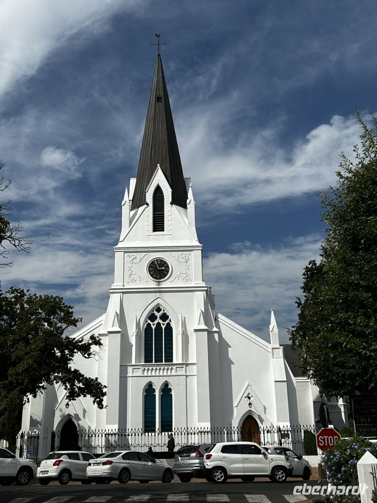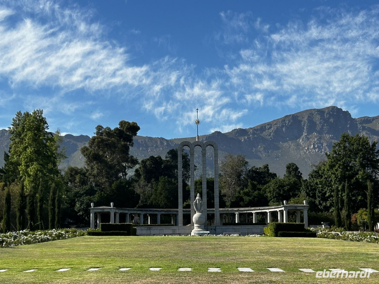 Wir schauten uns das in einer grünen Parkanlage gelegen Hugenotten Denkmal an und schlenderten anschließend gemütlich, jeder für sich die charmante mit ein Einkaufsläden gesäumte Mainroad entlang.
