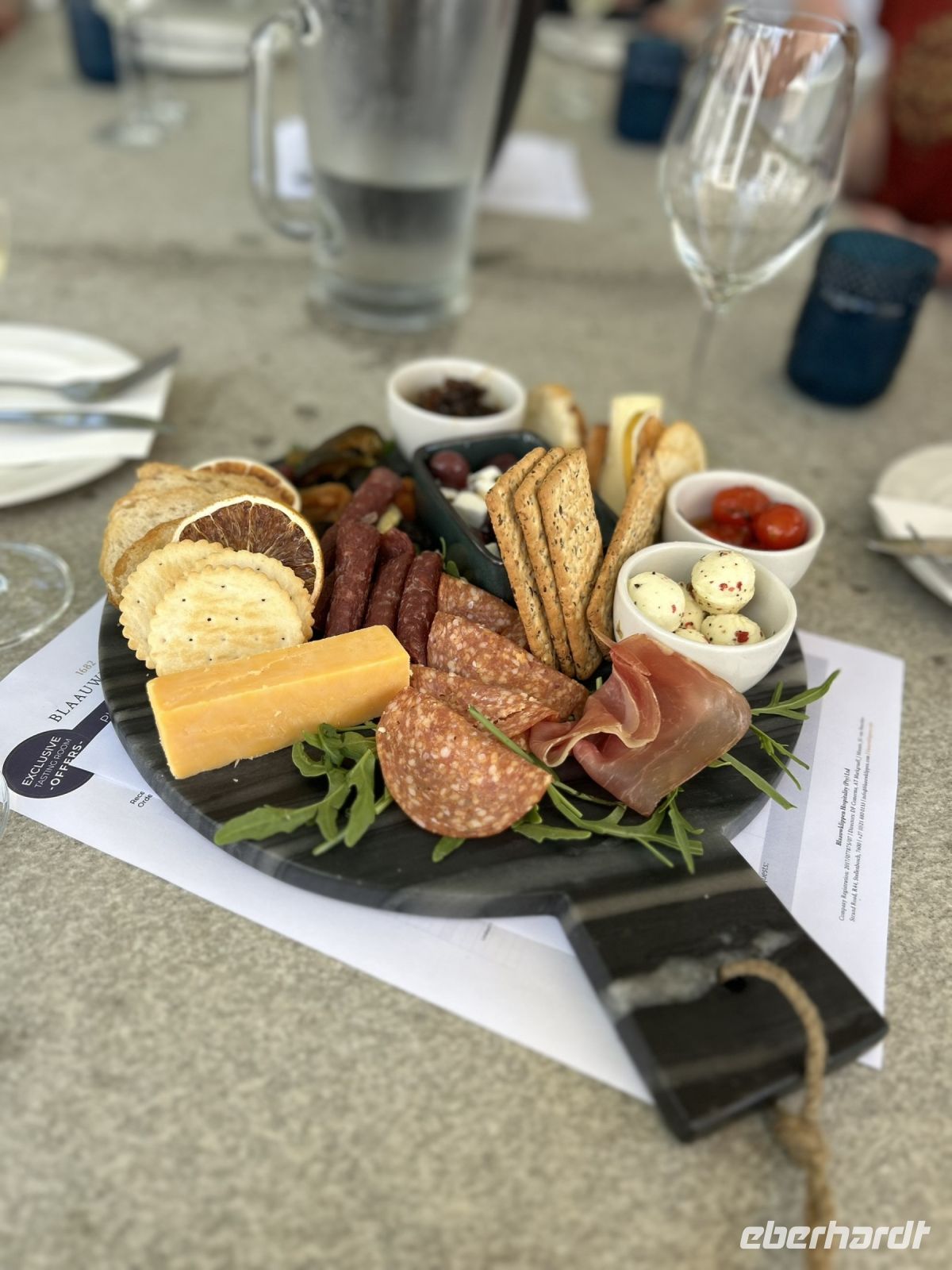 Im herrlichen Sonnenschein und einer leichten Brise genossen wir verschiedene, ausgewählte Weine dazu wurden kalte Platten mit Crackern sowie Käse- und Wurstspezialitäten gereicht.