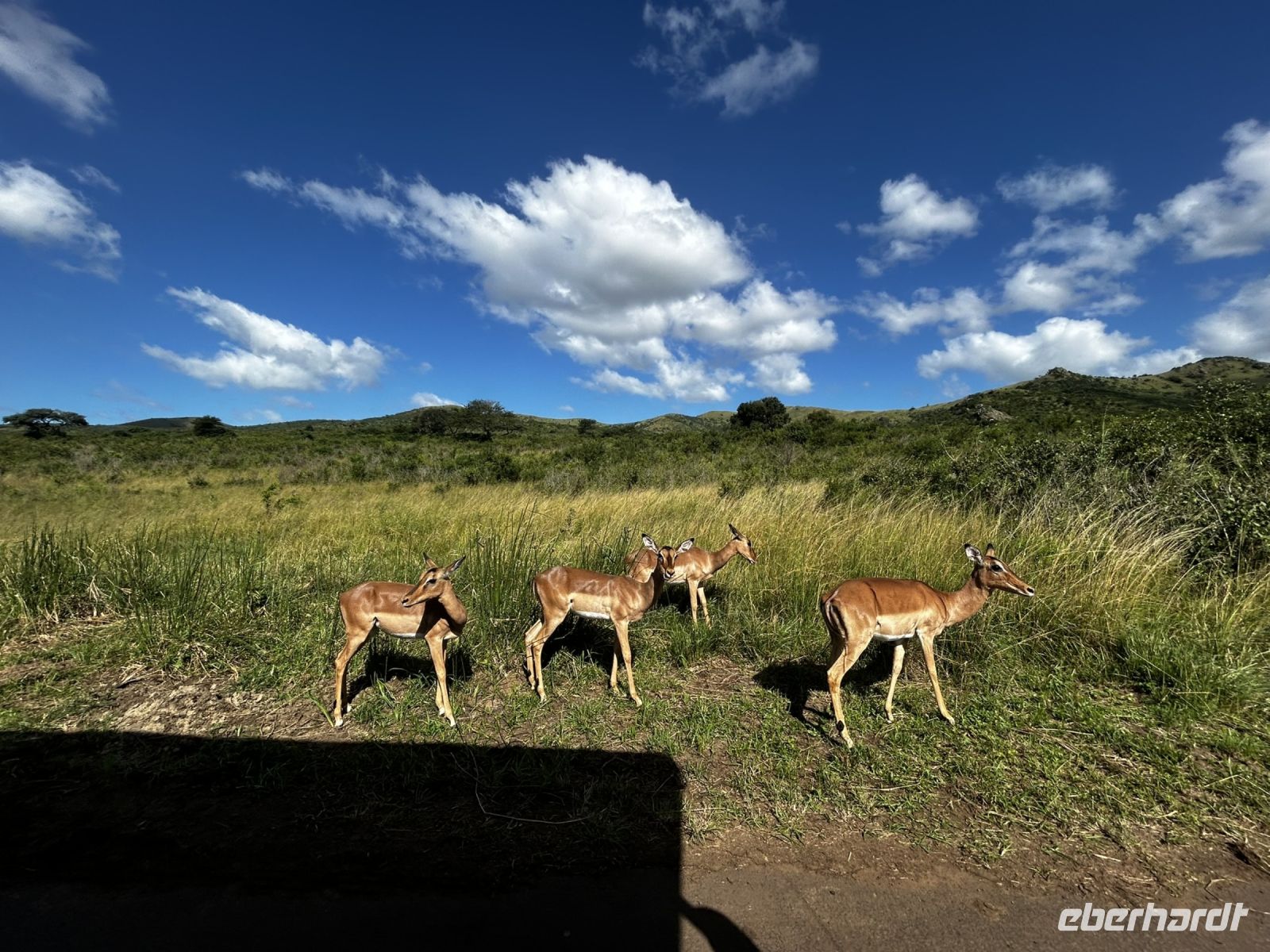 Zu den Impalas erzählte uns unser Ranger eine witzige Geschichte. Am Hinterteil der Impalas ist ein Zeichen, das aussieht wie ein schwarzes M. Dieses sieht aus wie das M von Mc Donalds. Daher nennt man sie auch „Fastfood“ für die Löwen.