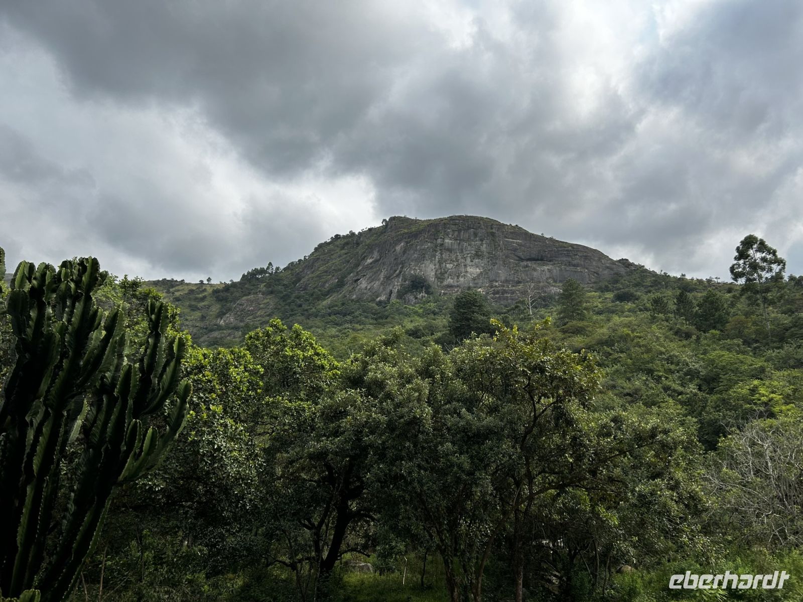 Links und rechts können wir vom Bus heraus gigantische Gebirgszüge und allerlei Flora und Fauna bestaunen auch wenn das Wetter sich etwas zugezogen hat.