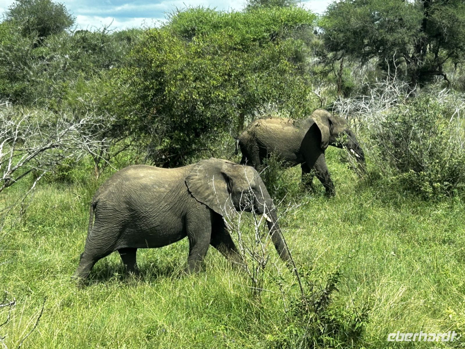 Neben einer Herde Elefanten tauchten am gleichen Ort auch noch 2 Giraffen auf.