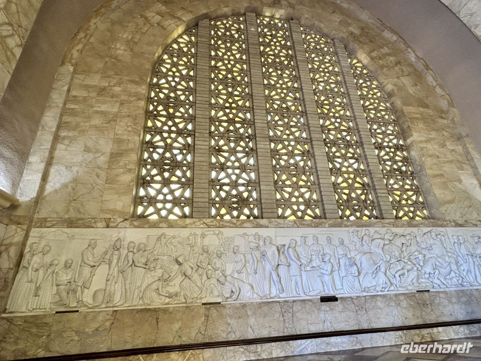 Das Monument besteht aus einer Heldenhalle, welche an den Wänden beeindruckende Reliefs zur Geschichte der Voortrekker aufweist. Durch eine kleine Öffnung in der Decke der Halle fällt genau am 16. Dezember, den Jahrestag der Schlacht, um 12:00 Uhr ein Sonnenstrahl ins Innere der Heldenhalle. Der Lichtstrahl trifft auf eine Art Grabstein mit der Inschrift „Ons vir jou, Suid Afrika“ (Wir für Dich, Südafrika). Eine sehr schöne Geste!