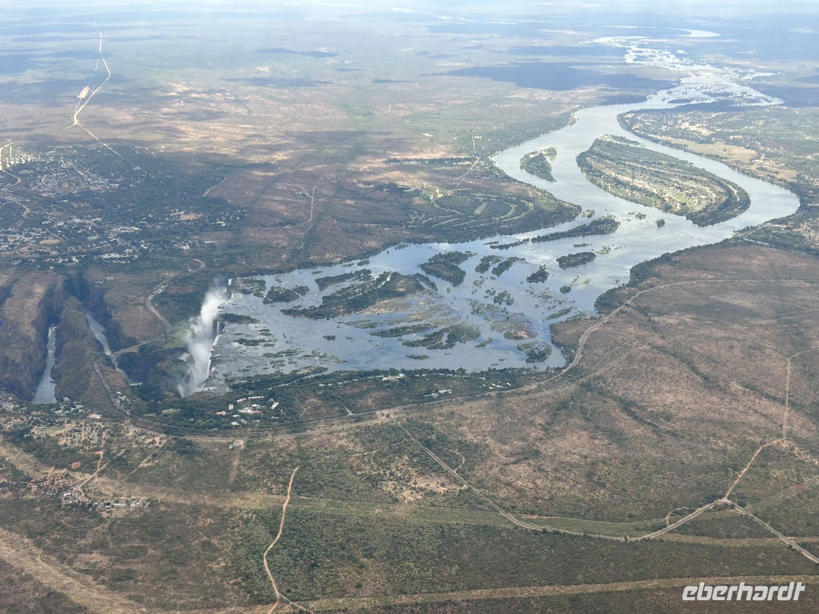 Mit ein paar Minuten Verspätung flogen wir zu unserem letzten Ziel der Reise, Victoria Falls.