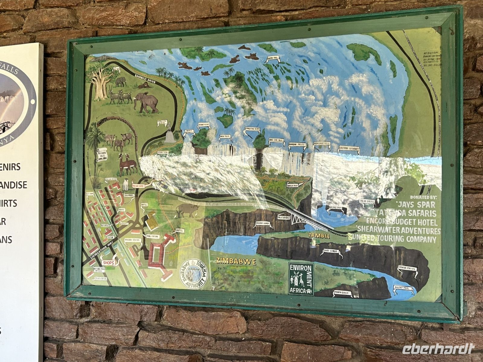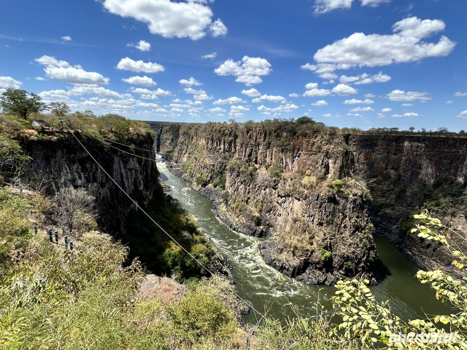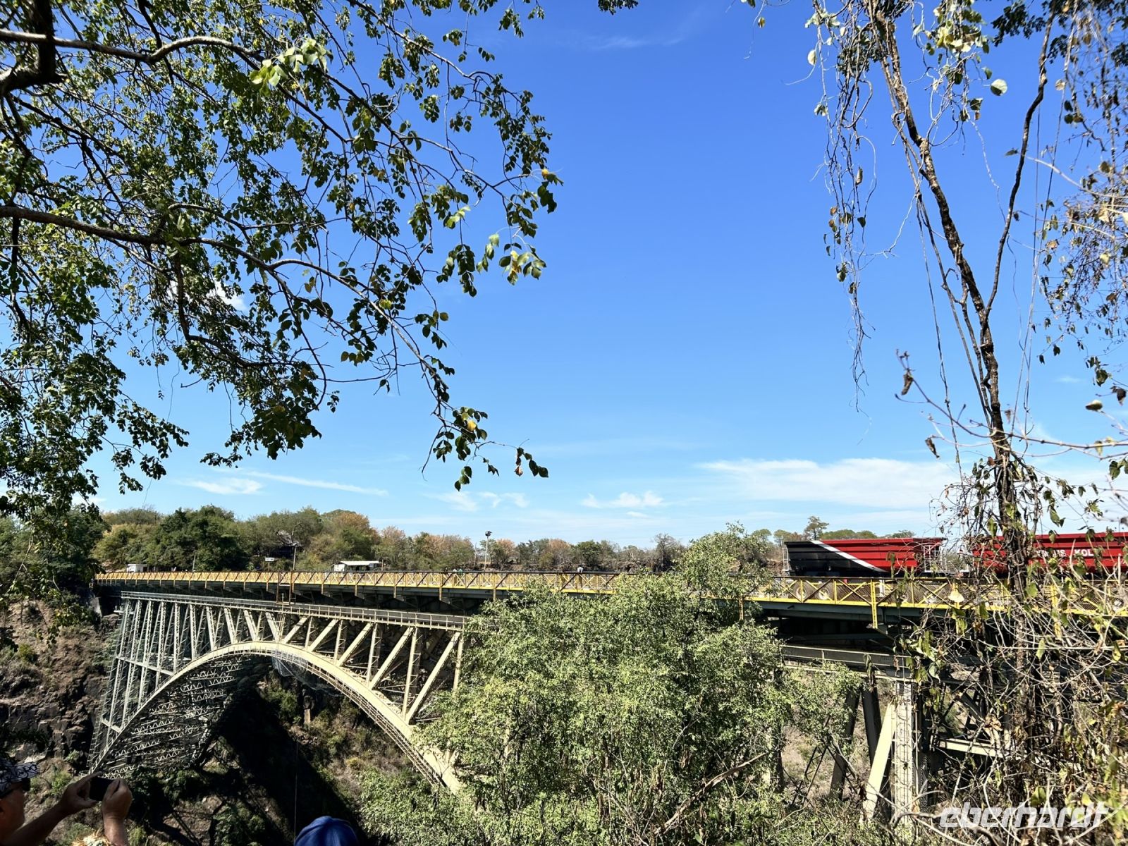 Wieder am Bus angekommen fuhr und Lovell zum Victoria Hotel und zum Lookout Café, wo wir einen fabelhaften Ausblick auf die Victoria Bridge und die imposante Batonka-Schlucht hatten.