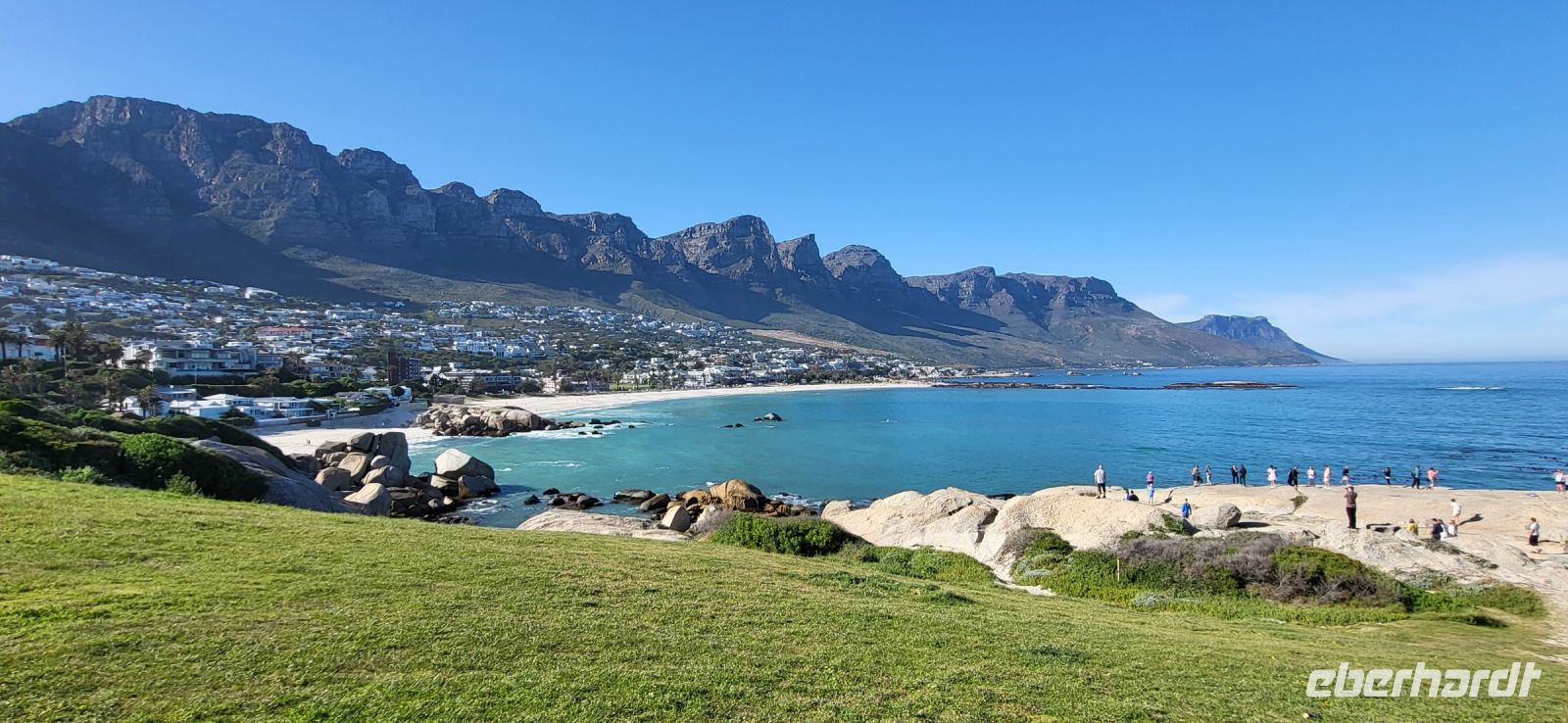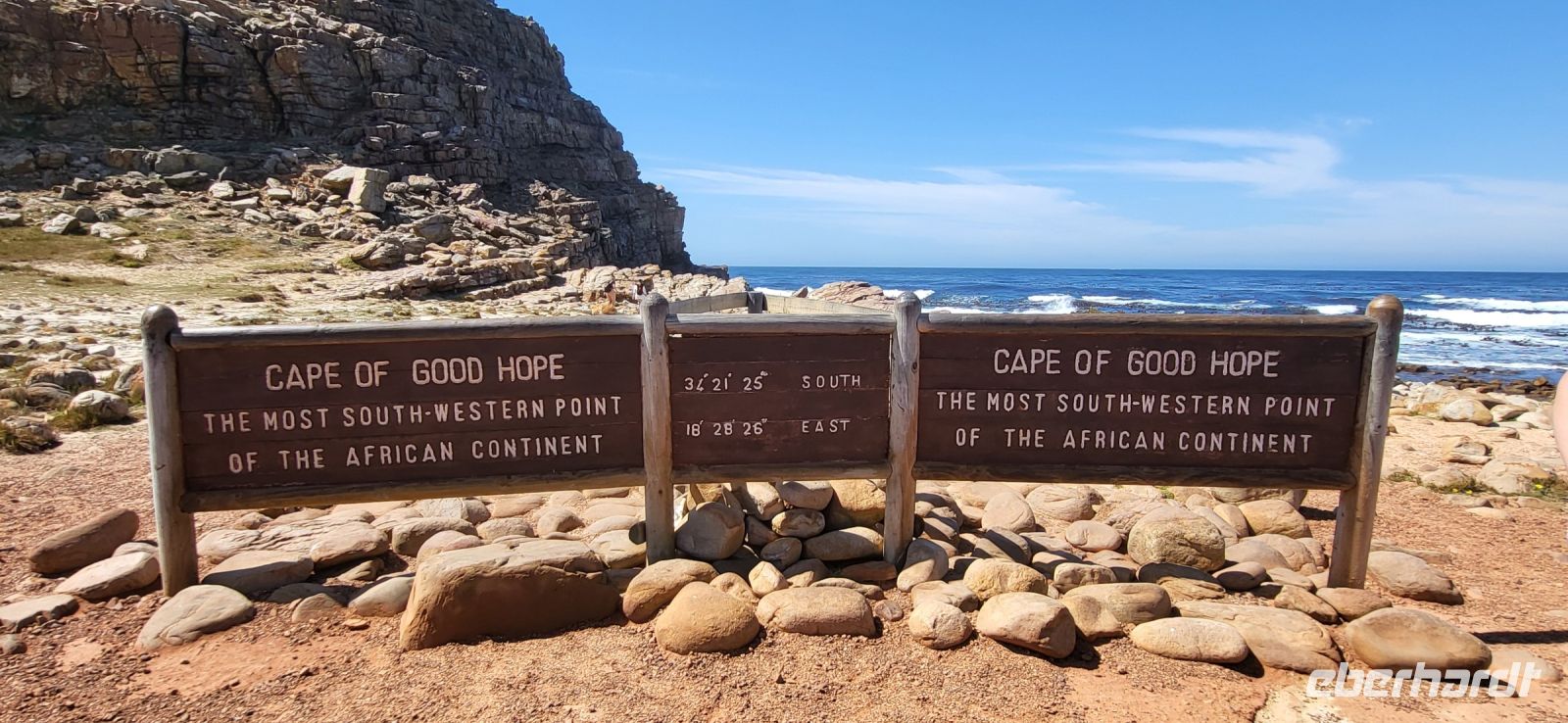 Nach einer erholsamen Nacht erwartet uns erst mal ein reichhaltiges Frühstücksbuffet des SunSquare Hotels. Der Blick nach draußen verrät, dass es wieder ein wunderbarer Tag werden wird. Entlang des Chapman Peak Drives fahren wir eine der schönsten Panoramarouten der Welt. und erleben in luftiger Höhe unglaubliche Ausblicke auf die vor uns liegende Küste mit den anliegenden Ortschaften wie das berühmte Camps Bay, wo wir oberhalb für einen Fotostopp anhalten. Am Kap angekommen fahren wir durch den sogenannten Table Mountain Nationalpark und steuern wir zunächst das beliebte Schild vom Südwestlichsten Zipfel Afrikas an. Dank Marions bestes Timing, sind wir als eine der ersten Gruppen vor Ort und stellen uns brav in die noch überschaubare Schlange. So erhält jeder ein tolles Foto als Andenken an diesen besonderen Ort. Weiter geht es von dort aus zum Cape Point Lighthouse mit seinem historischen Leuchtturm. Bevor wir nach oben starten, besorgen wir uns einen kleinen Mittagssnack, den wir möglichst nicht mit den sicher bereits irgendwo auf der Lauer liegenden Pavianen teilen möchten. Die Auffahrt per Zahnradbahn bringt uns anschließend in wenigen Minuten nach oben, wo wir bei schönem Wetter eine grandiose Aussicht auf die Umgebung haben. Es ist wieder ein absoluter Traumtag und schöner kann diese Kulisse nicht aussehen. So genießen wir diesen wunderbaren Moment und laufen anschließend entlang des Spazierweges wieder nach unten, wo Anthony mit dem Bus auf uns wartet. Unsere Weiterfahrt führt uns nach Simon’s Town zum Boulders Beach, an dem unzählige Pinguine ein zweites Zuhause gefunden haben. Diese erfreuen uns mit ihrer putzigen Art und den ein oder anderen eselartigen Lauten. Bevor es am Nachmittag zurück nach Kapstadt geht, fahren wir nach Hout Bay und es geht per Boot zur nahegelegenen Pelzrobbenkolonie. Bei ruhiger See genießen wir den kurzen Trip, umrunden die Pelzrobbeninsel und staunen nicht schlecht, als wie aus dem Nichts eine Nebelfront auftaucht. So schnell kann sich das Wetter hier an der Küste ändern. Genauso schnell wie der Spuk entstand, zog er auch wieder ab, sodass wir mit klarer Sicht wieder zurückfuhren. Am Abend geht es zum Gold Restaurant, wo wir ein herrliches Abendessen genießen, welches aus unglaublichen 13 Gängen mit Spezialitäten aus den verschiedensten afrikanischen Ländern besteht. Mit fröhlicher Musik, Gesang und Tanz und so mancher Gesichtsbemalung erleben wir einen herrlichen Ausklang dieses schönen Tages in der Kapregion.
