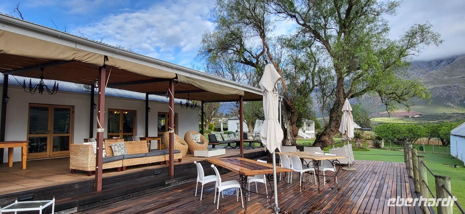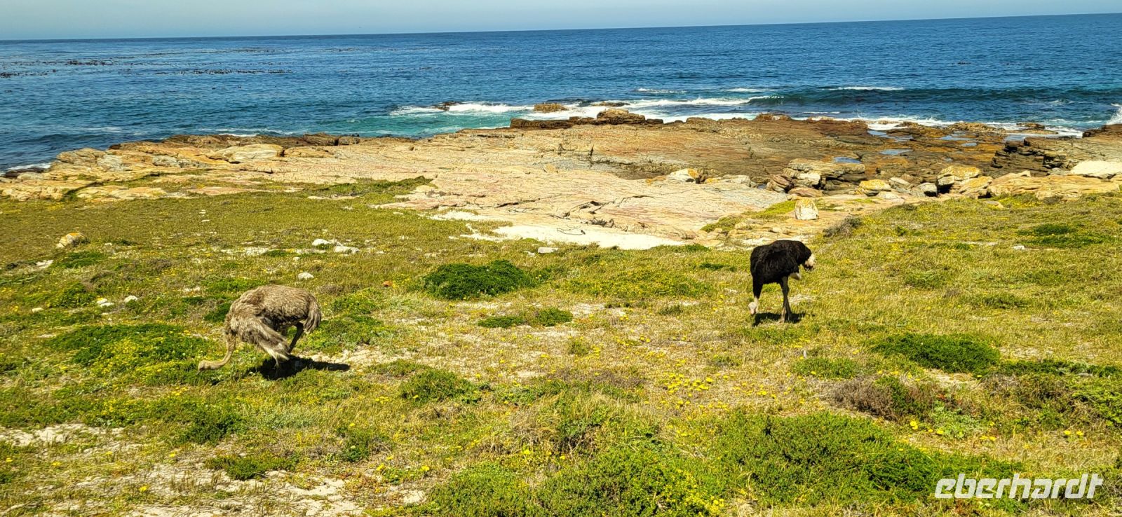 Im einstigen Kuhstall, der zu einem schönen Speiseraum umfunktioniert wurde, treffen wir uns zu einem herrlichen Frühstück. Hier in dieser schönen Anlage könnten wir noch gerne ein paar Tage bleiben und das Ambiente inmitten der Schwarzberge genießen. Jedoch lockt uns unser schönes Programm weiter und wir schauen uns zunächst die 20.000 Jahre alten Cango Caves, einer der größten Tropfsteinhöhlen der Welt an. Unzählige Stalagmiten und Stalaktiten, vereint auch Stalagnaten genannt, lassen uns staunen. Guide Lee Anne führt uns mit exzellentem Deutsch 600 m durch die Höhenwelt und erzählt uns mit viel Humor viel Wissenswertes über diese besondere Höhlenwelt. Sprachlos macht uns ihre Gesangskunst als sie für uns Ave-Maria anstimmt und die unglaubliche Akustik zu einem Gänsehautmoment beiträgt. Die Reise zieht uns weiter zur Highgate Straußenfarm. Vorab halten wir noch an einem der imposanten Federnpaläste und bestaunen die feudalen Anwesen der einstigen Federbarone, die mit Strauß und Co. zu großem Vermögen gekommen sind. Auf der Farm führt uns nun Guide Mats, der ebenso fantastisch Deutsch spricht und uns einen sehr interessanten Vortrag über Strauße, deren Haltung, Brutverhalten, etc. hält. Natürlich dürfen wir auch in direkten Kontakt mit den Tieren treten, wir füttern sie und so mancher hält eins der Jungtiere auf dem Arm, eine besondere Begegnung … Am Ende darf die bekannte Straußenmassage nicht fehlen. Man hält einen Eimer voll Mais vor sich und ist nun umringt von Straußhälsen, die nach dem Futter picken. Ein lustiger Moment-zumindest für alle Betrachter …. Am Nachmittag halten wir zu einem Strandbesuch in Wilderness, zu dem wir für unsere Gäste einen leckeren Wein vom Grande Province Weingut bereithalten und auf den so schönen ersten Teil unserer Südafrika Reise anstoßen. Wieder einmal sind wir beeindruckt, was Südafrika an Schönheiten alles zu bieten hat. Am Nachmittag in Knysna (Name aus der Khoikhoi Sprache= viel Holz) angekommen, checken wir in unserem „Graywood Hotel“ ein und wer mag, hat noch genügend Zeit die schöne Waterfront mit den kleinen Geschäften und Boutiquen anzusehen. Das Abendessen erfolgt heute im „Drydock“ und mit leckeren Mahlzeiten lassen wir einen weiteren, erlebnisreichen und unverhofft sonnigen Tag ausklingen.