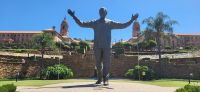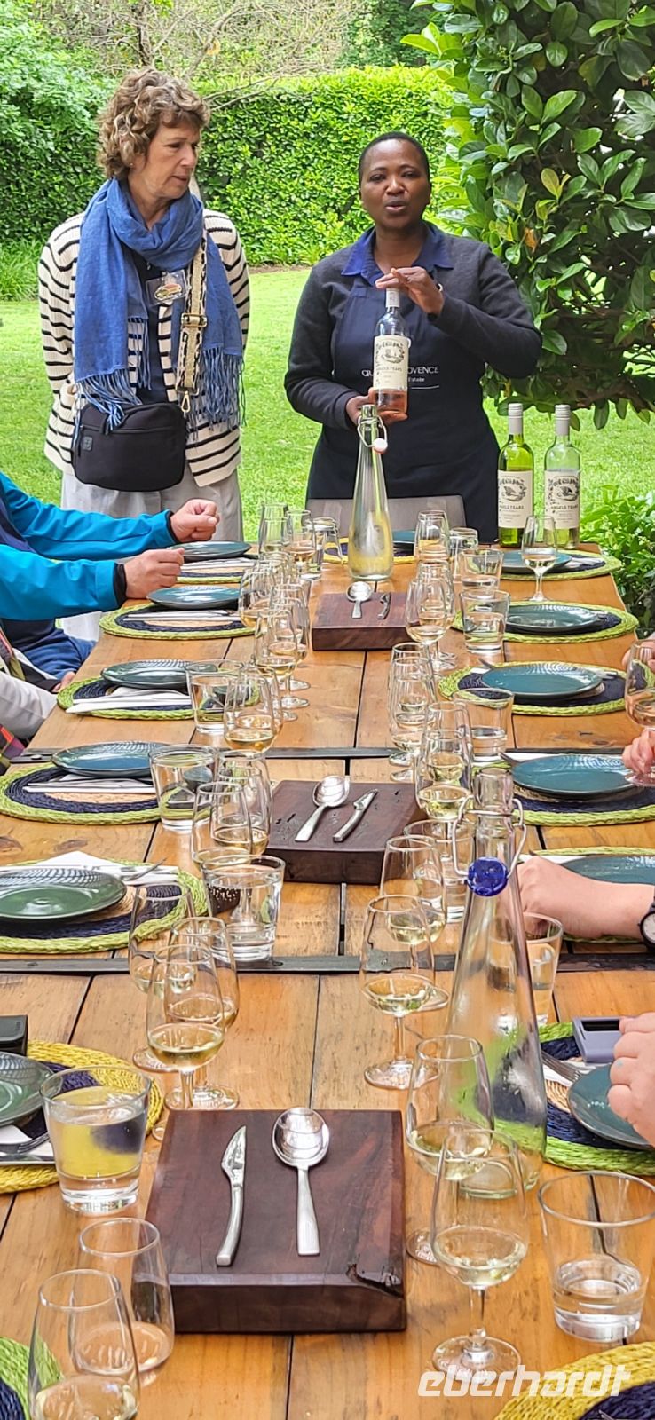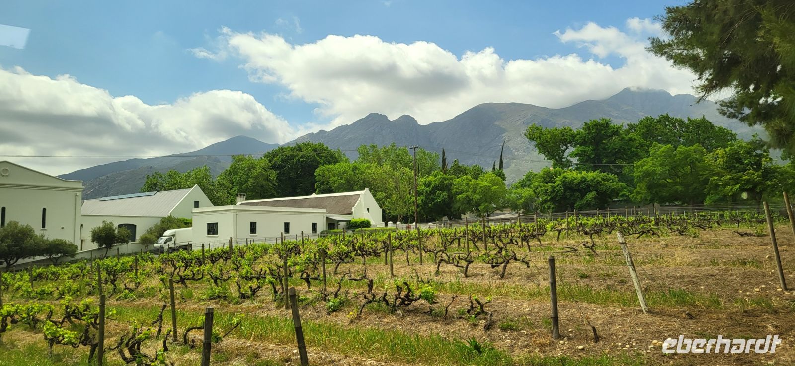 Heute Morgen begeben wir uns nach einem tollen Frühstück in das Western Cape und somit die Weinregion Südafrikas. Uns umgibt eine herrliche Kulisse, umrahmt von den Drakensteinbergen und den ersten Weinreben, erreichen wir die Universitätsstadt Stellenbosch. Nach Kapstadt, ist diese die 2. älteste Stadt Südafrikas, 1678 gegründet. Hier finden sich noch einige historische Bauten im kap-holländischen Stil, deren schönes Ambiente wir gerne auf uns wirken lassen. So spazieren wir unter anderem die Dorfstraße entlang, wo viele denkmalgeschützte Häuser zu sehen sind. In der Nähe befindet sich auch das Dorfmuseum, mit dem sogenannten „Schröderhaus“ aus dem Jahr 1709 und somit das älteste Haus der Stadt. Es ist herrlich sich hier in dieser schönen, sehr gepflegten Stadt aufzuhalten und die Freizeit zum Bummeln, fotografieren und erkunden zu nutzen. Im Anschluss werden wir bereits auf dem Weingut Grand Province zur Weinprobe und zum Mittagspicknick erwartet. In geselliger Runde finden wir auf der Terrasse Platz und werden von Mitarbeiterin Jessy durch die verschiedenen Weine begleitet. Probiert werden zwei Weißweine, ein Rosé sowie zwei Rotweine. Dazu gibt es einen herrlichen Picknickkorb, den sich zwei Personen teilen. Dieser ist so reichhaltig bestückt, dass wir uns einiges davon einpacken und mitnehmen dürfen. Auf dem Gelände des Weinguts gibt es noch viel zu bestaunen. So manches Kunstobjekt zieht uns magisch an und bietet ein tolles Fotomotiv. Auf dem weiteren Weg nach Franschhoek sichten wir den hiesigen Weinanbau, mit der Besonderheit, dass die Reben hier recht niedrig wachsen und beinahe in Kniehöhe geerntet werden. Der Name Franschhoek bedeutet so viel wie „Franzosenecke“. 1688 gründeten etwa 200 aus Frankreich ausgewanderte Hugenotten diese zunächst kleine Siedlung, deren Umgebung sie wohl an ihre Heimat in den französischen Voralpen erinnerte. Unter den französischen Einwanderern befanden sich auch einige Winzer, die schnell herausfanden, dass sich die ihre Siedlung umgebenden Berge hervorragend zum Weinbau eignen würden. Aus anfänglichen Versuchen entwickelte sich bis heute eines der wichtigsten Weinanbaugebiete Südafrikas. Entlang der Franschhoek-Weinroute erzeugen mehr als zwanzig Weingüter Spitzenweine. So genießen wir nochmals Freizeit in diesem beschaulich gepflegten Ort, in dem vermeintlich jede Ecke ein tolles Fotomotiv bietet. Viele Boutiquen, Cafés, Galerien und Restaurants laden zum Verweilen ein. Es vergeht ein schöner Nachmittag und wir kehren nach Kapstadt zurück. Der heutige Abend steht zur freien Verfügung und so manche von uns zieht es zu „Marco’s Africa“, wo wir nochmals einen unvergesslichen, afrikanischen Abend erleben. Mit stimmungsvollen Marimbaklängen von einer mehr als fleißigen Band hält es kaum einen Gast auf den Stühlen. Viele tanzen und singen mit, einfach Freude pur. Darf man einfach nicht verpassen…