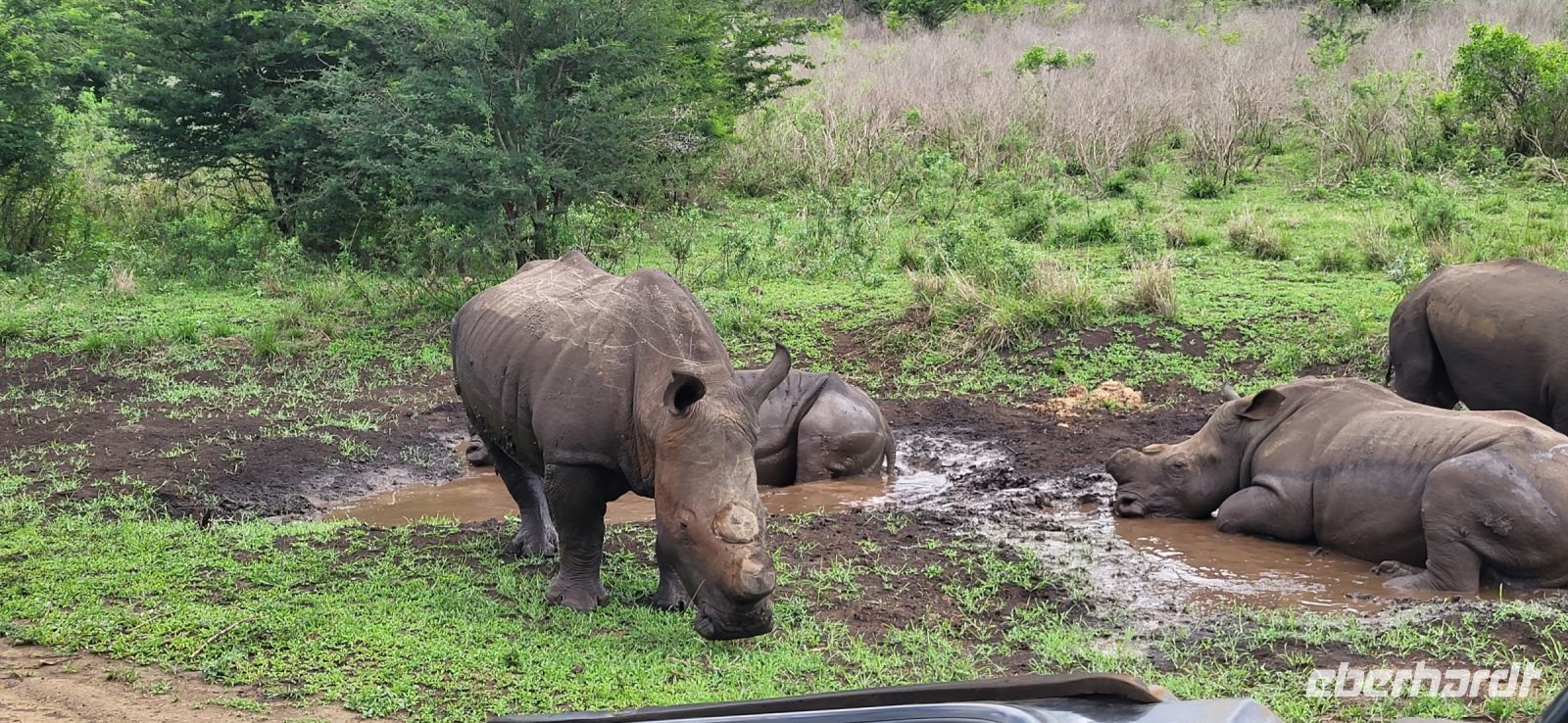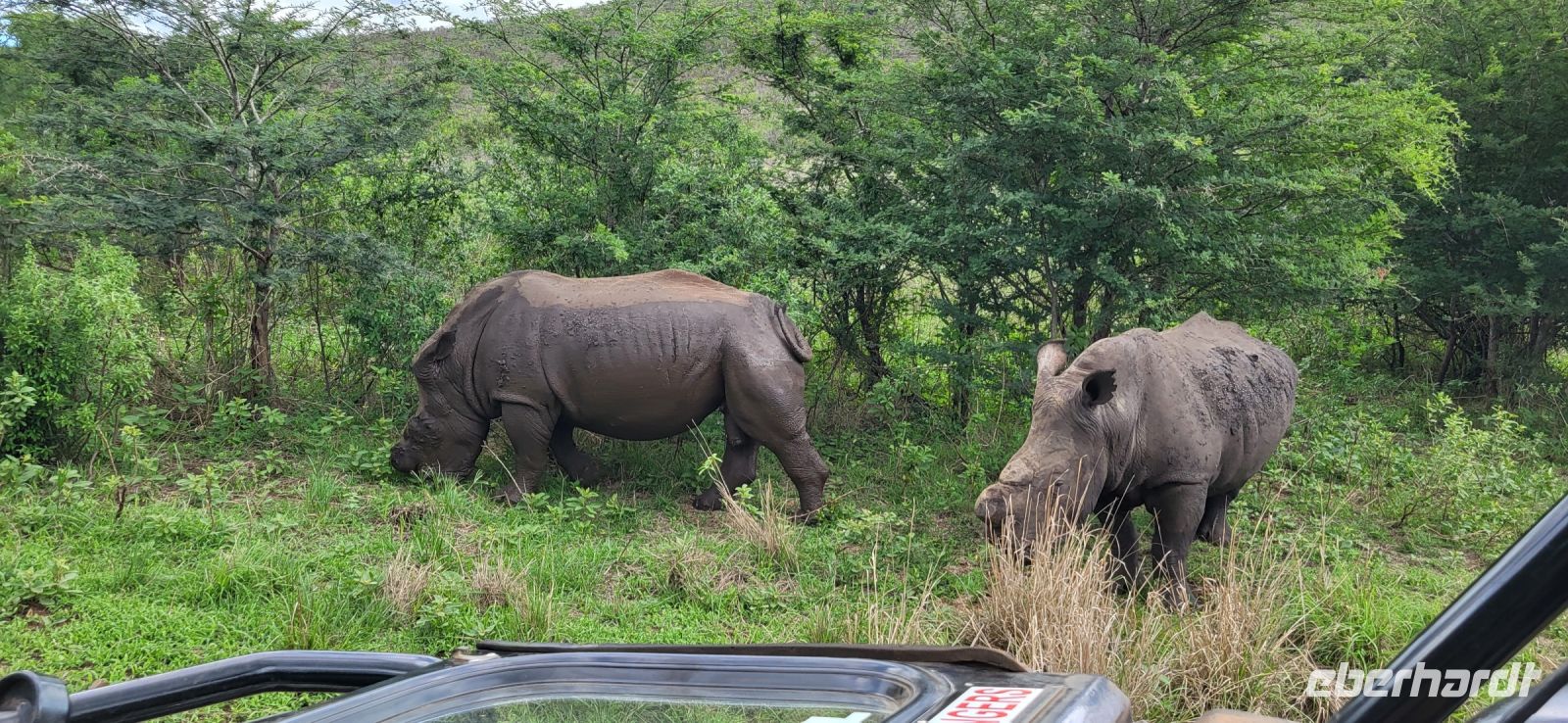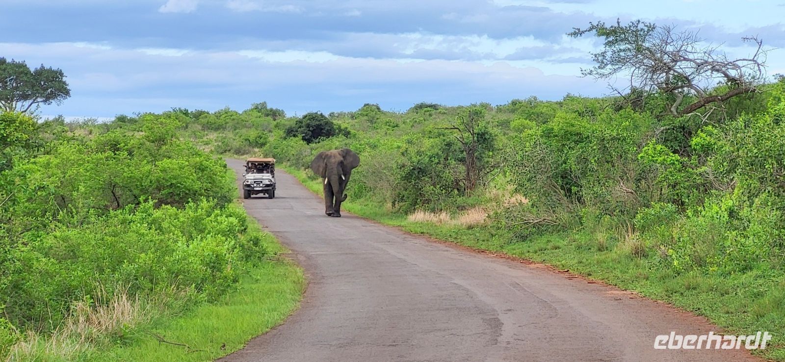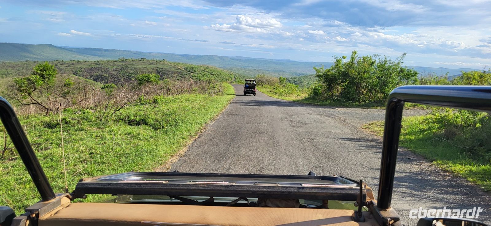 Der Wettergott zeigt sich wieder versöhnlich und so erwachen wir bei strahlendem Sonnenschein! Nach einem tollen Frühstück brechen wir auf zu einer 2-stündigen Bootsfahrt auf den Ausläufern des St. Lucia Sees. Den Bootssteg erreichen wir im Nu und erleben einen erlebnisreichen Vormittag mit zahlreichen Flusspferdsichtungen. Auch wenn die Hippos noch so possierlich aussehen, wird uns eindrucksvoll geschildert, wie gefährlich diese werden können. So begnügen wir uns gerne mit schönen Aufnahmen aus sicherer Distanz und genießen die schöne Bootstour, die gute Luft und angenehme Temperaturen. Des Weiteren dürfen wir auch kleinere Krokodile und zahlreiche Vogelarten bestaunen. Die schönen gelben Webervögel, mit ihren herrlichen Bauten, bilden im Schilf einen super schönen Farbfleck. So mancher Eisvogel sitzt im Dickicht und auch ein Schlangenhalsvogel ruht im Schilf. Für Mittags gut gestärkt, verlassen wir das schöne Touristenörtchen und machen uns auf nach Hluhluwe, zu unserem ersten Safaritag im Nationalpark. Dieser gilt mit 950 Km als der älteste und drittgrößte Nationalpark Südafrikas. Ein herrliches Stück Natur mit einer schier endlosen Hügellandschaft, zu dieser Jahreszeit unfassbar grün. So starten wir auf zwei Jeeps verteilt mit unseren lokalen Guides und erleben in den nun folgenden drei Stunden herrliche Tierbeobachtungen. Begegnungen mit unzähligen Breitmaulnashörnern lassen unsere Herzen höher schlagen. Diese sanften Riesen kommen uns teils sehr nah, da diese nicht sehr gut sehen und wir uns ganz still verhalten. Des Weiteren Elefantenherden in der Hügellandschaft oder ebenfalls am Wegesrand oder gar die Straße kreuzend. Afrikanische Büffel, Geier, grüne Meerkatzen, viele Nyalas-sehr hübsch anzusehende Antilopen, Impalas, Warzenschweine, etliche Vögel-zum Safari Ende hin haben wir uns gegenseitig viel zu berichten und bereits unvergessliche Momente hautnah mit Südafrikas Tierwelt erlebt.Als Abschlussabenteuer steuern wir unsere heutige Unterkunft, die Hluhluwe River Lodge an. Diese erreichen wir am Ziel angekommen, jedoch nicht mit unserem Bus, sondern werden zur Lodge geshuttlet oder laufen ca. 20 Minuten durch den afrikanischen Busch bis zum Eingang. Klingt abenteuerlich, hat uns allen jedoch sehr gutgetan. Angekommen werden wir mit einer herrlichen Lodge inmitten der Natur Südafrikas belohnt und bei einem tollen 3-Gänge-Menü endet ein erlebnis-und tierreicher Tag.