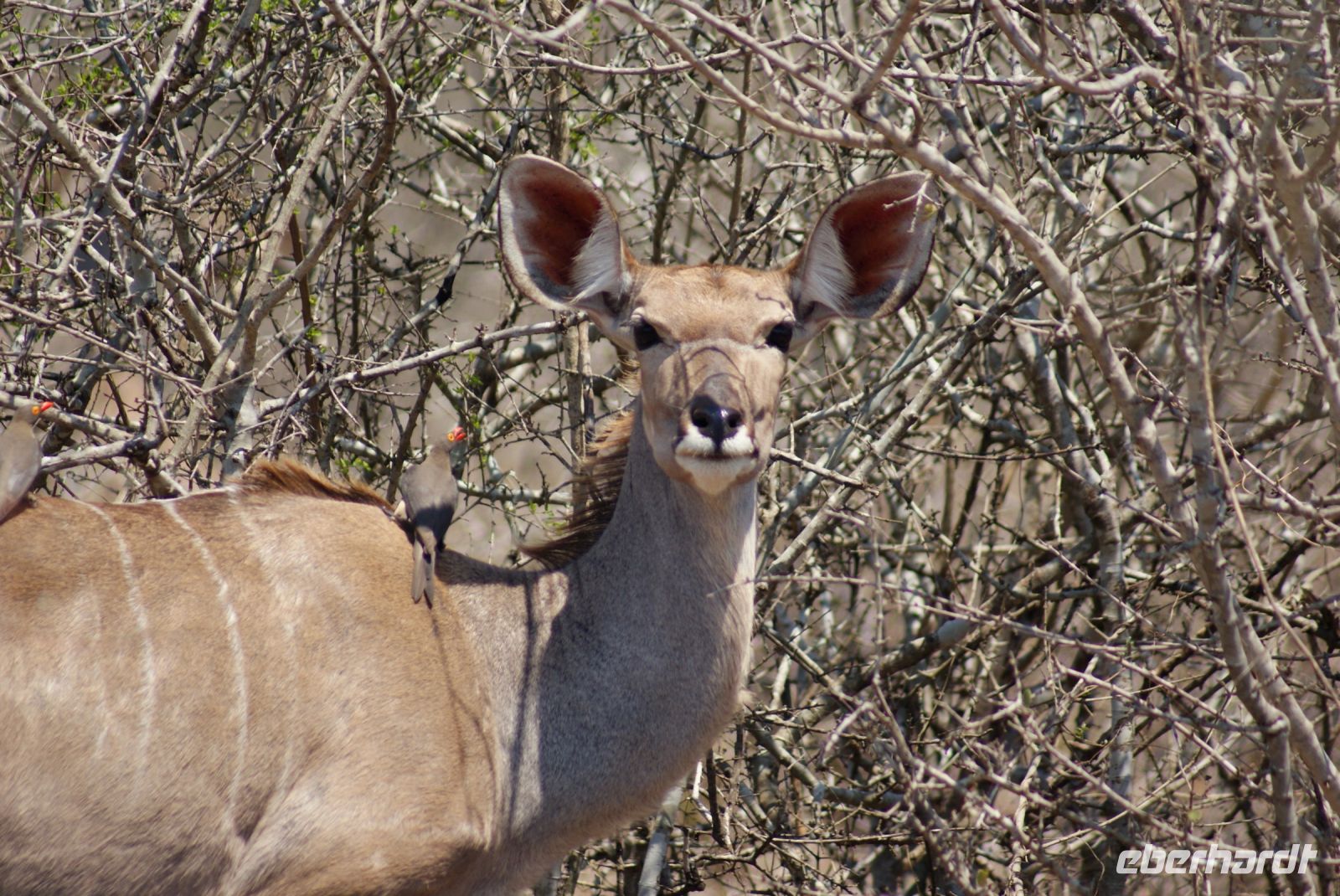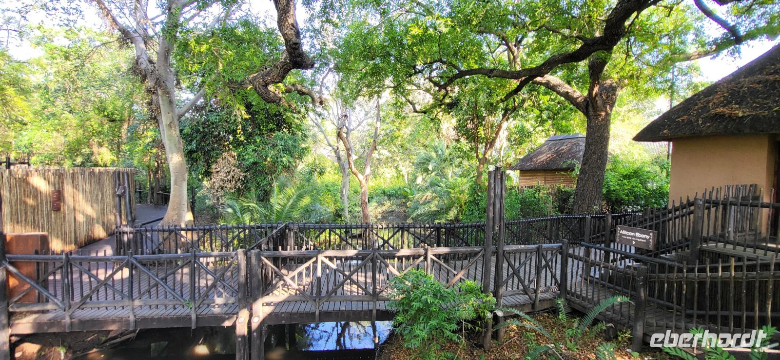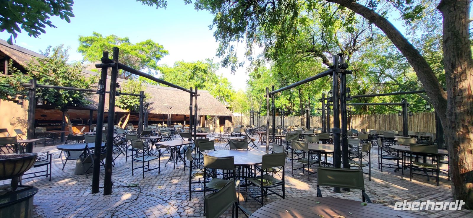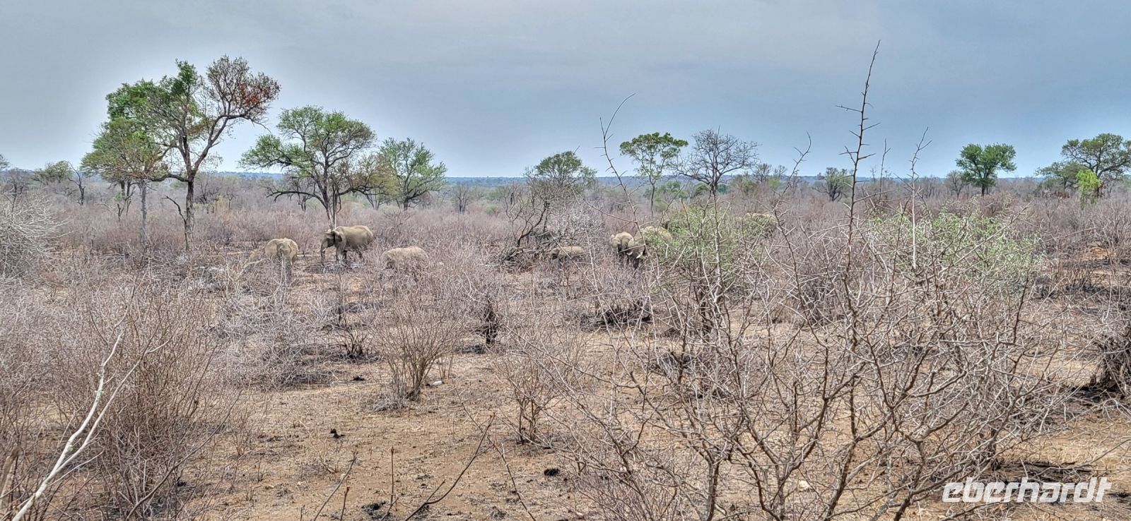 Nach einer geruhsamen Nacht treffen wir uns, mit Frühstückspaketen versorgt zu unserer Ganztagssafari im Krüger Nationalpark. Verteilt auf zwei Jeeps und mit unseren gestrigen Guides Smart und Lincoln geht es los. Wir sind positiv überrascht, was wir trotz der stets steigenden Temperaturen des heutigen Tages noch alles zu sehen bekommen. Das Wetter lässt es zu, dass wir bis zum frühen Nachmittag unterwegs sind, dann freuen wir uns auf unsere Lodge, denn mittlerweile zeigt das Thermometer an die 40° Grad. Gesehen haben wir heute noch folgendes: etliche Elefanten, Weissrückengeier, Frankoline, ein Kampfadler, Nimmersattstörche, Zwergmangusten, Rotschnabeltokos und Kudukühe-und Böcke. Viele Impalas, einen Wasserbock, drei Löwen, drei Leoparden aus der Ferne. Viele Giraffen mit Madenhackern zu Besuch, Pumbas (Warzenschweine), etc. Trotz der ungewöhnlichen Hitze für die Jahreszeit möchten wir den heutigen Tag nicht missen, der doch noch viele schöne Erlebnisse gebracht hat. Zurück in der Lodge zieht bald erneut ein Gewitter auf und es gibt reichlich Regen, den die Natur hier mehr als nötig hat. Abends erfolgt ein letztes sehr schmackhaftes Buffet im Restaurant und eine letzte idyllische Nacht in dieser tollen Anlage.