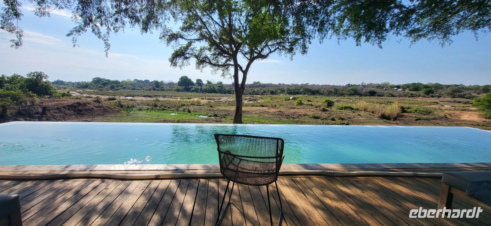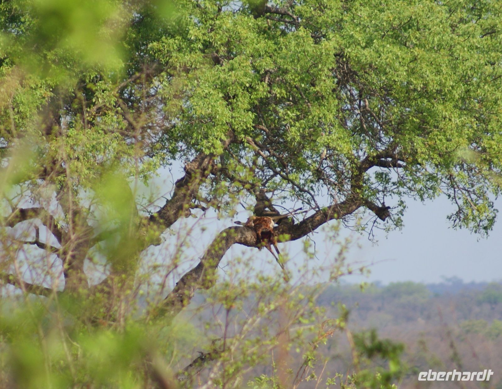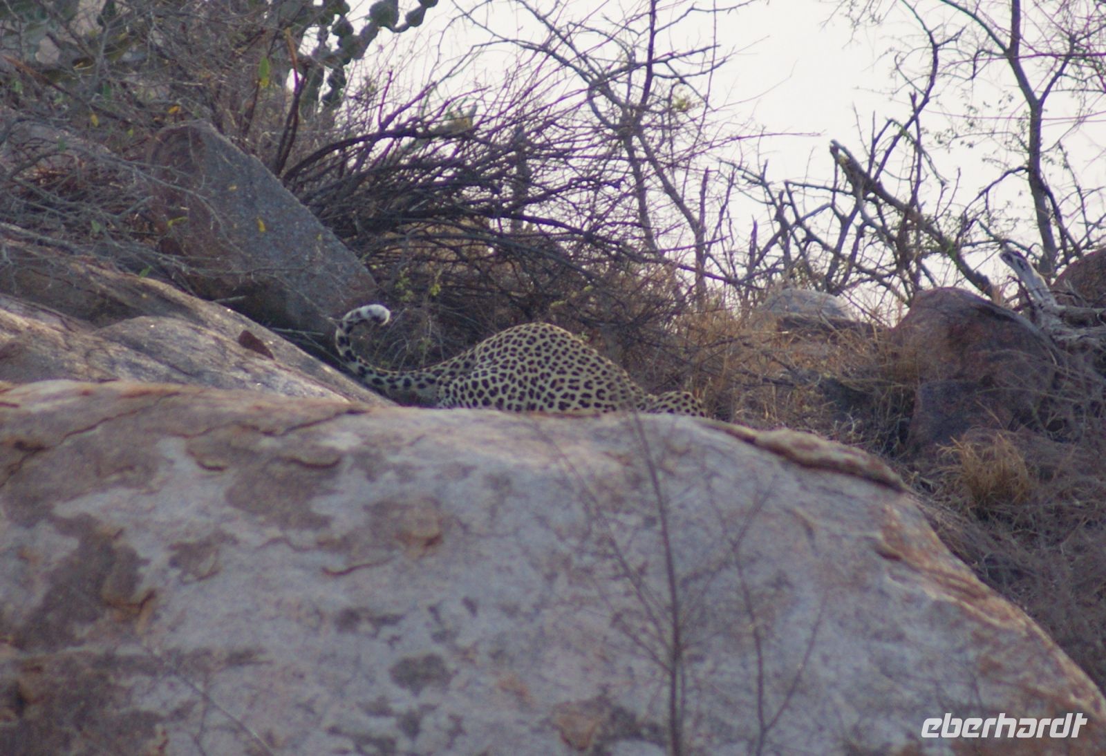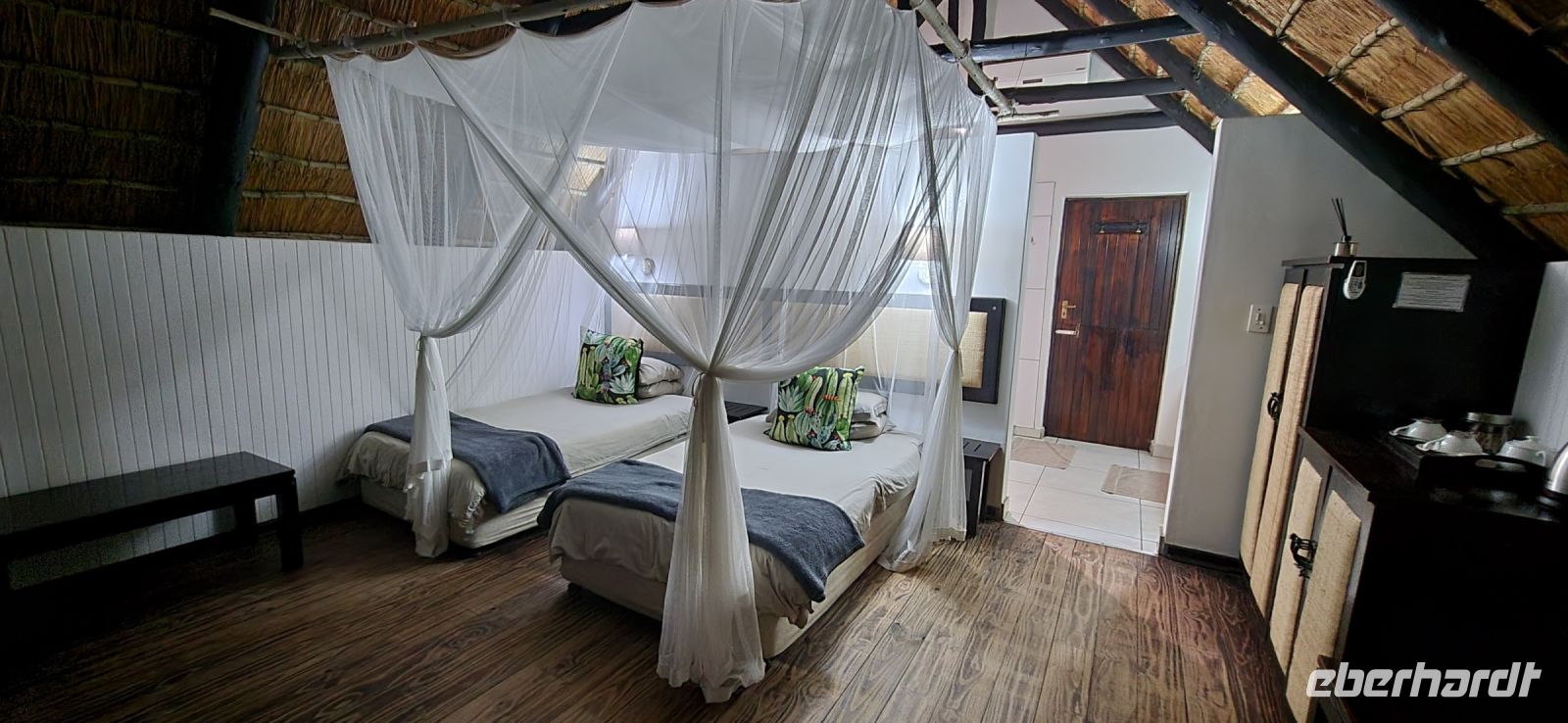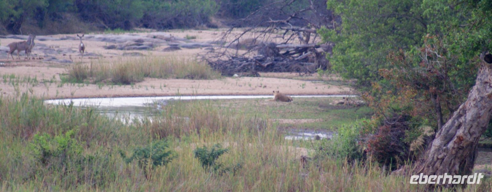 Nach einer geruhsamen Nacht treffen wir uns, mit Frühstückspaketen versorgt zu unserer Ganztagssafari im Krüger Nationalpark. Verteilt auf zwei Jeeps und mit unseren gestrigen Guides Smart und Lincoln geht es los. Wir sind positiv überrascht, was wir trotz der stets steigenden Temperaturen des heutigen Tages noch alles zu sehen bekommen. Das Wetter lässt es zu, dass wir bis zum frühen Nachmittag unterwegs sind, dann freuen wir uns auf unsere Lodge, denn mittlerweile zeigt das Thermometer an die 40° Grad. Gesehen haben wir heute noch folgendes: etliche Elefanten, Weissrückengeier, Frankoline, ein Kampfadler, Nimmersattstörche, Zwergmangusten, Rotschnabeltokos und Kudukühe-und Böcke. Viele Impalas, einen Wasserbock, drei Löwen, drei Leoparden aus der Ferne. Viele Giraffen mit Madenhackern zu Besuch, Pumbas (Warzenschweine), etc. Trotz der ungewöhnlichen Hitze für die Jahreszeit möchten wir den heutigen Tag nicht missen, der doch noch viele schöne Erlebnisse gebracht hat. Zurück in der Lodge zieht bald erneut ein Gewitter auf und es gibt reichlich Regen, den die Natur hier mehr als nötig hat. Abends erfolgt ein letztes sehr schmackhaftes Buffet im Restaurant und eine letzte idyllische Nacht in dieser tollen Anlage.