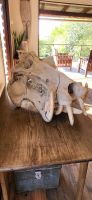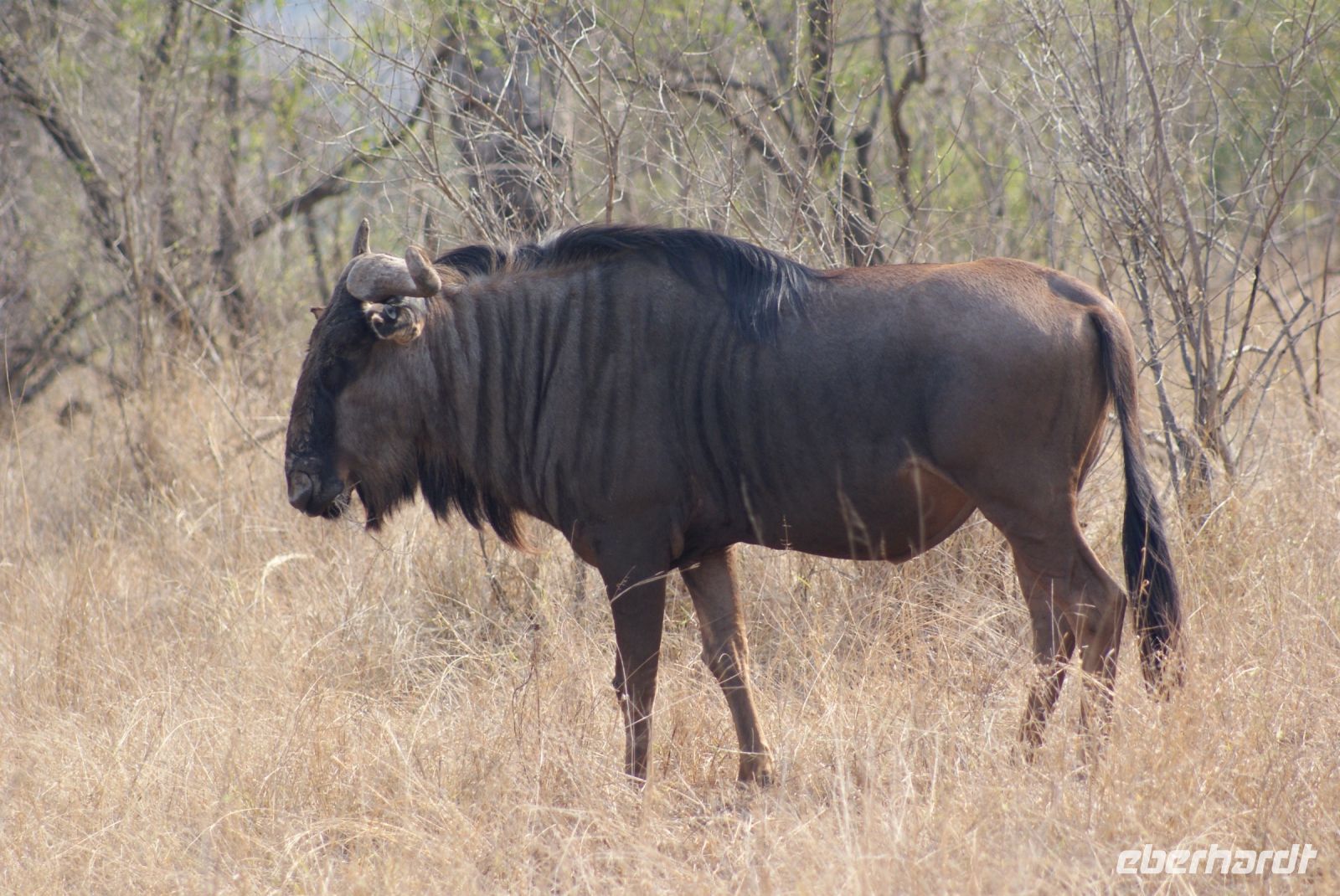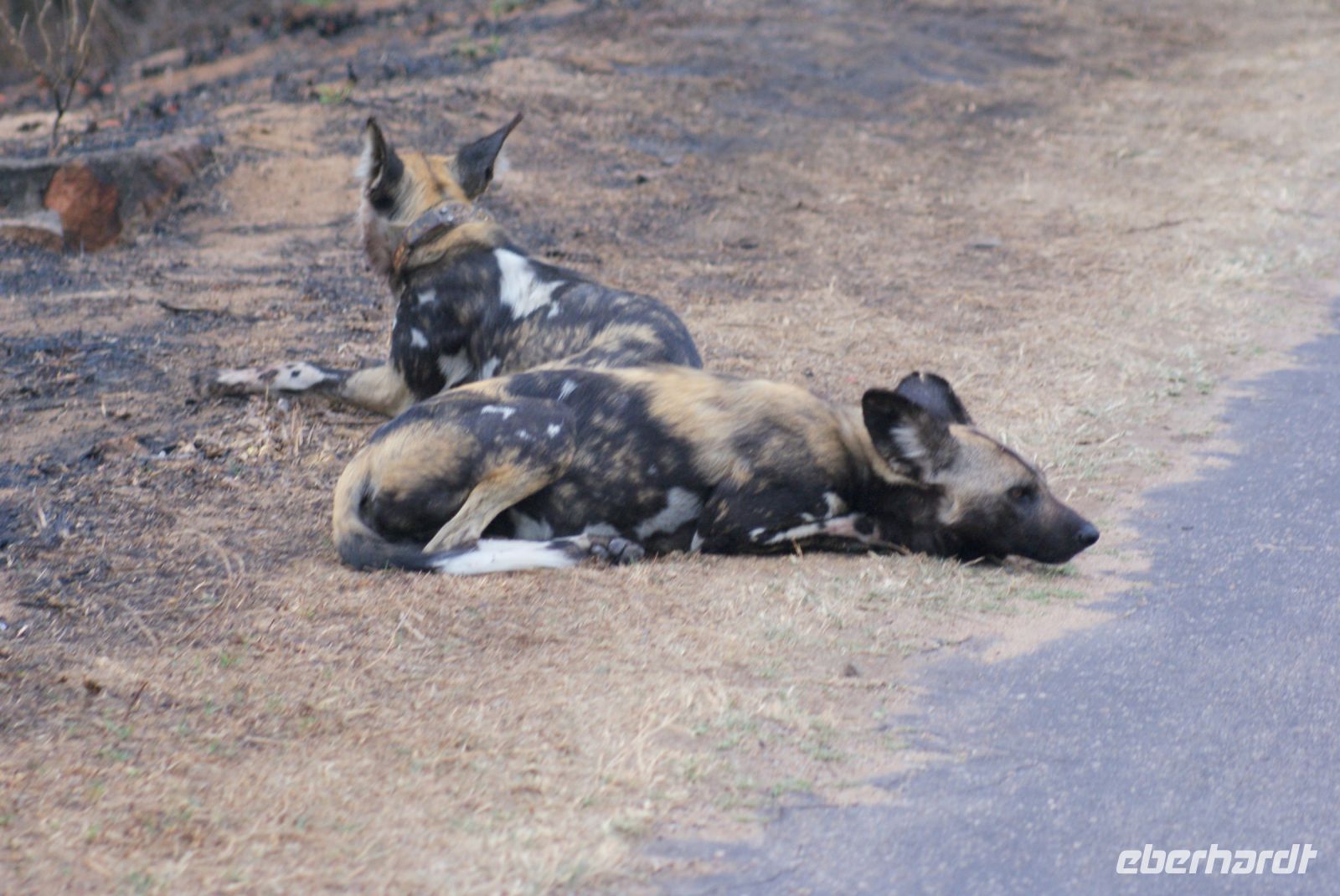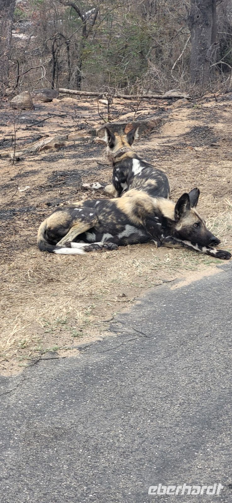 Heute Morgen scheint doch abschließend bei uns in den Bergen auf 1700 m Höhe endlich die Sonne, als wir uns zum Frühstück aufmachen. Nochmals werden wir sehr vom Team der Misty Mountain Lodge verwöhnt, bevor wir uns auf den Weg ins Tiefland machen. In Hazyview halten wir nochmals für Erledigungen und treffen dann pünktlich um 13.00 Uhr auf unsere Driverguides Smart und Lincoln, die mit uns eine halbtägige Tour im offenen Jeep durch den Krüger Nationalpark unternehmen werden. Dieser misst von Nord nach Süd 350 Km und von West nach Ost 60 Km. Der Park, der einst Sabie Wildreservat hieß, wurde von Paul Kruger, einst Präsident des Landes von 1899 bis 1902, gegründet. Schon zu Beginn unserer Tour treffen wir auf die ersten Elefanten, die zunächst aus der Ferne, im Laufe des Nachmittags jedoch sehr nah zu sehen sind. Viele Impala Antilopen, auch scherzhaft „African Mc Donalds“ aufgrund ihrer Zeichnung am Hinterteil genannt, sowie Steppenzebras und Büffel kreuzen unseren Weg. In den Lüften entdecken wir einen stattlichen Raubadler und den wunderschön bunten Lilac-auf Deutsch Gabelracke genannt. Etliche Kudus und Giraffen zeigen sich und amüsiert hören wir folgende Geschichte, als wir auf eine Gruppe Gnus treffen. Guide Smart erklärt, dass ein Gnu aus Ersatzteilen geschaffen wurde: den Kopf eines Grashüpfers, die Hörner vom Gnu, den Schwanz vom Pferd und den Hintern einer Hyäne. Fertig ist das Tier, welches zu den „hässlichen Fünf“ gehört. Im Laufe des Nachmittags sehen wir noch fünf Nashörner, die hier nur noch selten zu sehen sind. Tüpfelhyänen spazieren auf oder an der Straße entlang, sodass wir auch noch diese bestaunen können. So verfliegen die Stunden am Nachmittag und wir können uns glücklich schätzen, bereits so viel gesehen zu haben. Kurz vor Ende treffen wir als großes Highlight noch auf ein Rudel Wildhunde, die ebenfalls äußerst selten sind und es im gesamten Krüger Nationalpark nur 120 Exemplare gibt. Zurück in unserer neuen Lodge heißt es nun Zimmerbezug, was bei dieser riesigen Anlage nicht allzu einfach ist. Nichtsdestotrotz ist es sicherlich ein wunderschönes Areal, welches wir morgen nach unserer Ganztagssafari erst mal erkunden müssen. Am riesigen Buffet greifen wir am Abend ordentlich zu, während Blitz, Donner und Platzregen für ziemlich viel Wirbel um uns herum sorgen. Da es morgen in aller Herrgottsfrühe zur zweiten Safari im Krüger, wie er von den Einheimischen genannt wird, aufgeht, ziehen wir uns alle zeitig auf unsere schönen Zimmer zurück.