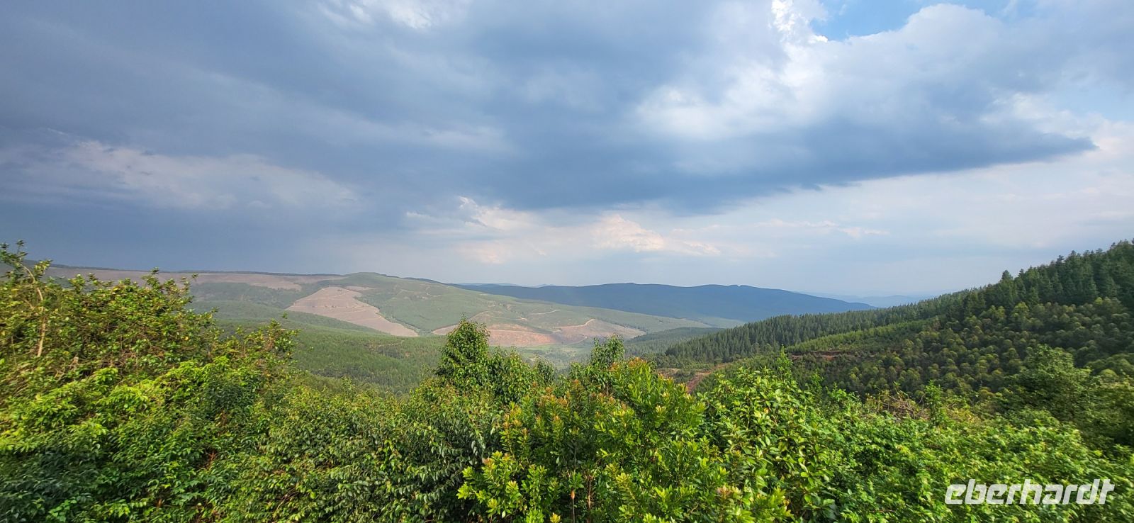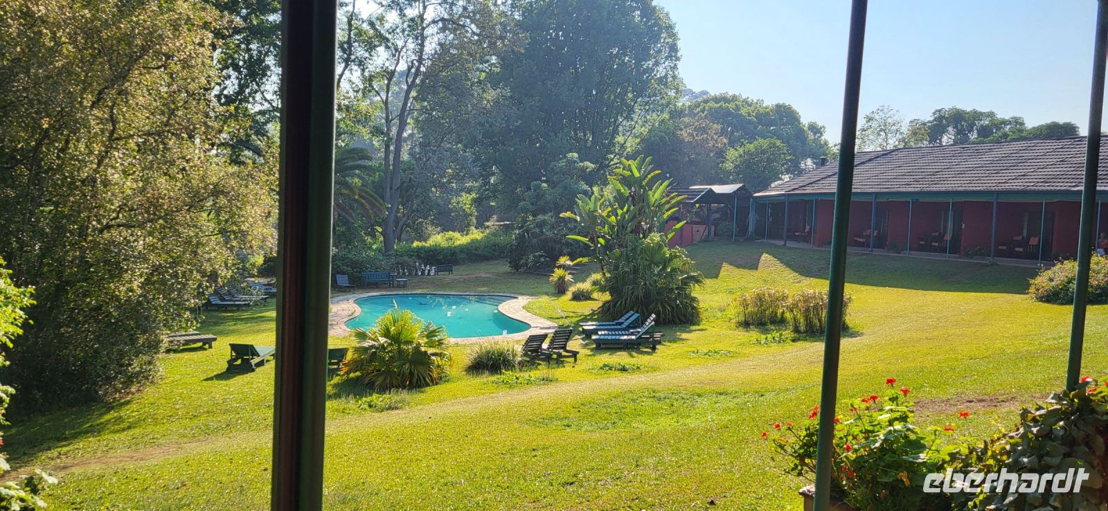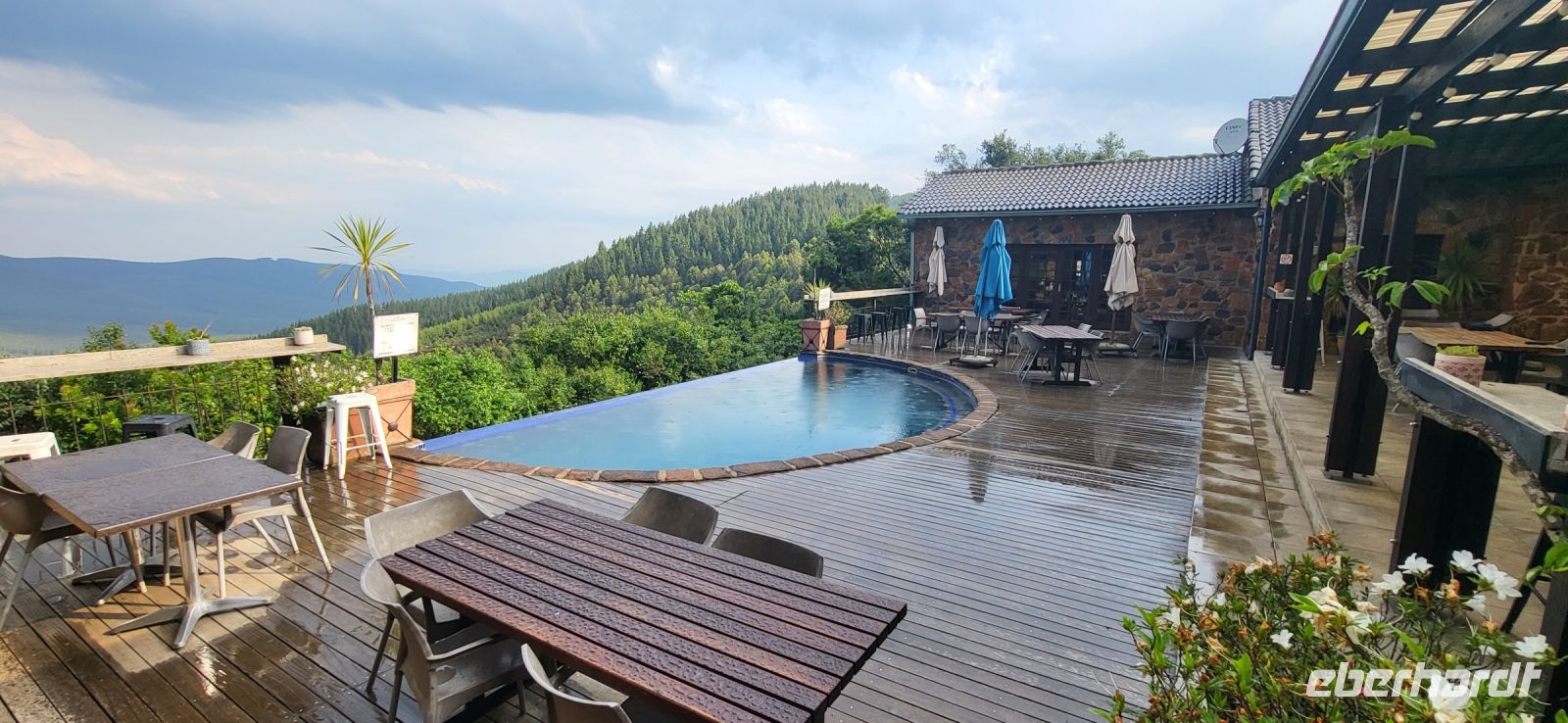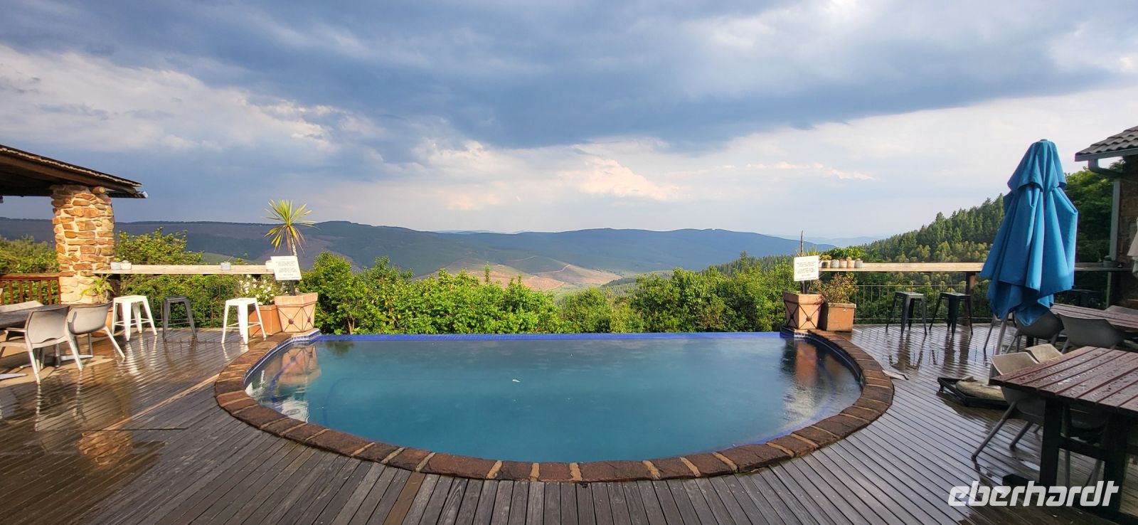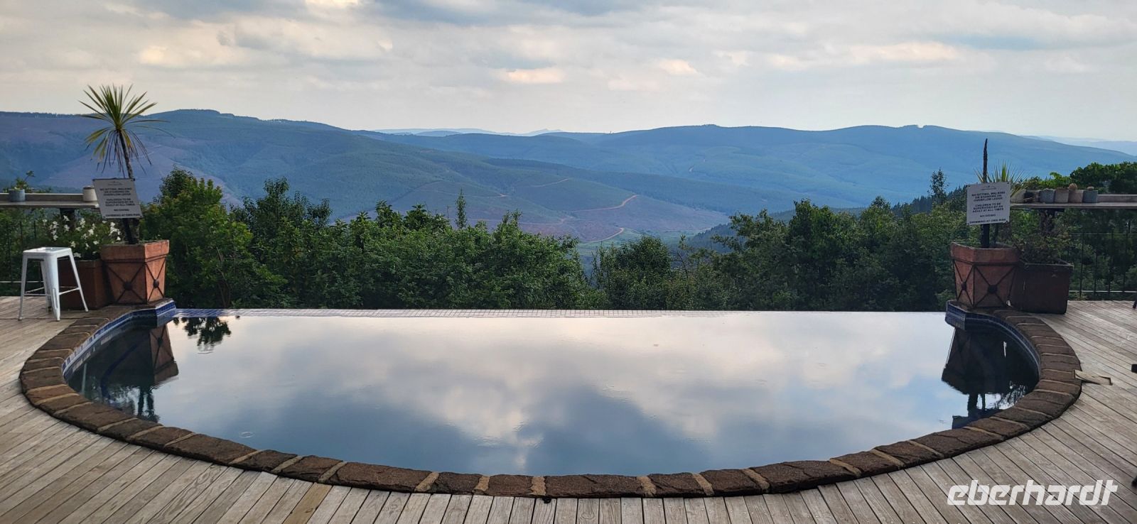 Die Abreise aus diesem paradiesischen Ort steht bevor, doch zunächst genießen wir noch ein tolles Frühstück, welches liebevoll für uns zubereitet wird. Bevor wir über die Grenze fahren, besichtigen wir die Ngwenya Glasfabrik. Ein tolles Recycling-Projekt, wo aus viel Altglas tolle neue Kuriositäten entstehen. Zudem eine schöne Anlage mit vielen kleinen Souvenirläden, in denen Handwerk aus eSwatini verkauft wird. Weiter geht die Reise durch die „kleine Schweiz des südlichen Afrikas“, wie das Land auch genannt wird. Wir befinden uns auf ca. 1000 m Höhe und sehen entlang unseres Weges nicht enden wollende Kiefern-und Eukalyptus Wälder. Zurück an der Grenze verlassen wir das einstige Swaziland zu Fuß und reisen auch zu Fuß wieder in Südafrika ein. Es war ein toller Abstecher in ein kleines, aber beeindruckendes Land voller Gegensätze. Wir befinden uns nun in der Provinz Mpumalanga, was so viel wie „Der Platz wo die Sonne aufgeht“ bedeutet. In Nelspruit, einer der größeren Städte der Umgebung, halten wir für einen Mittagsstopp. Hier gibt es die sogenannte „Fevertree Nursery“ mit einem schönen Farmshop und natürlich wieder viel zu gucken, schlemmen und genießen. Am Nachmittag erreichen wir die wunderschön gelegene Misty Mountain Lodge, in der wir zwei Nächte bleiben. Wunderschöne kleine Studios mit großem Balkon oder Terrasse, mit Blick in das vor uns liegende Tal oder in die Natur pur, so weit das Auge reicht. Ein Augenschmaus. So mancher von uns findet sich schnell in der Bar am bekannten Infinity-Pool des Hauses wieder und genießt die Aussicht in die Ferne. Abends erfolgt ein sehr schmackhaftes Abendessen im schönen Restaurant der Misty Mountain Lodge.