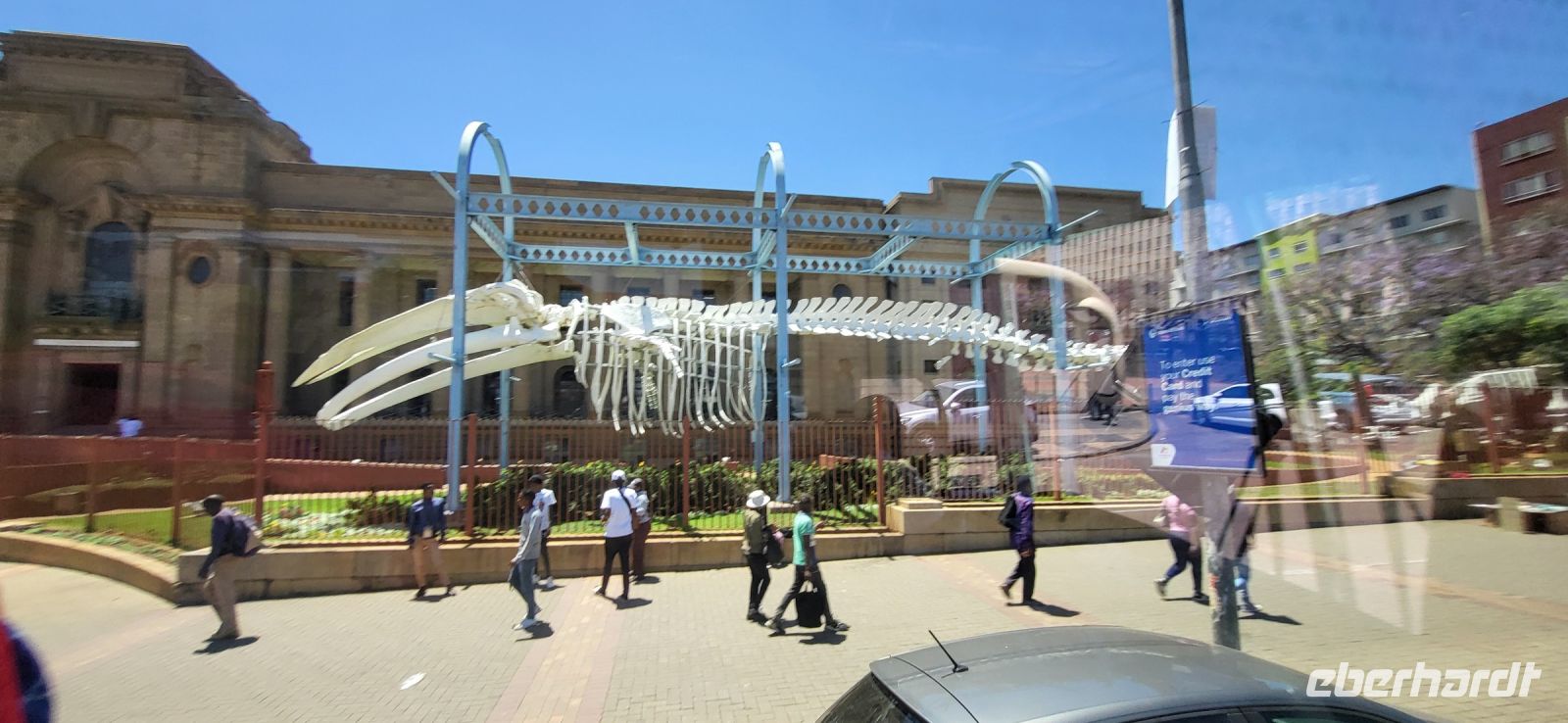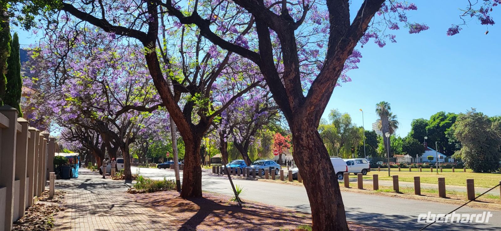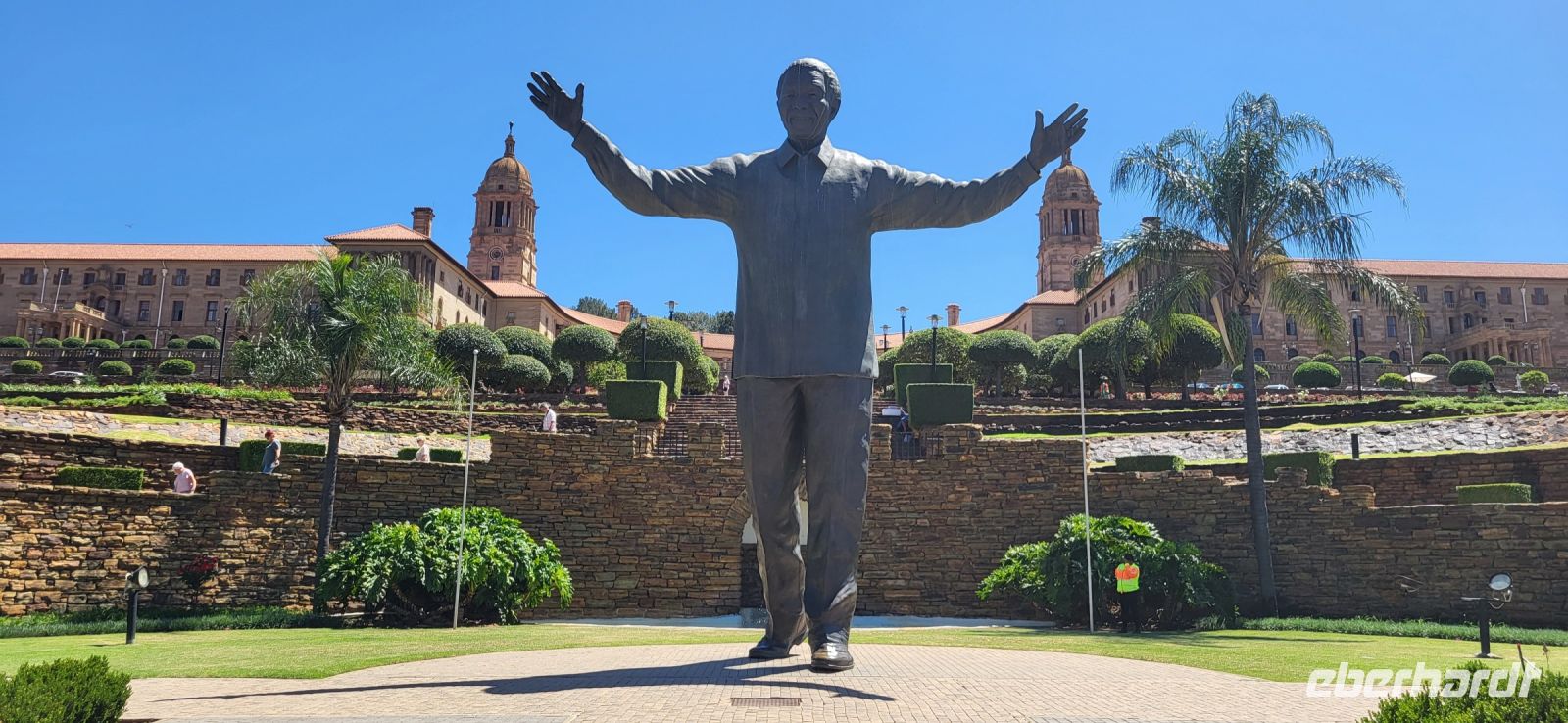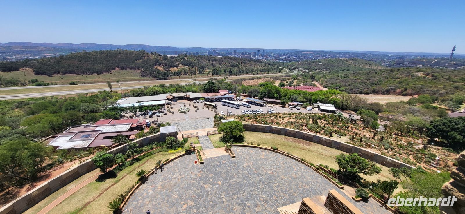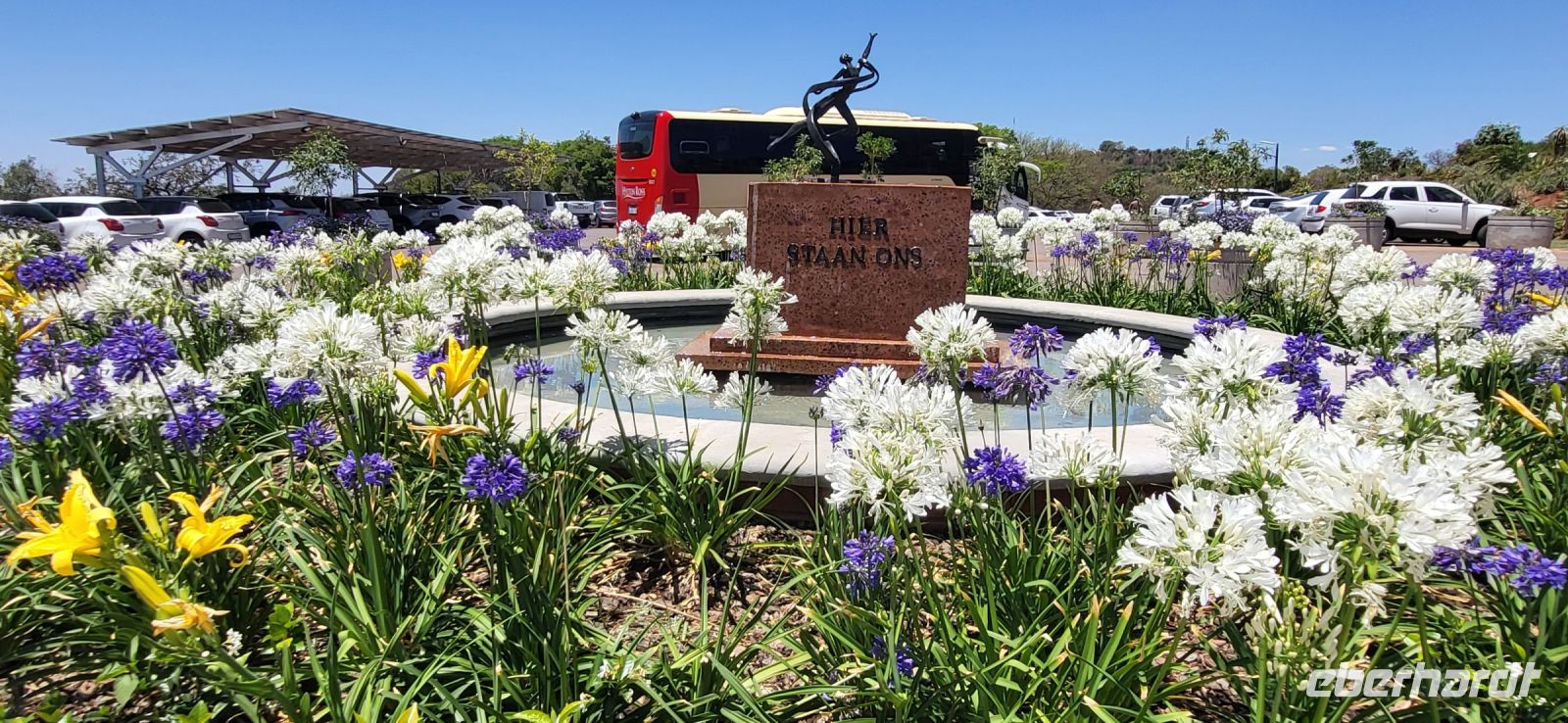 Nochmals ein letztes schmackhaftes Frühstück in unserem schönen Hotel und wir machen uns auf zur Citytour Pretoria. Sonet zeigt uns die Besonderheiten der Stadt wie beispielsweise den Obersten Gerichtshof, das Gefängnis, das Natur-und Geschichtsmuseum, das Theater, das Wohnhaus von Paul-Krüger, welches heute ein Museum ist. Wir sehen den alten Bahnhof, von dem noch heute der bekannte Rovos Rail startet, welcher durch das südliche Afrika fährt. Natürlich ist auch die Innenstadt gesäumt mit herrlichen Jacarandabäumen und es ist ein lila Farbenmeer um uns herum. So schön die Bäume sind, so schlecht sind diese im Grunde für die Natur, da sie täglich an die 500 l Wasser dem Grundwasser entziehen. Weiter geht unsere Tour zum 41 m hohen Voortrekker Monument. Der massive Granitbau wurde zu Ehren der Voortrekker (erste europäische Siedler) errichtet, die die Kapkolonie zwischen 1835 und 1854 zu Tausenden verließen, um weitere Gebiete des heutigen Südafrikas zu besiedeln. In der Halle im Monumentinneren wird auf einem umlaufenden Fries aus Marmorreliefs die Geschichte des großen Trecks mit sämtlichen Unwegsamkeiten gezeigt. Ein beeindruckendes Gebäude, welches man nicht missen sollte. Im Außenbereich verweilen wir noch bei einem kühlen Getränk und nutzen den besonderen Ort, um uns bei unserem nicht minder besonderen Fahrer Ratsha zu bedanken. Dieser hat uns 1983 km stets sicher und fröhlich durch den zweiten Teil unserer Südafrika Tour gefahren. Da noch etwas Zeit bis zu unserem Check-in bleibt, steuern wir das Emperors Palace an und fühlen uns im Innengebäude plötzlich mitten in Las Vegas. Es wurde dem sich dort befindlichen Caesar’s Palace nachempfunden und ein Kasino darf hier natürlich auch nicht fehlen. Nun heißt es aber aufzubrechen und den Flughafen ansteuern, der sich bereits in der Nähe befindet. Alles klappt zum Glück reibungslos und wir checken in Ruhe am Flughafen ein. Jetzt heißt es endgültig auf Wiedersehen liebe Sonet, die uns noch bis zum Check-in begleitet. Es war eine super schöne Zeit mit ihr auf Teil 2 unserer Reise. Nun geht es zurück nach Frankfurt, von wo aus jeder seine Rückreise antritt.