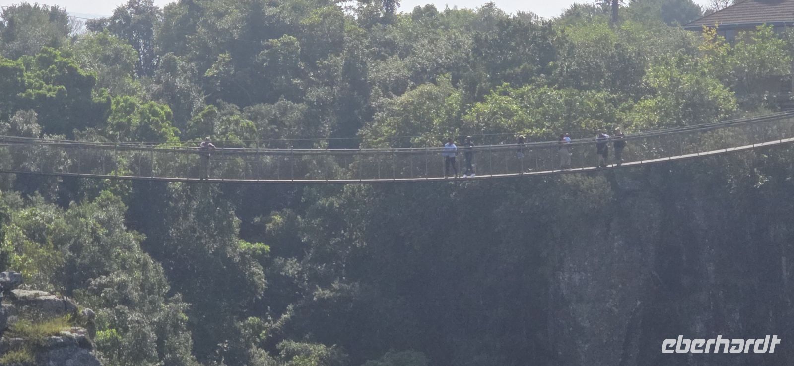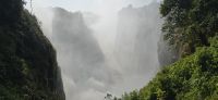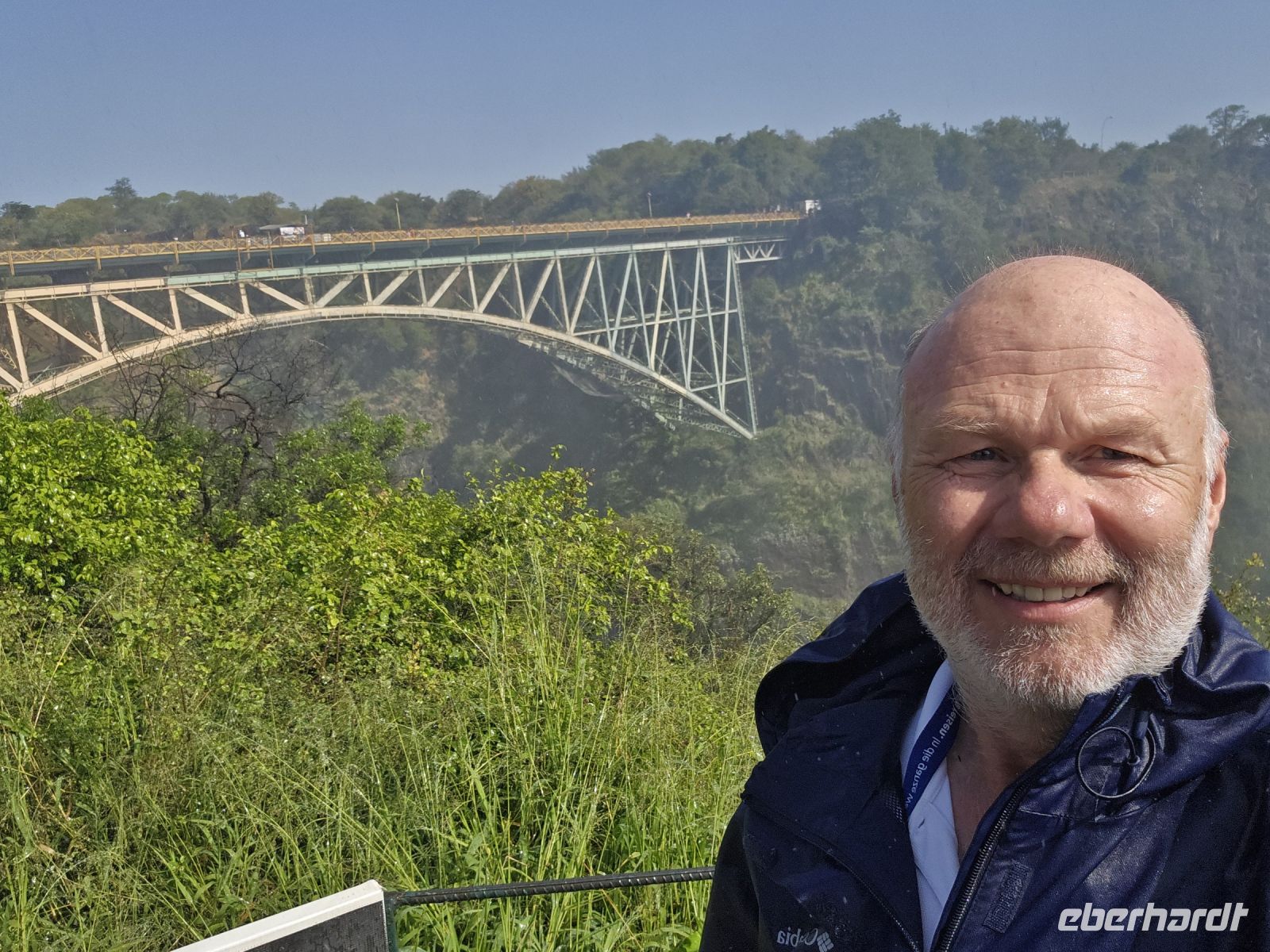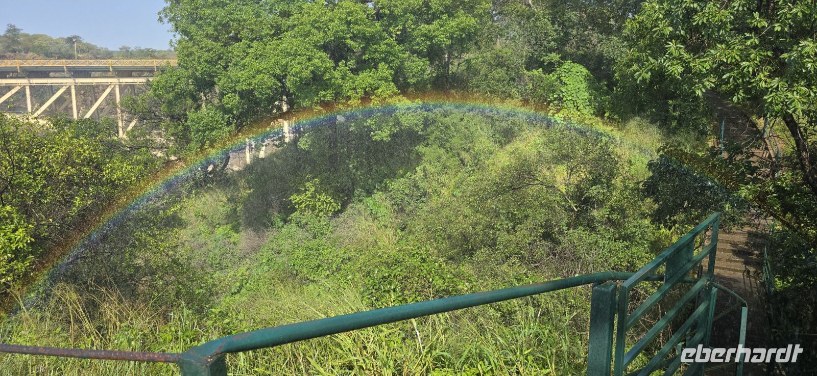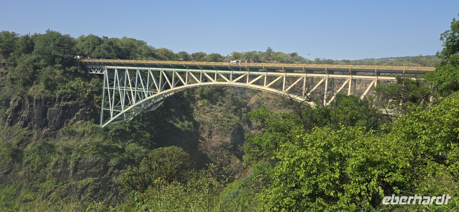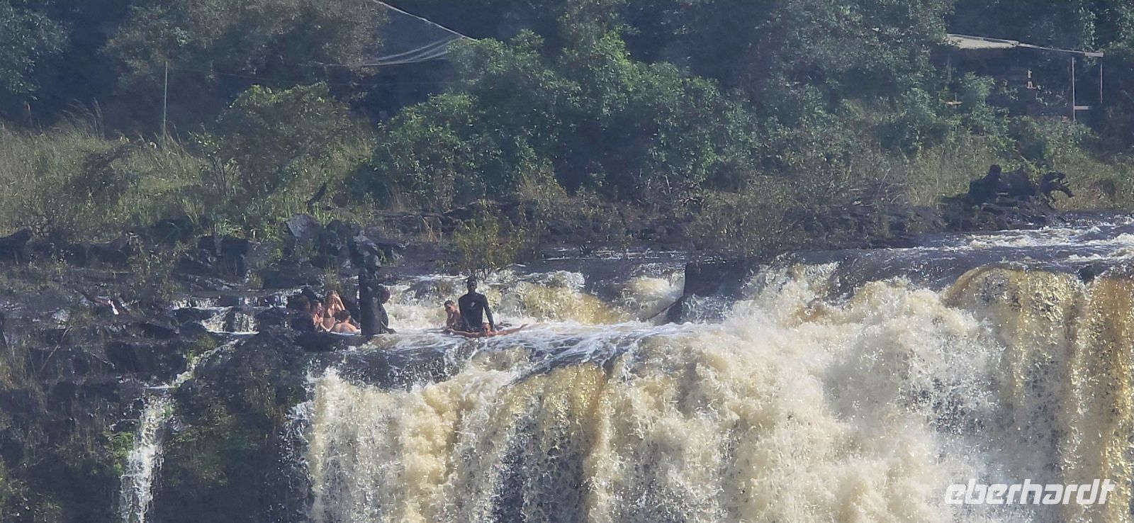Ein Blick auf die Grenzbrücke nach Sambia gehört ebenfalls zu den Highlights. Einige besonders Mutige , allerdings keiner von uns, wagten sich sogar in den sogenannten "Devil's Pool" – ein natürliches Becken direkt am Rande der tosenden Wassermassen auf sambischer Seite.