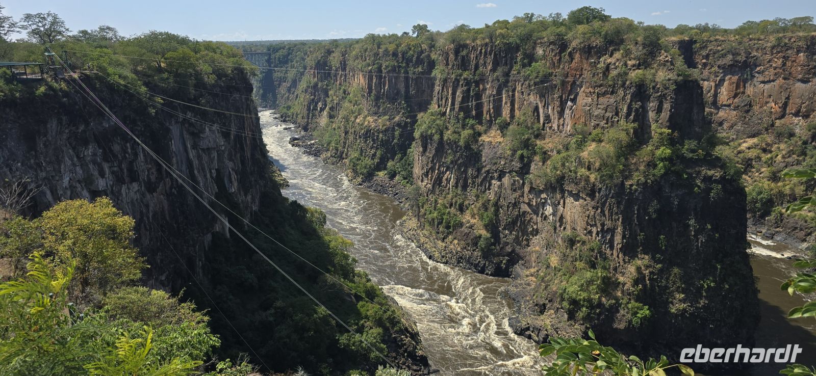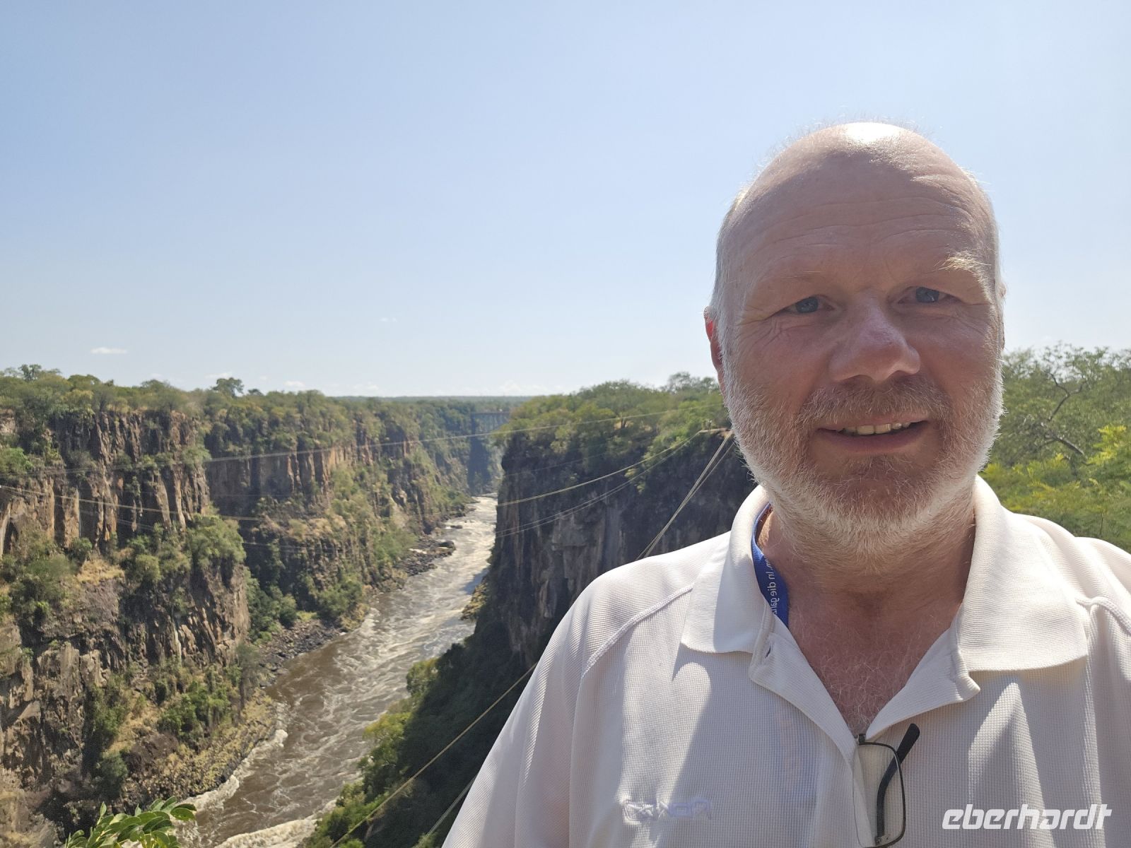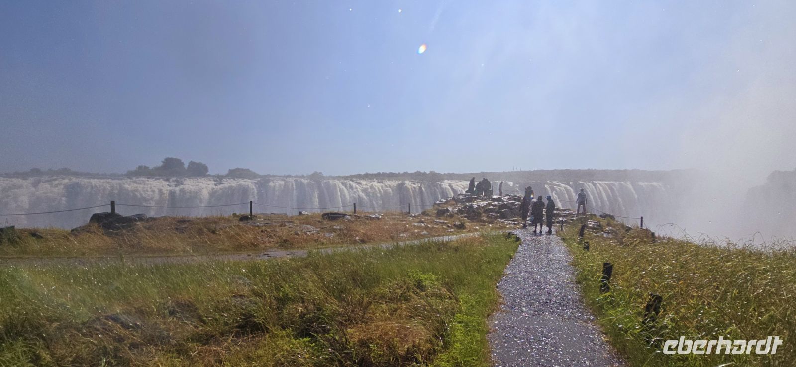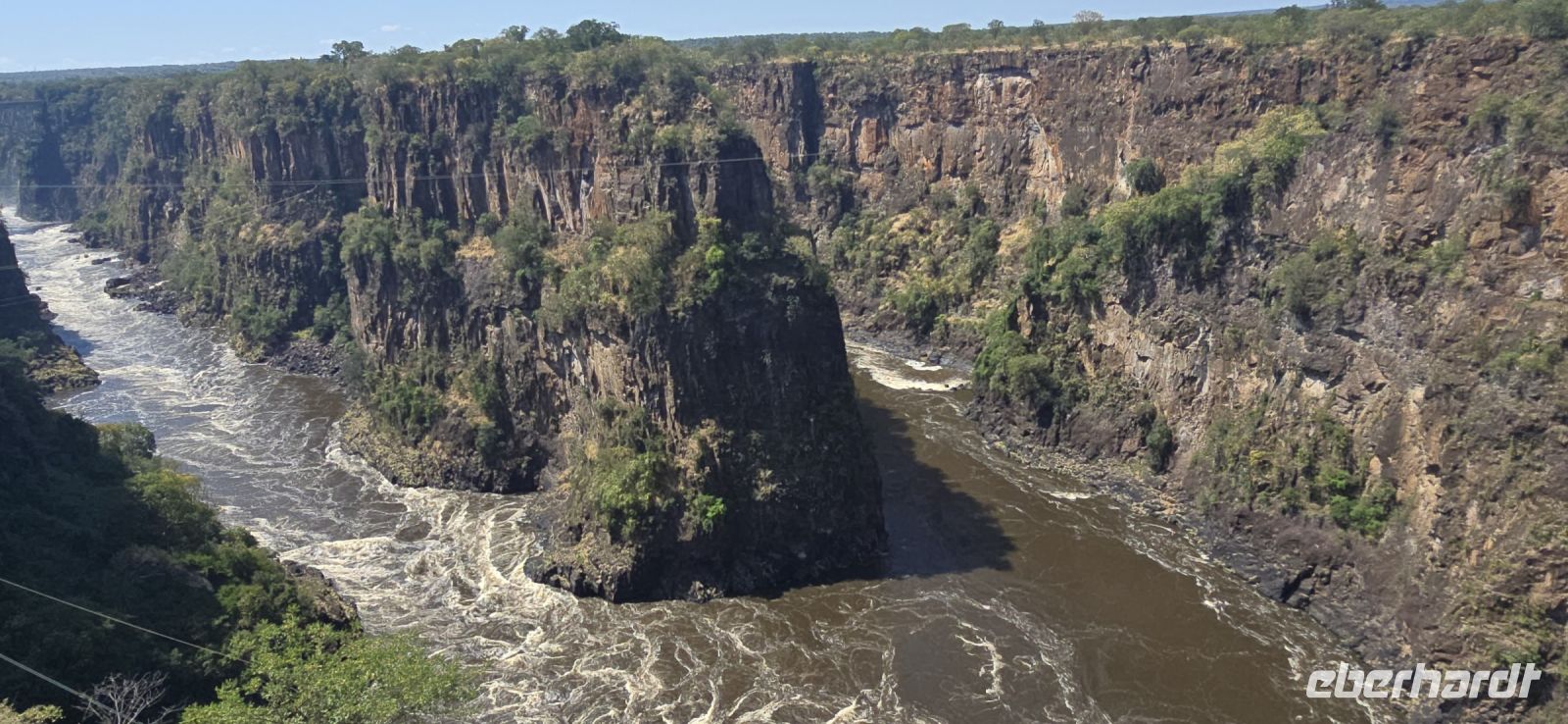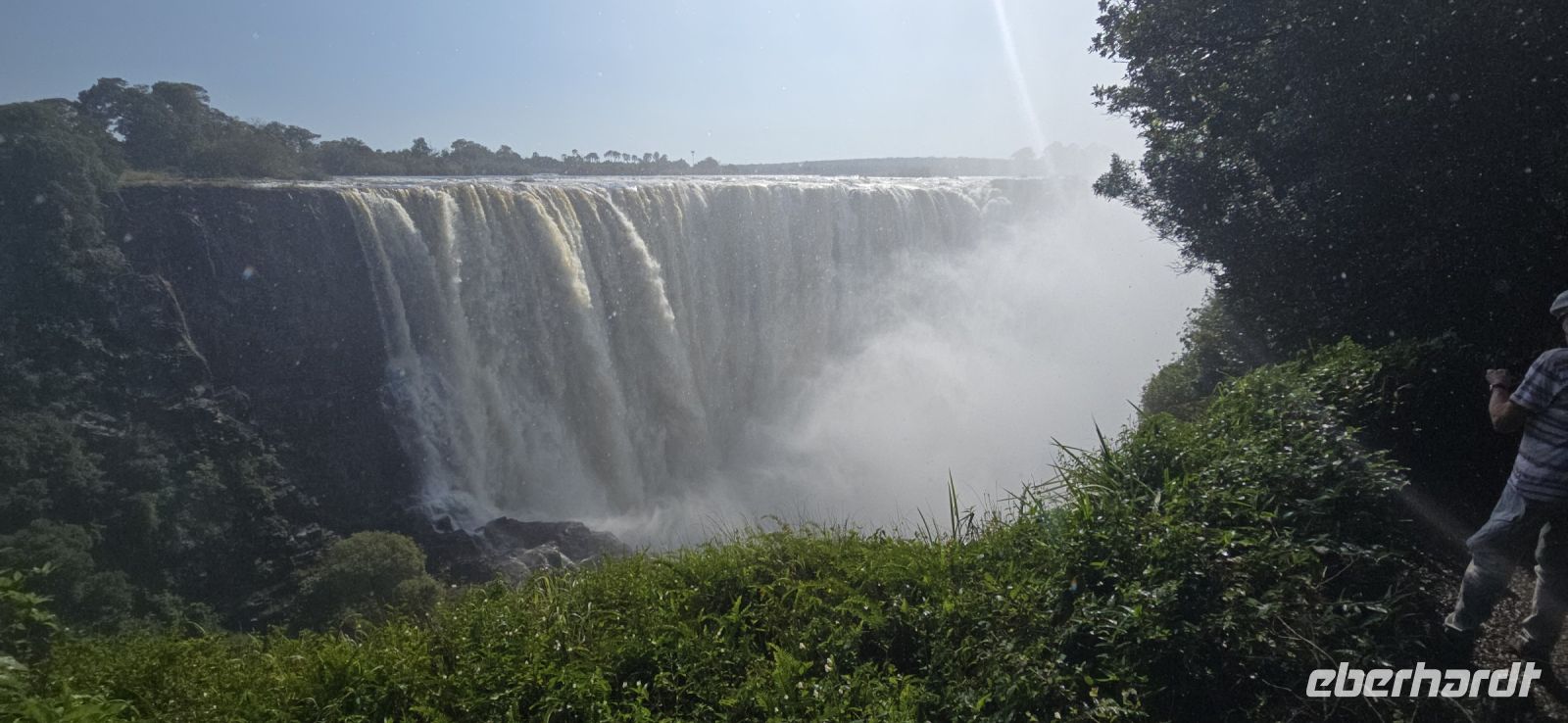 Ein Blick auf die Grenzbrücke nach Sambia gehört ebenfalls zu den Highlights. Einige besonders Mutige , allerdings keiner von uns, wagten sich sogar in den sogenannten "Devil's Pool" – ein natürliches Becken direkt am Rande der tosenden Wassermassen auf sambischer Seite.