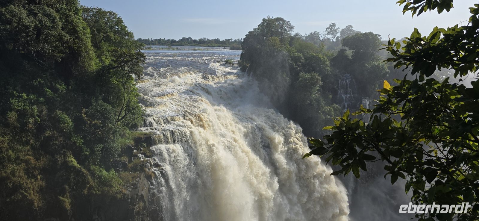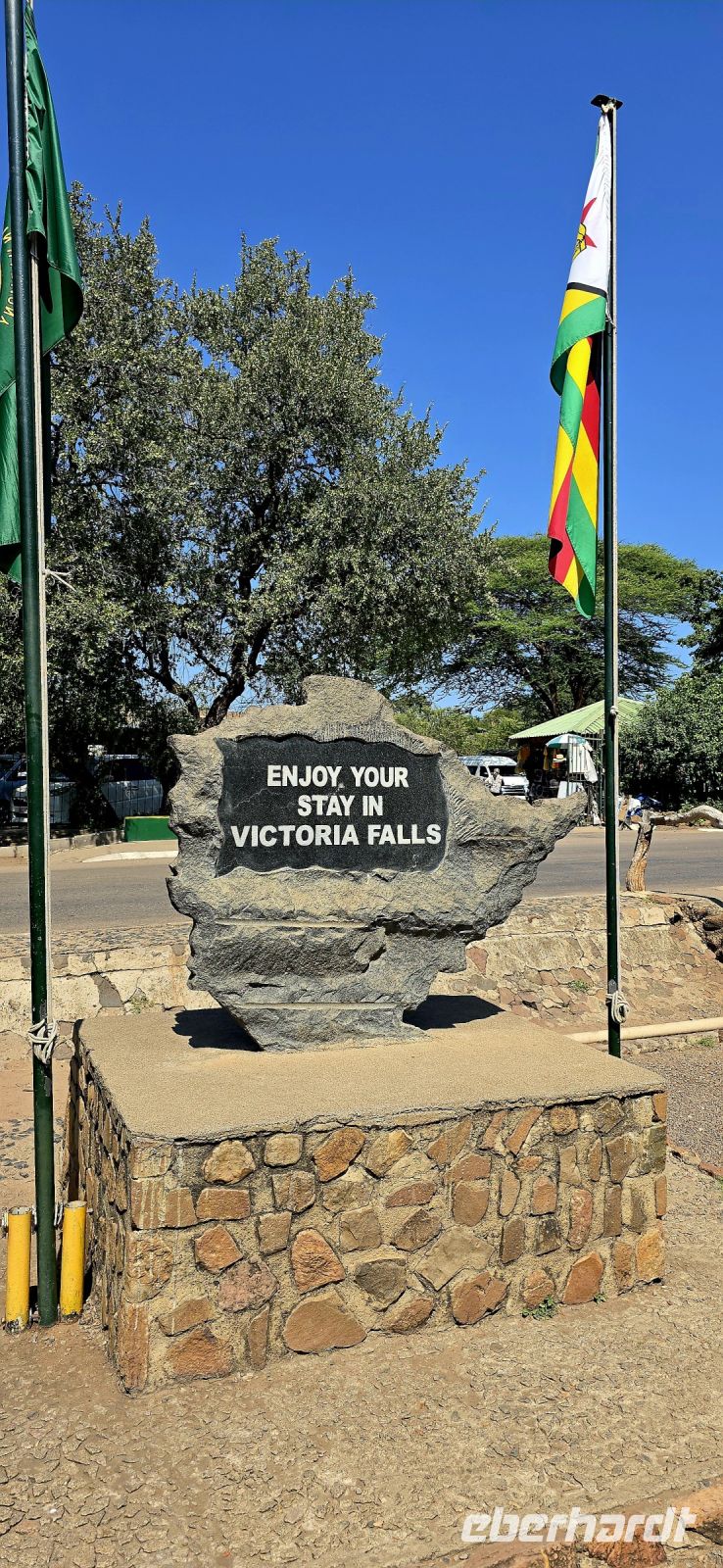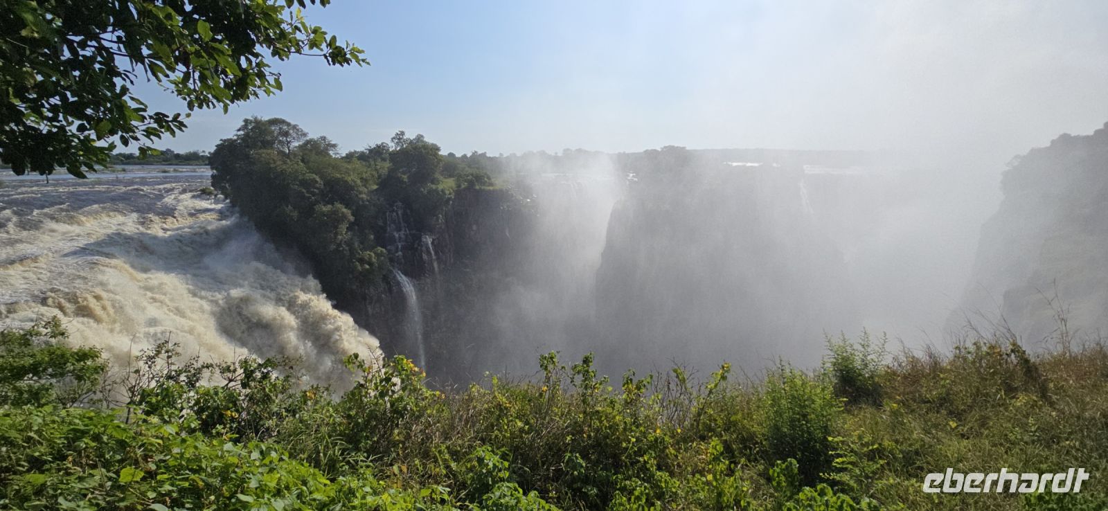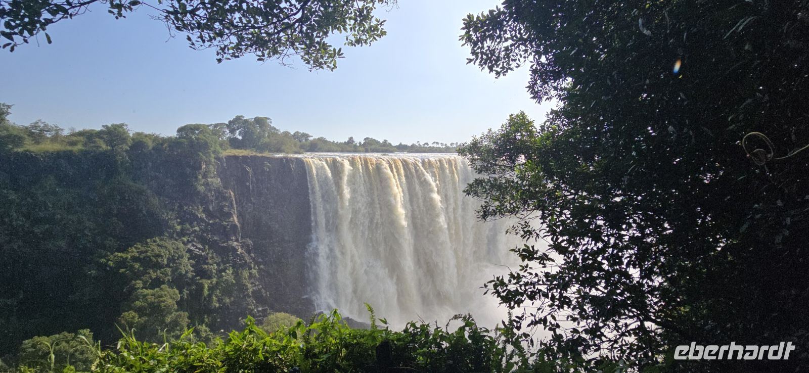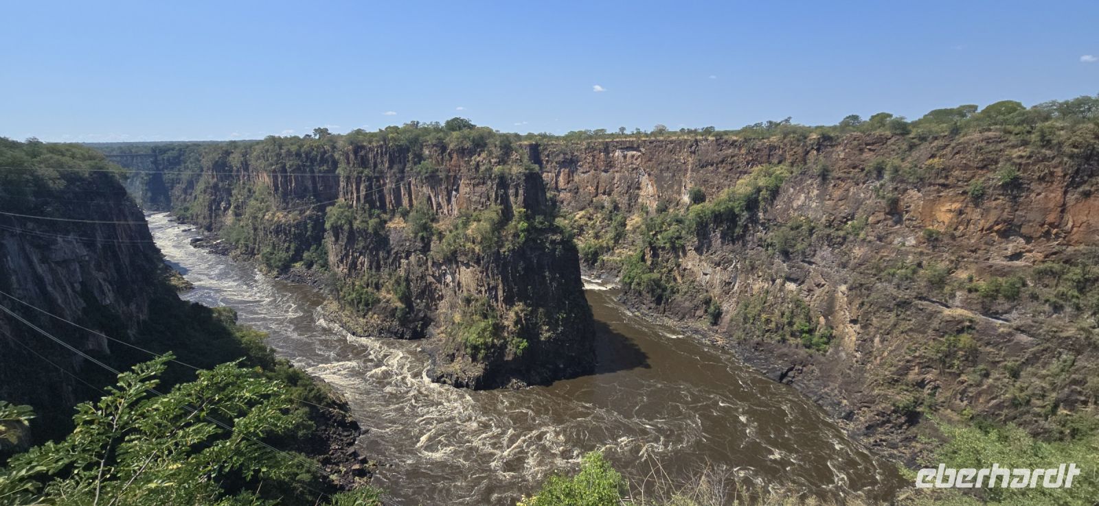 Ein Blick auf die Grenzbrücke nach Sambia gehört ebenfalls zu den Highlights. Einige besonders Mutige , allerdings keiner von uns, wagten sich sogar in den sogenannten "Devil's Pool" – ein natürliches Becken direkt am Rande der tosenden Wassermassen auf sambischer Seite.