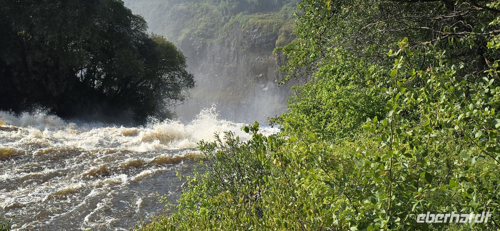 Der Nationalpark bietet insgesamt 12 Aussichtspunkte, von denen jeder einzelne beeindruckender ist als der vorherige. Die Wassermassen des wasserreichsten Wasserfalls der Welt stürzen mit unbändiger Kraft in die Tiefe, während die Gischt meterhoch aufsteigt – ein wahres Naturspektakel! Die ersten Aussichtspunkte waren noch trocken, doch ab dem achten wurde es feuchter und nasser, bis schließlich kein Kleidungsstück mehr trocken blieb. Regenjacken halfen nur bedingt, und so wurden auch Pässe und Dokumente unfreiwillig mitgewaschen.