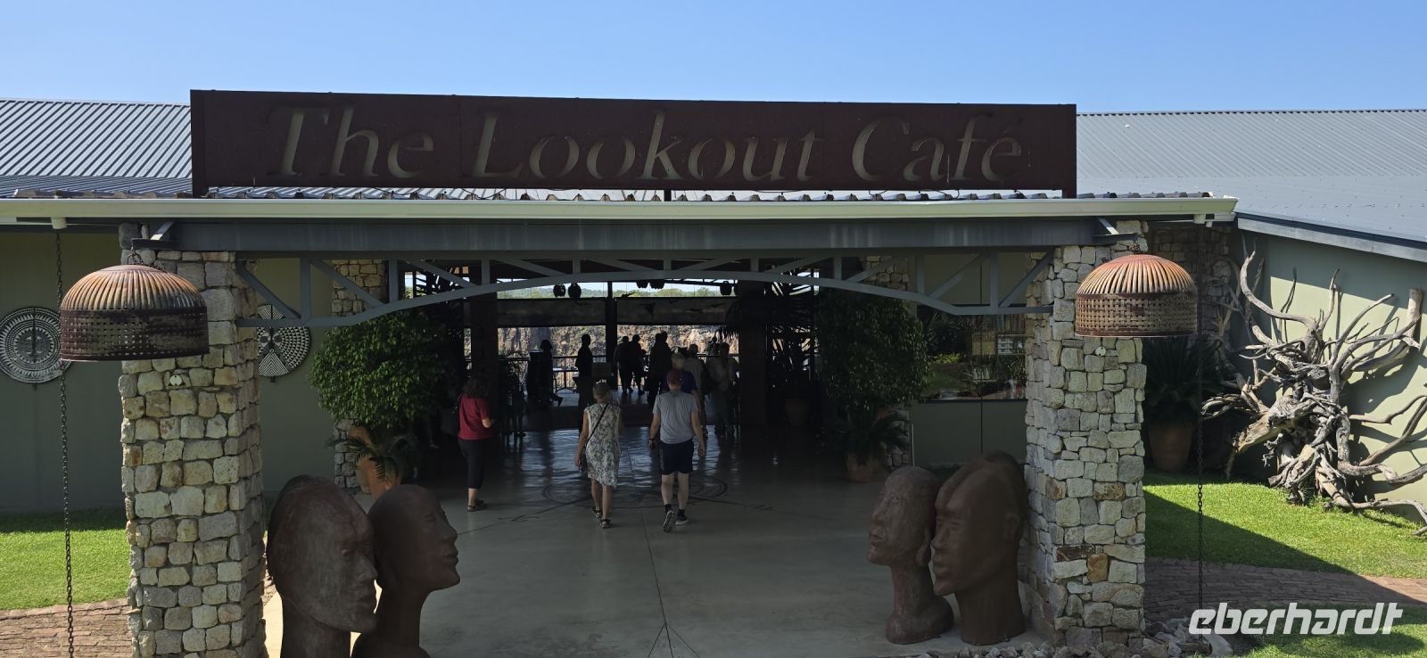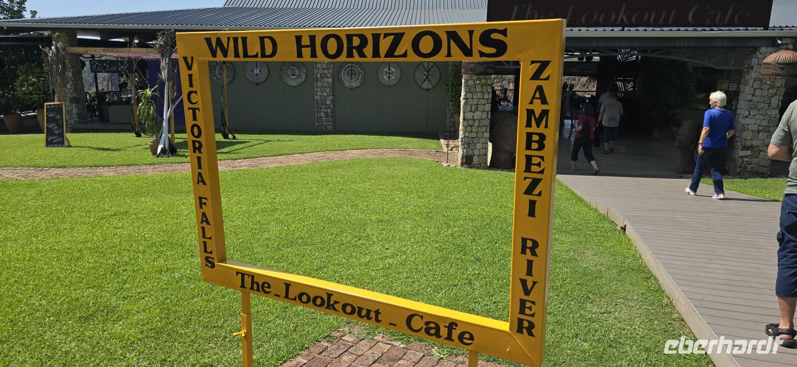 Zum Mittag kehrten wir für einen Fotostop wir bekannten Victoria Falls Outlook Café ein. Der Panoramablick auf die gigantischen Wasserfälle war schlicht atemberaubend – perfekt für unzählige Selfies von der schönen Terrasse aus.