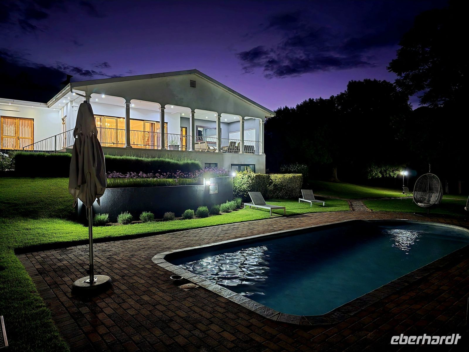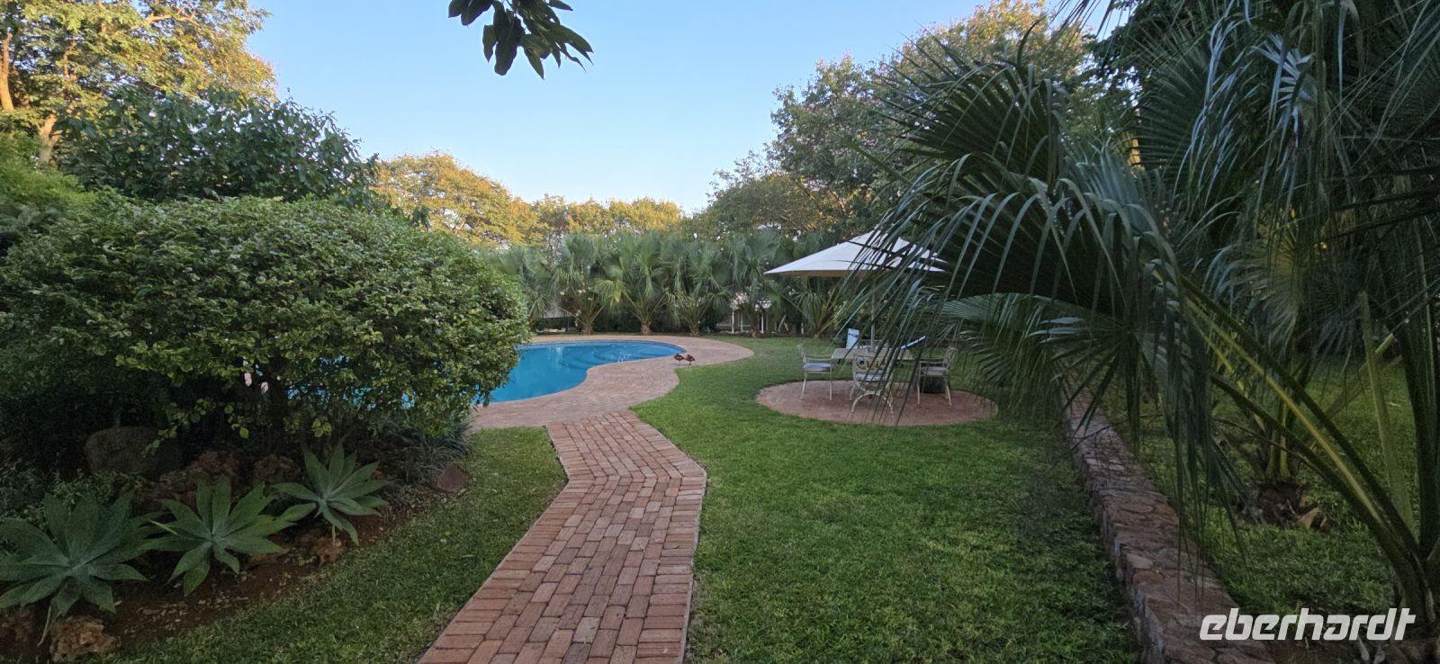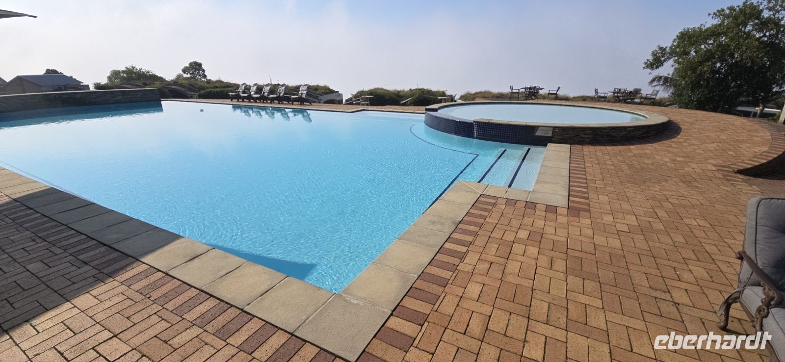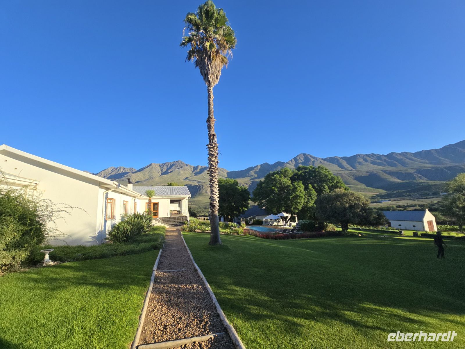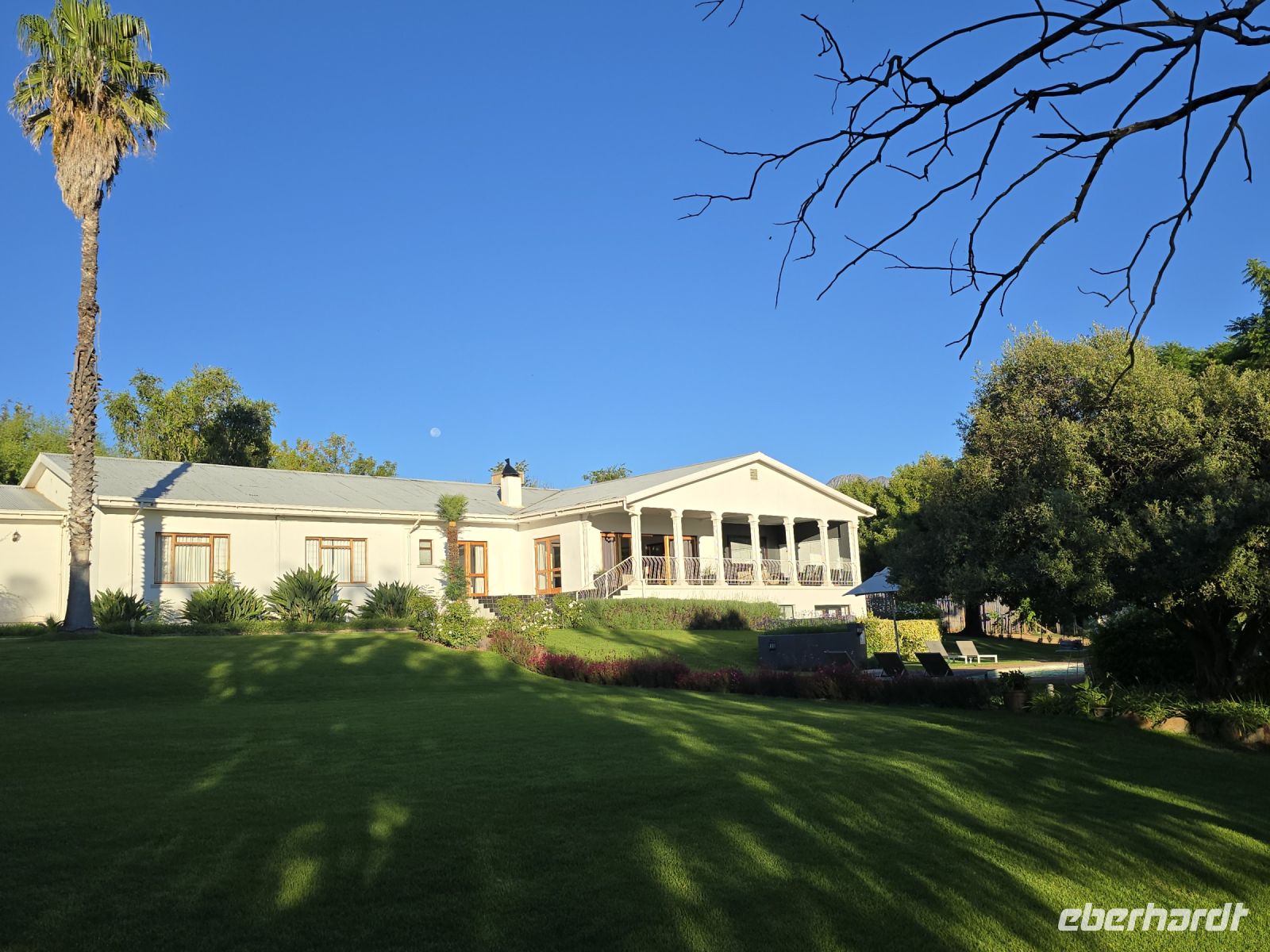 Doch die Erholung war noch nicht vorbei. Ab in den **Pool im Garten**, um den Staub des Tages abzuwaschen und sich auf den Abend vorzubereiten. Frisch gemacht ging es dann zum stilvollen Dinner, bei dem – natürlich – **Strauß** die Speisekarte bestimmte. Dazu wurden köstliche Weine serviert, die den Abend perfekt abrundeten.