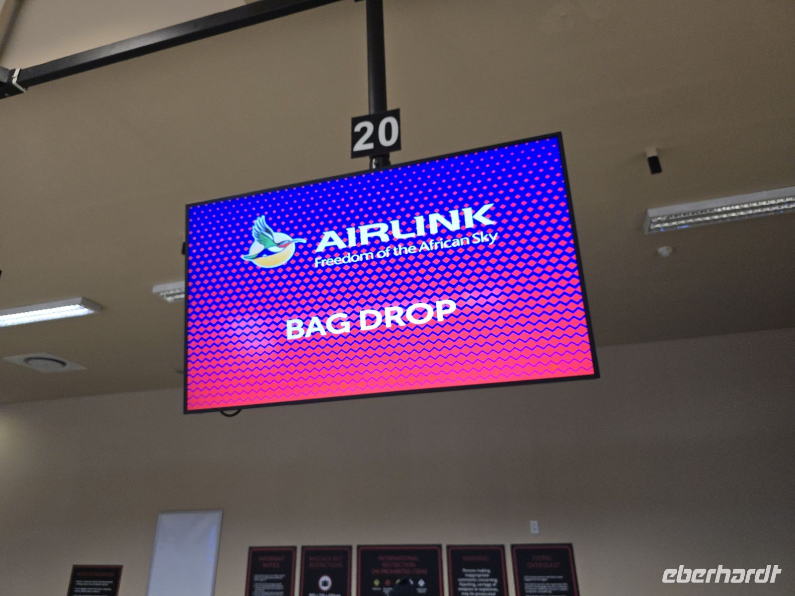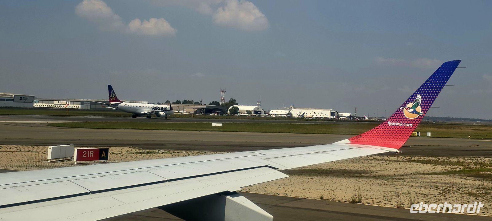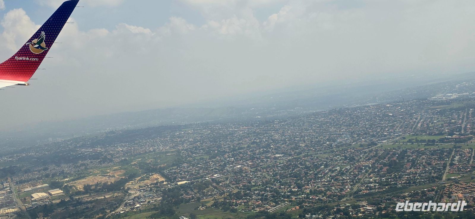 Schweren Herzens hieß es dann: Bye Bye, Victoria Falls! Unser Fahrer Doomie brachte uns zum Flughafen, von wo aus wir mit Airlink zurück nach Johannesburg flogen. Hier funktionierte die Versorgung an Bord wieder einmal wunderbar – mit Rotwein randvoll spendiert und Baguette verging die Zeit sprichwörtlich wie im Fluge.