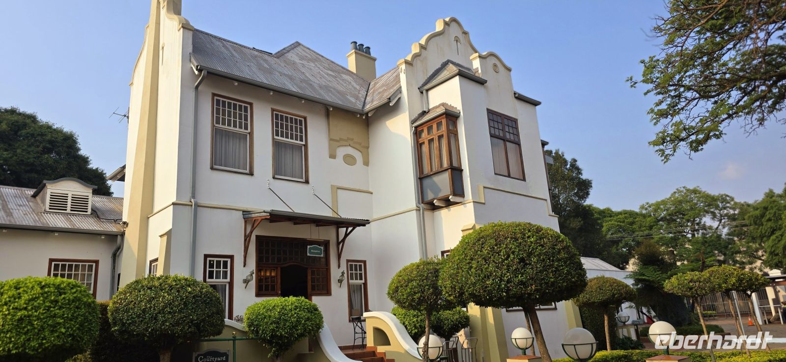 Unsere Unterkunft für die Nacht, das umgebaute Herrenhaus Courtyard Arcadia, empfängt uns mit seinem besonderen Charme. Während die äußere Erscheinung beeindruckt, erweist sich das Innere nicht immer als ganz so perfekt – aber für eine Nacht ist es durchaus gemütlich.
