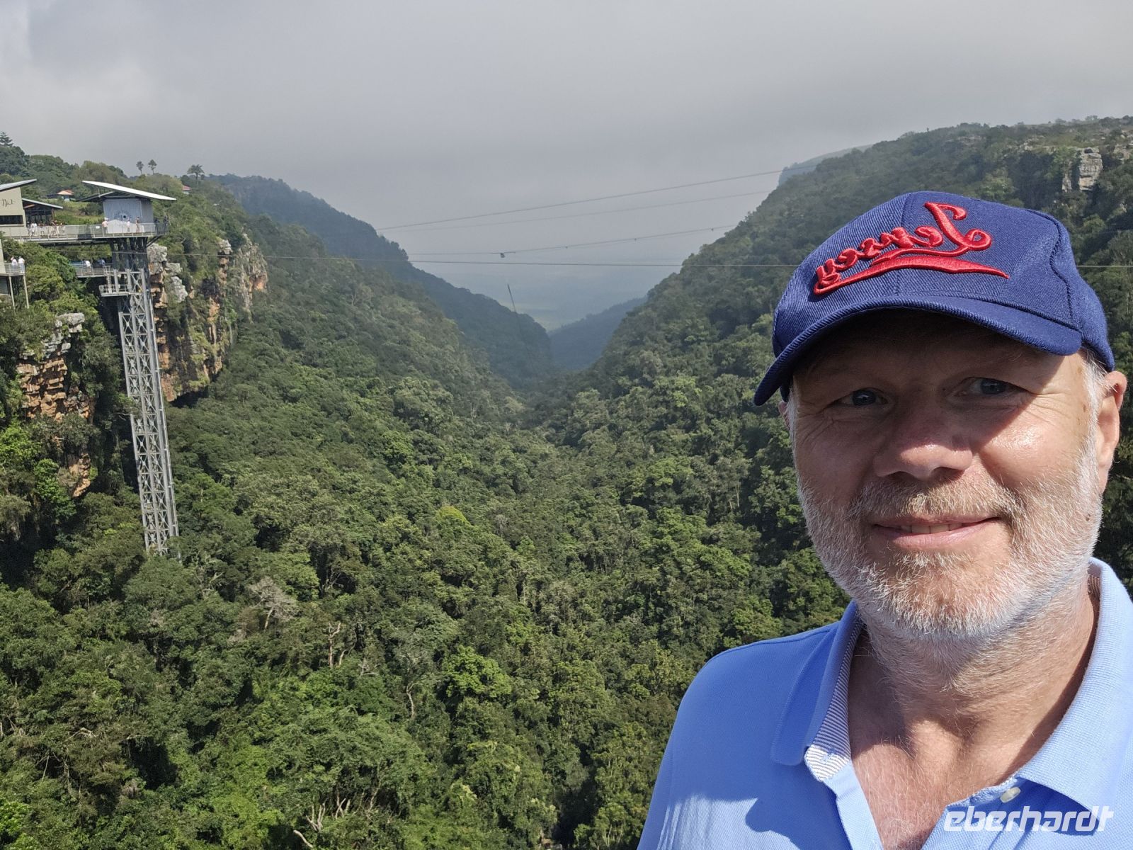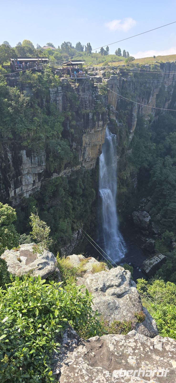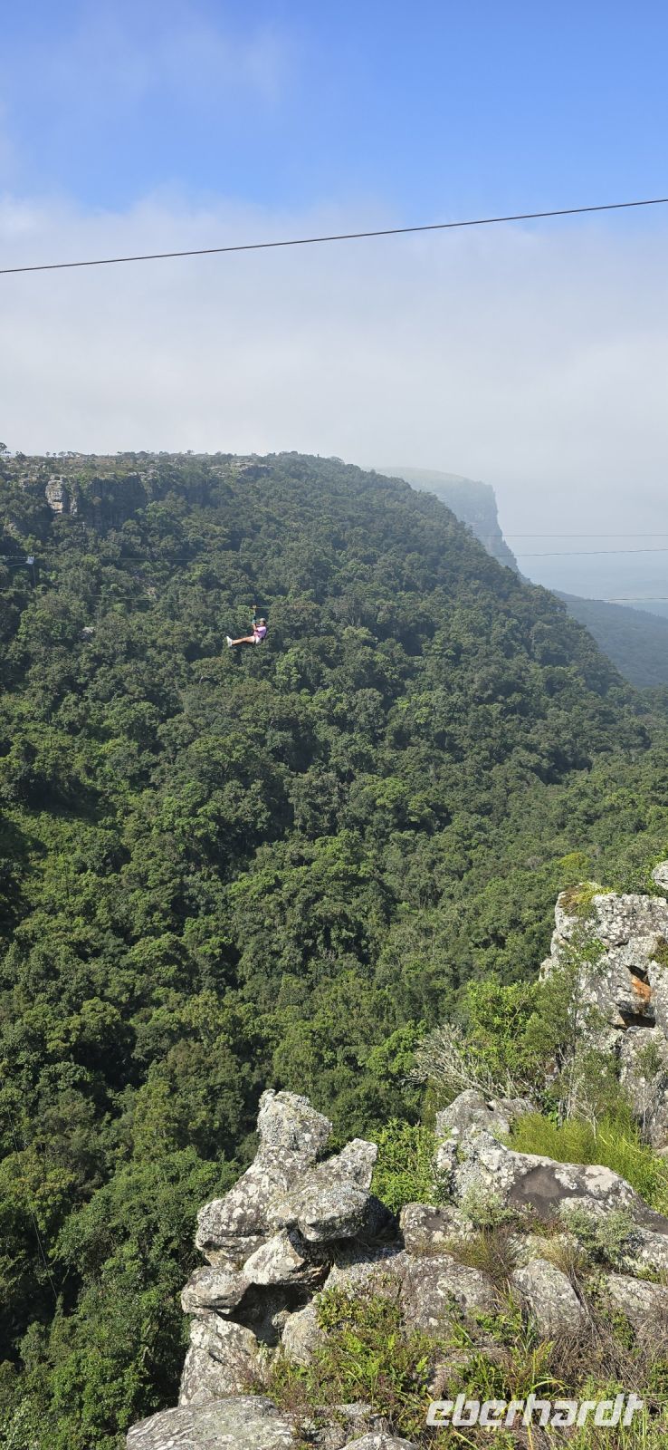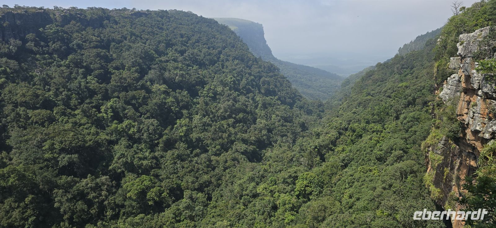 God’s Window und das alternative Wonder View sind heute ebenfalls von einer dichten Wolkendecke verhüllt, sodass wir von oben nur eine weiße Wand sehen. Doch wir haben noch ein weiteres Highlight im Programm: Erstmals steuert eine Eberhardt-Reisegruppe den Graskop Gorge Panoramic Lift an – und die Premiere wird ein voller Erfolg! Eine spektakuläre Aussichtsplattform eröffnet uns einen atemberaubenden Blick, bevor uns der Panoramaaufzug tief in die Schlucht hinunterbringt. Unten erwartet uns ein faszinierender Wanderweg durch den Regenwald, gesäumt von informativen Schautafeln zur Flora und Fauna. Der Rundweg endet am Lift, der uns wieder an den Rand der Schlucht zurückbringt.
