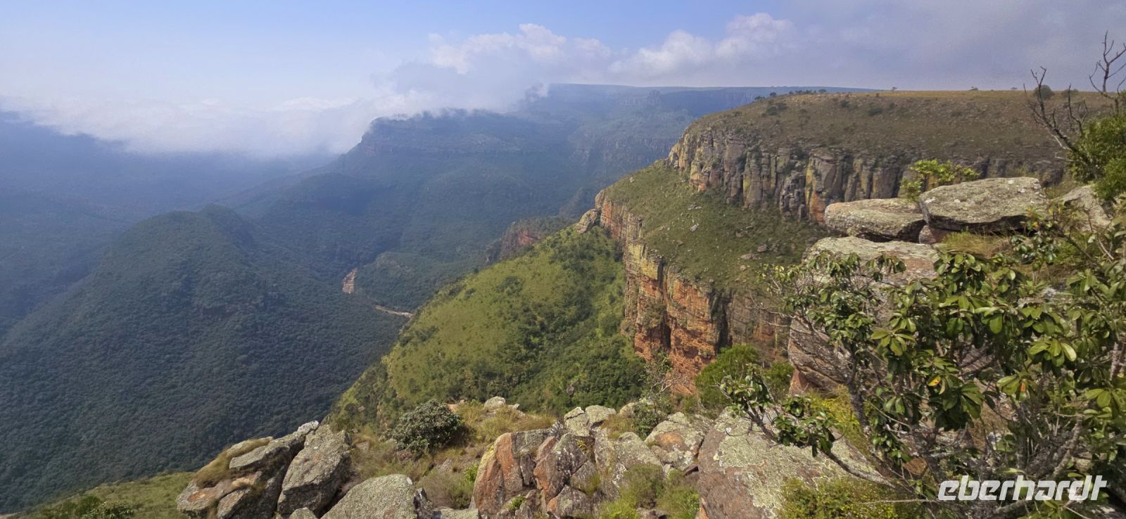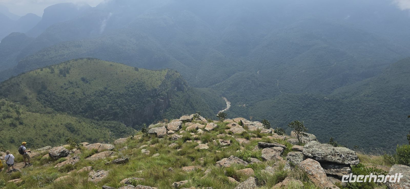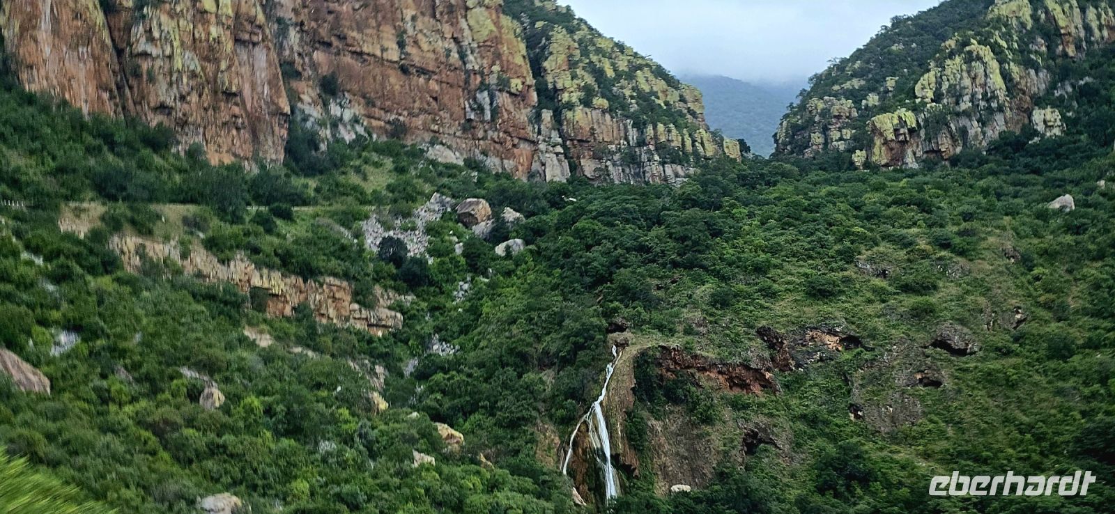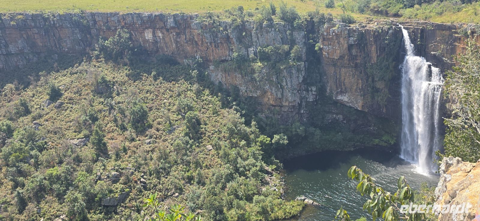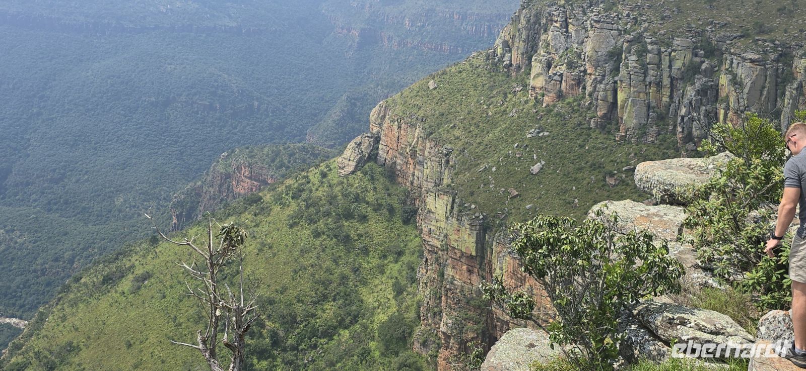 God’s Window und das alternative Wonder View sind heute ebenfalls von einer dichten Wolkendecke verhüllt, sodass wir von oben nur eine weiße Wand sehen. Doch wir haben noch ein weiteres Highlight im Programm: Erstmals steuert eine Eberhardt-Reisegruppe den Graskop Gorge Panoramic Lift an – und die Premiere wird ein voller Erfolg! Eine spektakuläre Aussichtsplattform eröffnet uns einen atemberaubenden Blick, bevor uns der Panoramaaufzug tief in die Schlucht hinunterbringt. Unten erwartet uns ein faszinierender Wanderweg durch den Regenwald, gesäumt von informativen Schautafeln zur Flora und Fauna. Der Rundweg endet am Lift, der uns wieder an den Rand der Schlucht zurückbringt.