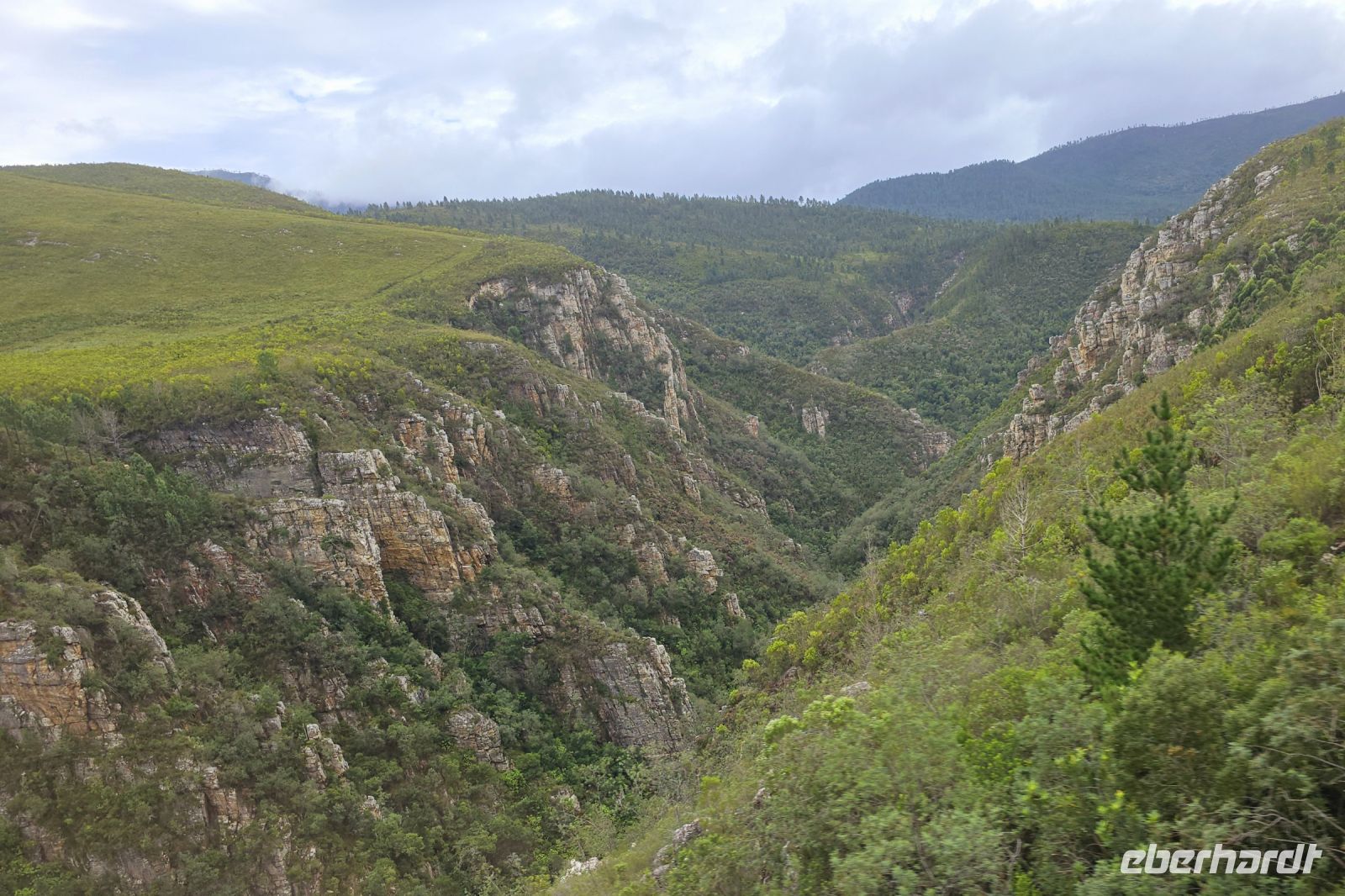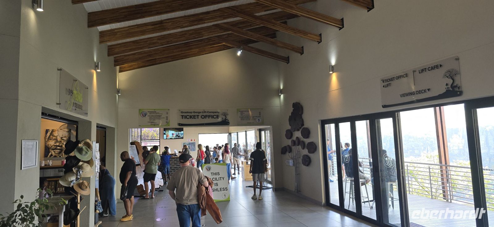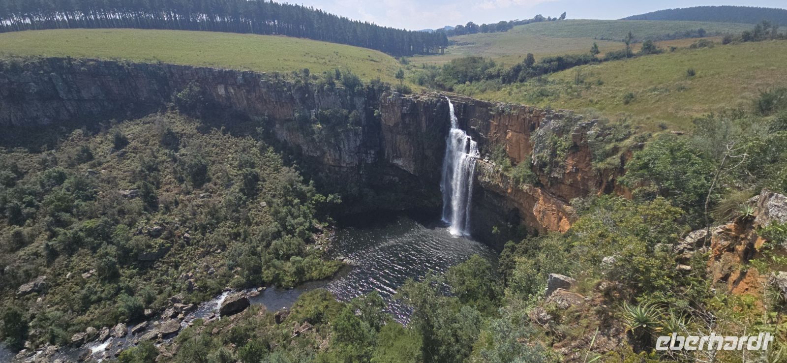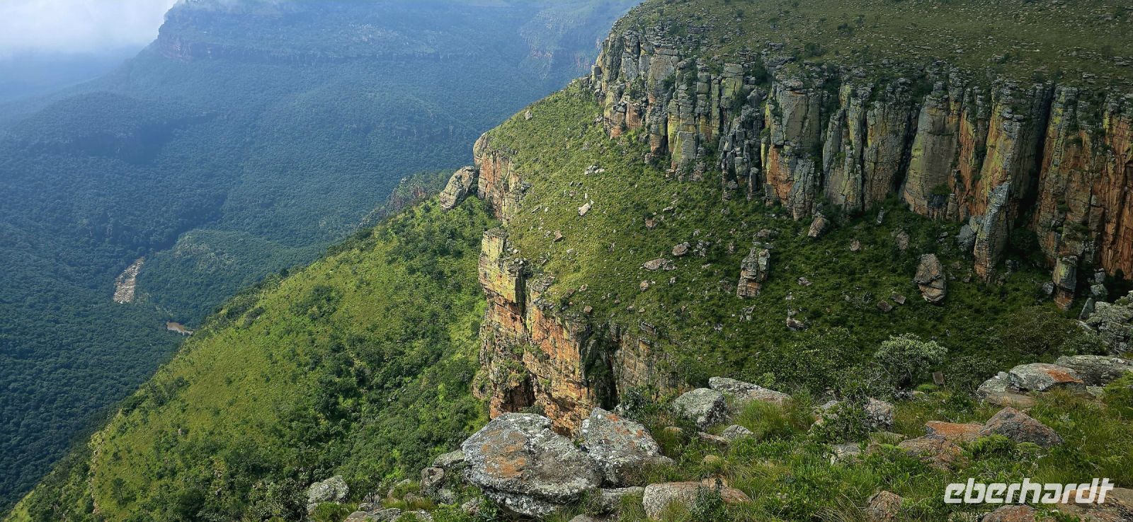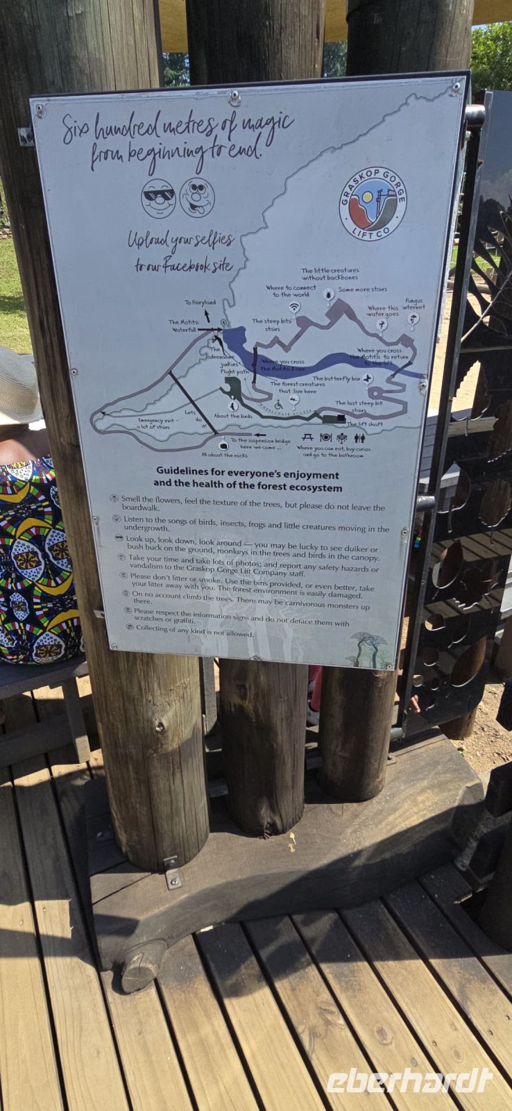 God’s Window und das alternative Wonder View sind heute ebenfalls von einer dichten Wolkendecke verhüllt, sodass wir von oben nur eine weiße Wand sehen. Doch wir haben noch ein weiteres Highlight im Programm: Erstmals steuert eine Eberhardt-Reisegruppe den Graskop Gorge Panoramic Lift an – und die Premiere wird ein voller Erfolg! Eine spektakuläre Aussichtsplattform eröffnet uns einen atemberaubenden Blick, bevor uns der Panoramaaufzug tief in die Schlucht hinunterbringt. Unten erwartet uns ein faszinierender Wanderweg durch den Regenwald, gesäumt von informativen Schautafeln zur Flora und Fauna. Der Rundweg endet am Lift, der uns wieder an den Rand der Schlucht zurückbringt.