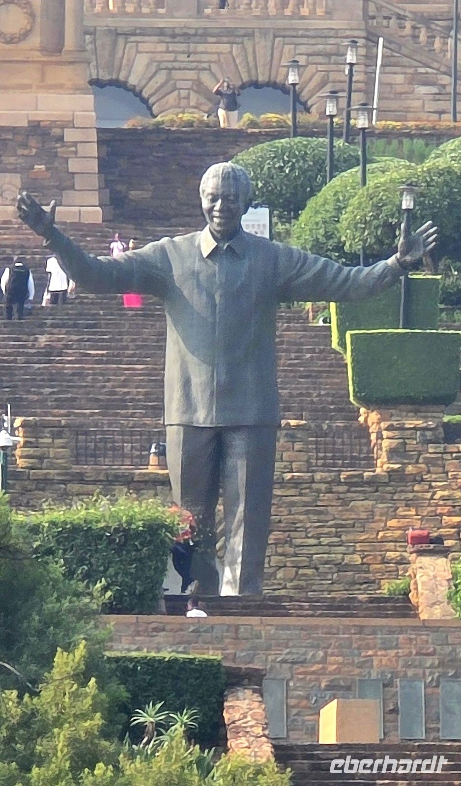 Am Nachmittag erreichen wir die Metropolregion Johannesburg und Pretoria. Obwohl 60 Kilometer voneinander entfernt, wachsen die beiden Städte immer mehr zusammen. Während einer Orientierungsfahrt durch Pretoria bekommen wir einige geschichtsträchtige Sehenswürdigkeiten zu sehen: das Wohnhaus von Paul Kruger, das beeindruckende Afrika-Denkmal und die Regierungsgebäude mit der riesigen Mandela-Statue.