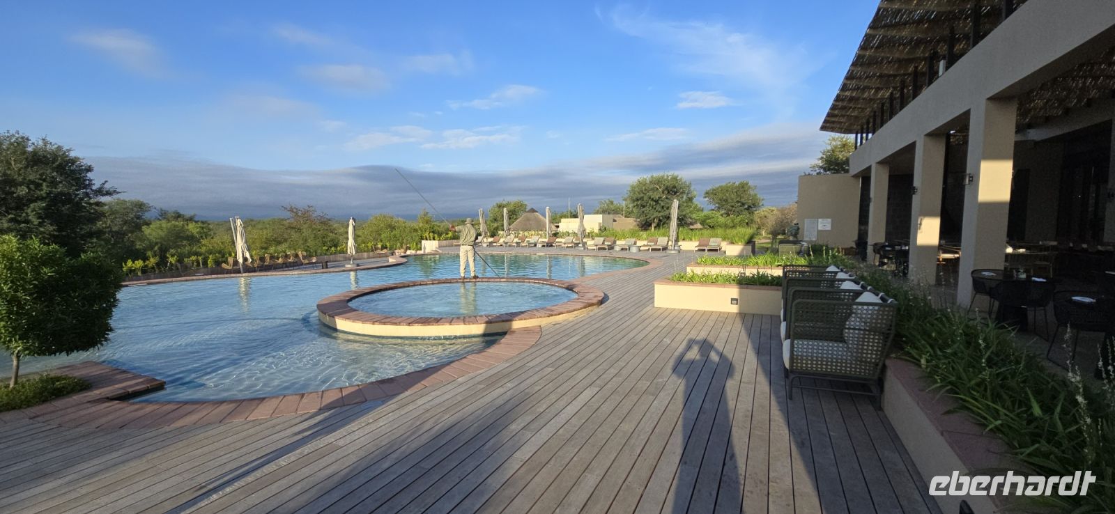 Ganz ohne Stress erreichen wir die traumhafte Anlage des Radisson. Die ersten Gedanken drehen sich um den Pool, die Aussicht und das entspannte Ambiente – doch nicht lange, denn kaum haben wir unsere wunderschönen Zimmer bezogen, rollen auch schon die Jeeps an. Zwei Ranger erwarten uns für das erste große Safari-Erlebnis am Kruger Nationalpark. Also rein ins Abenteuer, ab in die Pridelands – die Show der Wildnis kann beginnen!