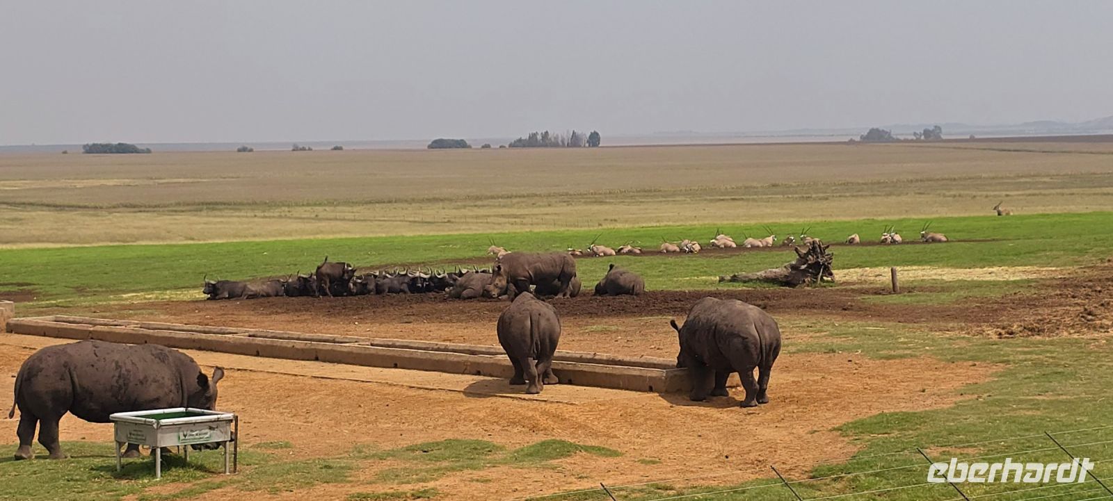 Unsere Mittagspause verbringen wir in Alzu mit Blick auf eine private Wildtierfarm. Noch einmal erleben wir afrikanische Tierwelt hautnah: Nashörner, Büffel, Oryx und diverse andere Antilopen kommen uns fast zum Greifen nah. Ein großartiger letzter Safari-Moment!