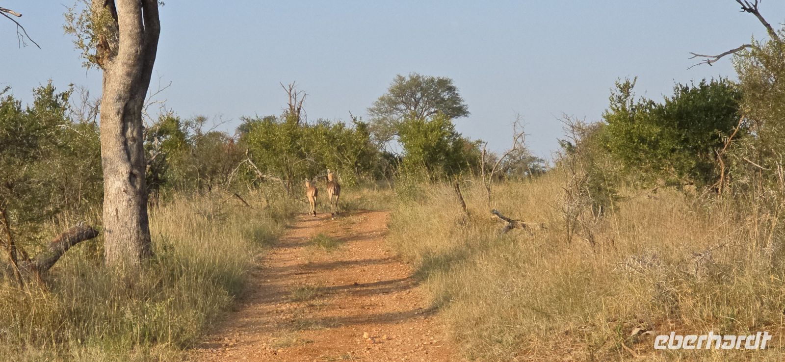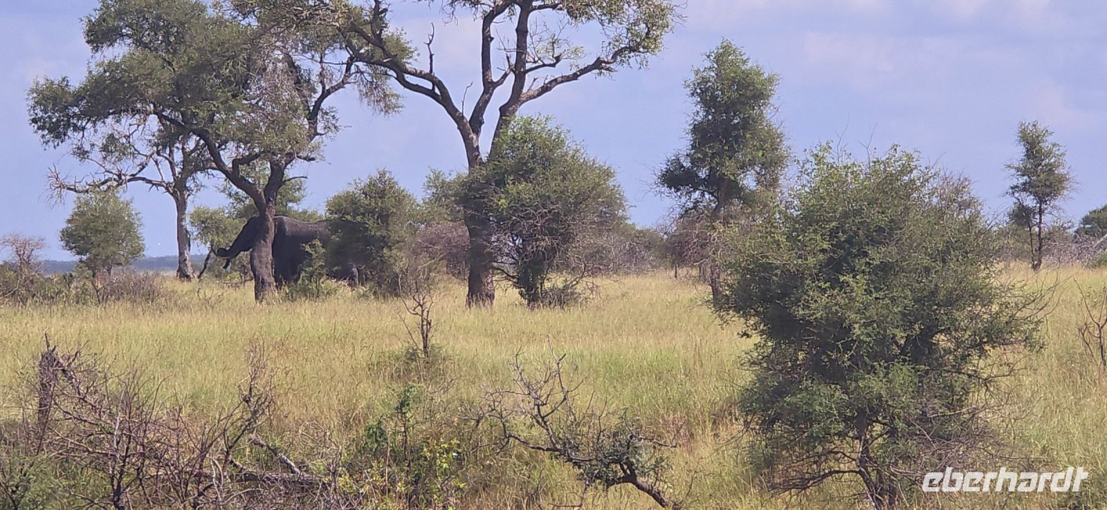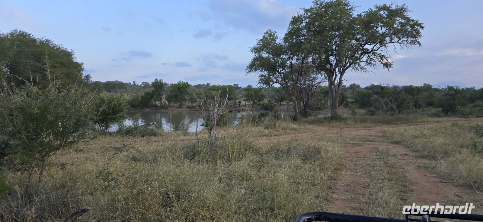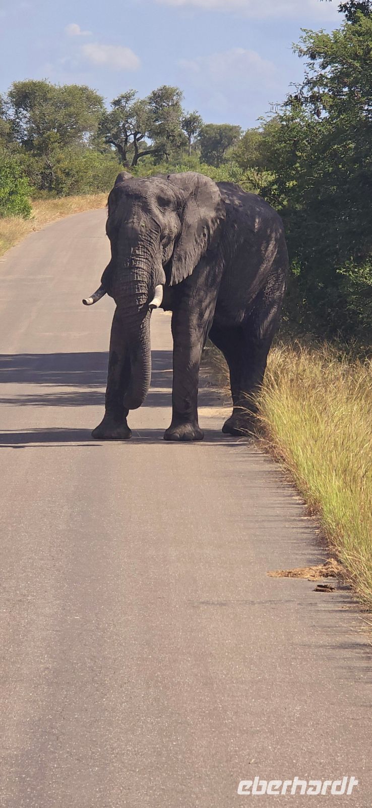 Die Fahrt zum Gate dauert gut eine Stunde, und bei 80 km/h im offenen Jeep sorgt der morgendliche Wind für eine eher erfrischende Begrüßung. Doch das frühe Aufstehen wird bereits vor dem Park belohnt: ein stattlicher Elefantenbulle trottet direkt an uns vorbei – ein Vorgeschmack auf das, was noch kommen wird. Und dann beginnt das eigentliche Spektakel: Herde um Herde zieht an uns vorbei, Impalas, Zebras, Gnus – als hätten sie sich extra für uns versammelt. Elefanten kreuzen gemütlich unseren Weg, Kudus posieren zwischen den Bäumen, und selbst die immer lustig aussehenden Wasserböcke mit ihren „Klositz“-Hinterteilen lassen sich blicken.