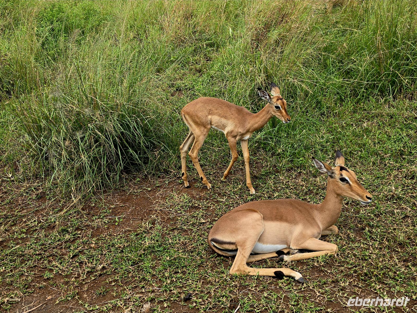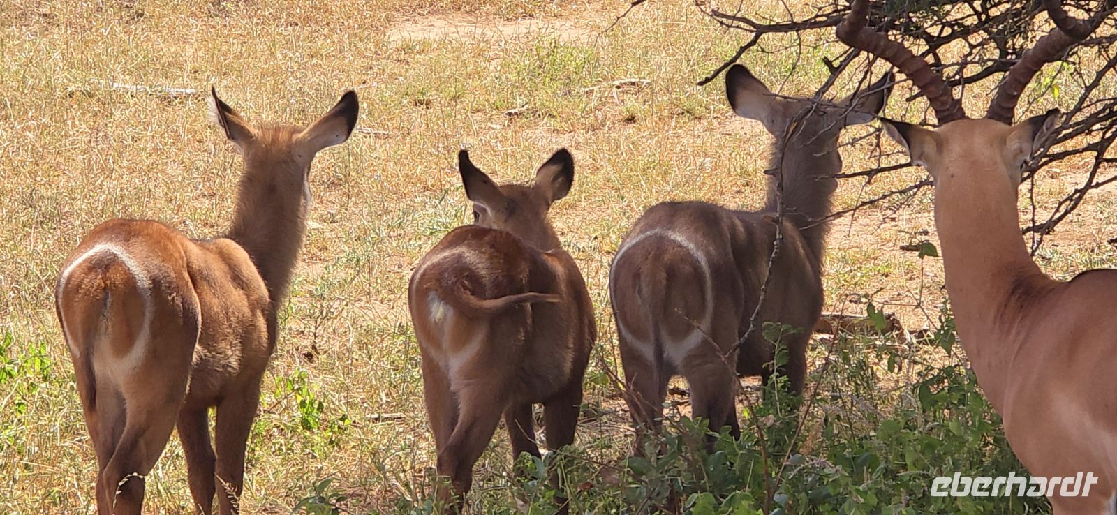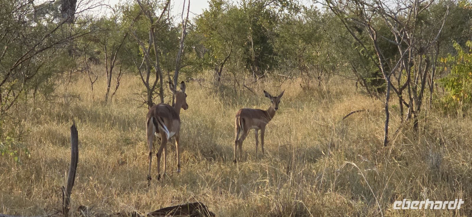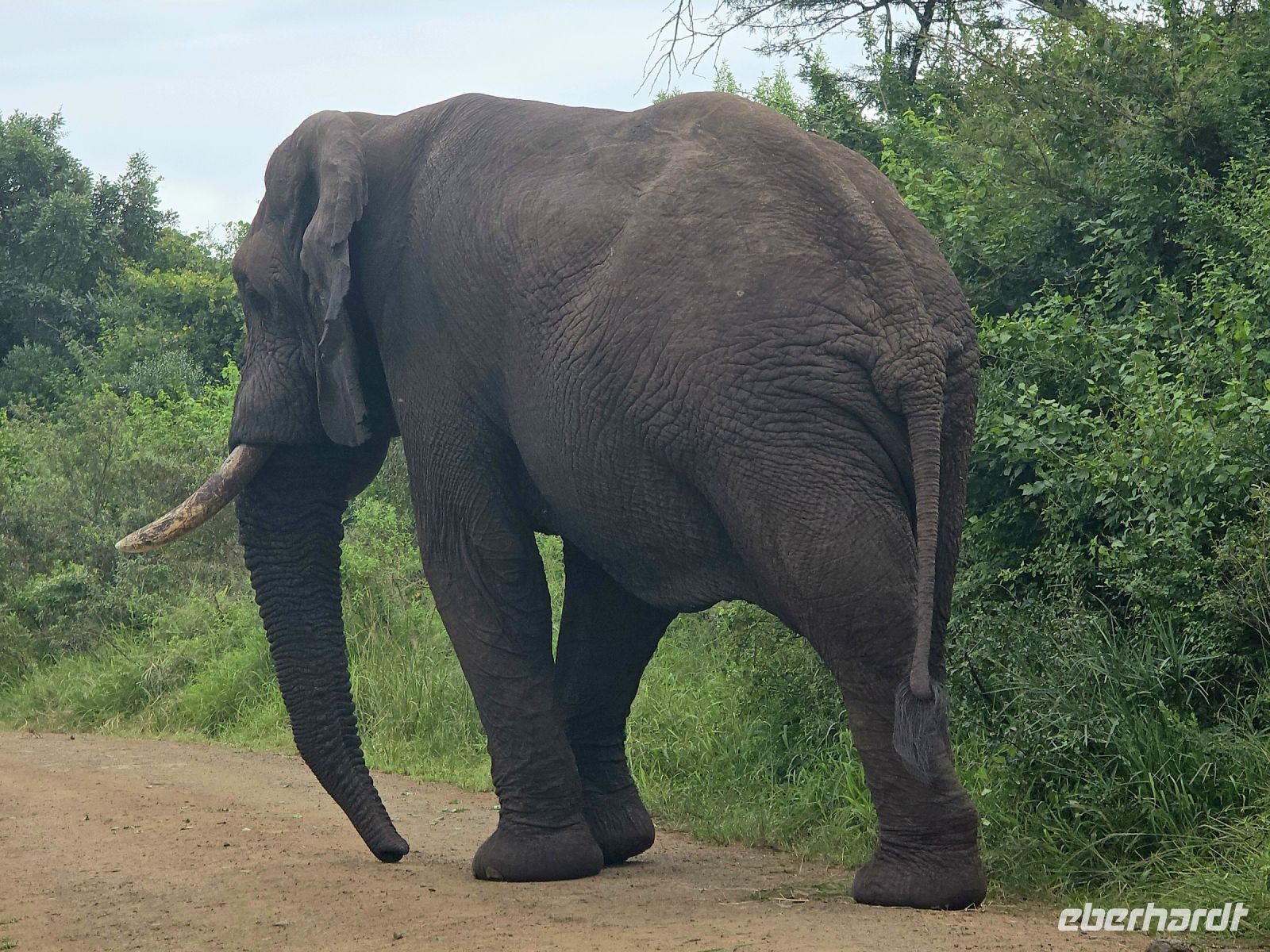 Die Fahrt zum Gate dauert gut eine Stunde, und bei 80 km/h im offenen Jeep sorgt der morgendliche Wind für eine eher erfrischende Begrüßung. Doch das frühe Aufstehen wird bereits vor dem Park belohnt: ein stattlicher Elefantenbulle trottet direkt an uns vorbei – ein Vorgeschmack auf das, was noch kommen wird. Und dann beginnt das eigentliche Spektakel: Herde um Herde zieht an uns vorbei, Impalas, Zebras, Gnus – als hätten sie sich extra für uns versammelt. Elefanten kreuzen gemütlich unseren Weg, Kudus posieren zwischen den Bäumen, und selbst die immer lustig aussehenden Wasserböcke mit ihren „Klositz“-Hinterteilen lassen sich blicken.
