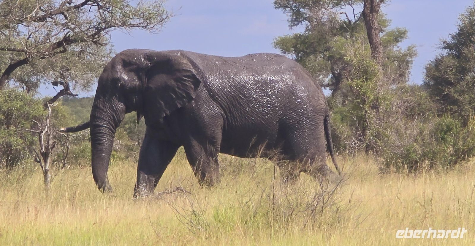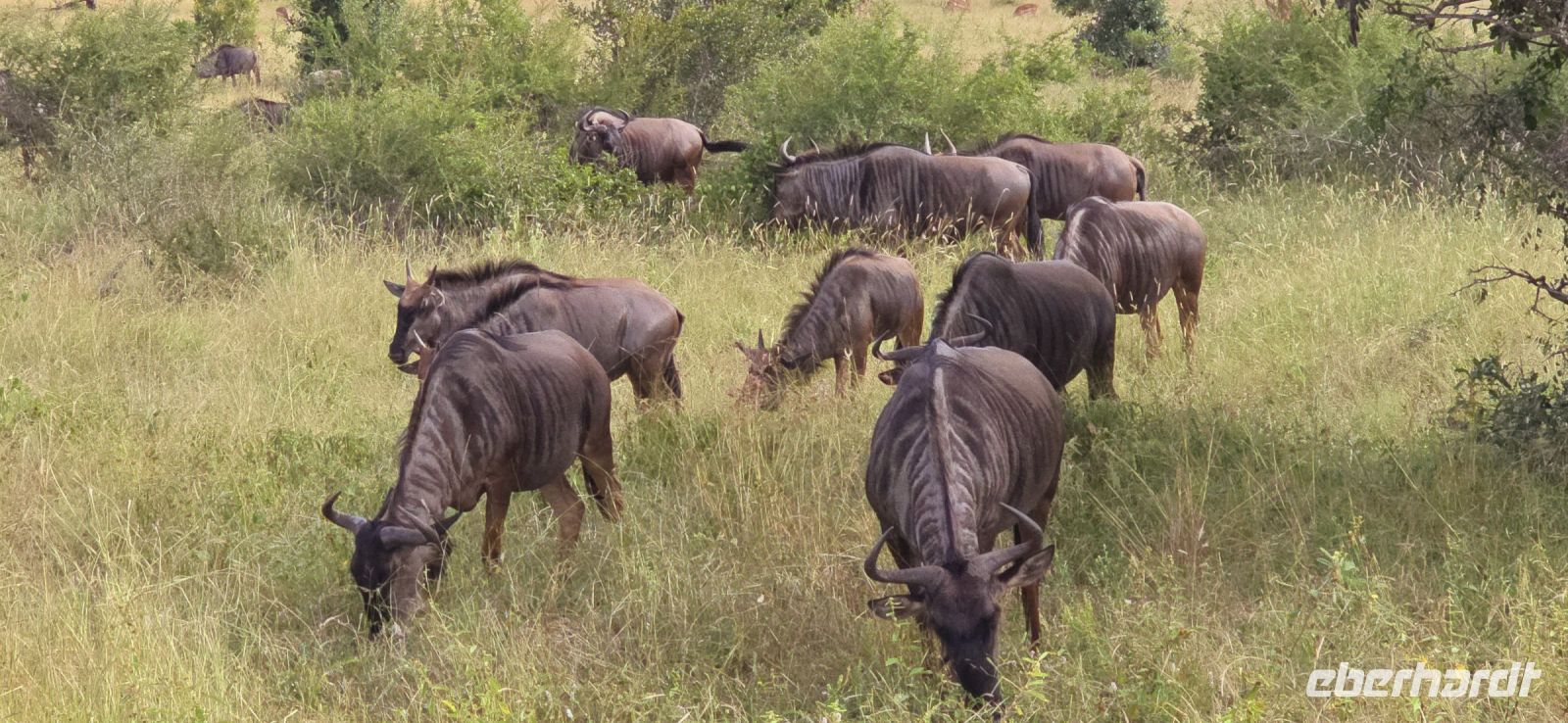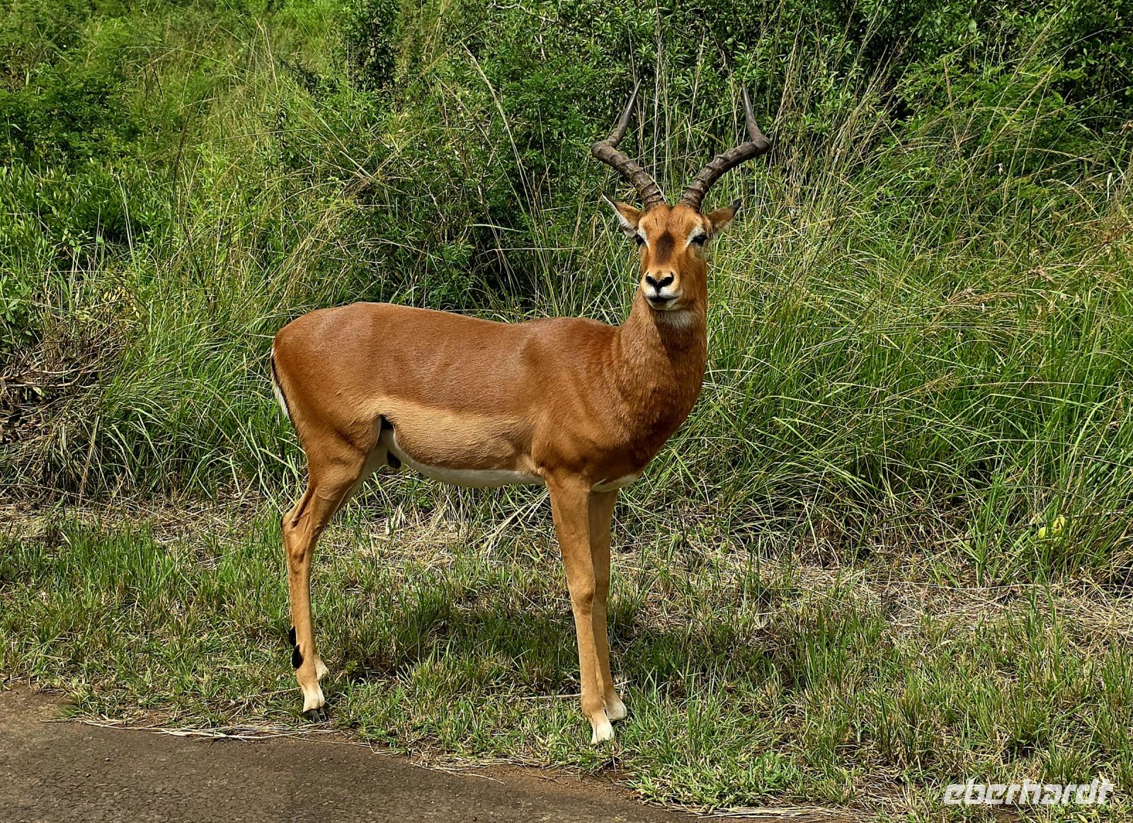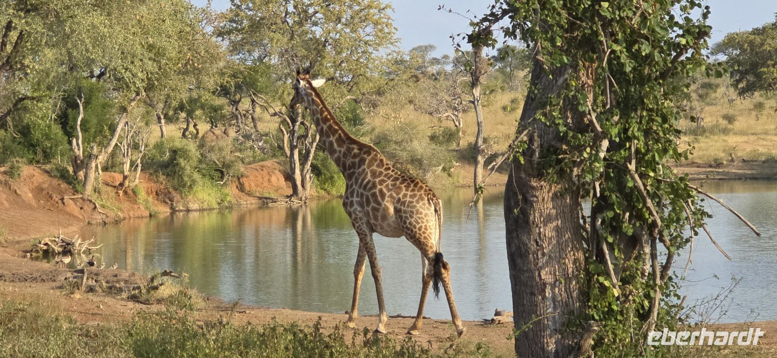 Die Fahrt zum Gate dauert gut eine Stunde, und bei 80 km/h im offenen Jeep sorgt der morgendliche Wind für eine eher erfrischende Begrüßung. Doch das frühe Aufstehen wird bereits vor dem Park belohnt: ein stattlicher Elefantenbulle trottet direkt an uns vorbei – ein Vorgeschmack auf das, was noch kommen wird. Und dann beginnt das eigentliche Spektakel: Herde um Herde zieht an uns vorbei, Impalas, Zebras, Gnus – als hätten sie sich extra für uns versammelt. Elefanten kreuzen gemütlich unseren Weg, Kudus posieren zwischen den Bäumen, und selbst die immer lustig aussehenden Wasserböcke mit ihren „Klositz“-Hinterteilen lassen sich blicken.