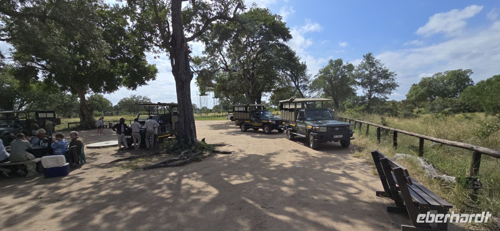 Der Morgen– und er beginnt früh. Sehr früh. Für einige in der Gruppe definitiv zu früh. Doch Safari ist kein Langschläfer-Programm, also heißt es: raus aus den Betten, rein in die Lobby, ein warmes Getränk schnappen und die üppige Lunchbox sichern. Dann stehen auch schon die Jeeps bereit, und wir machen uns auf den Weg zum Kruger-Nationalpark.