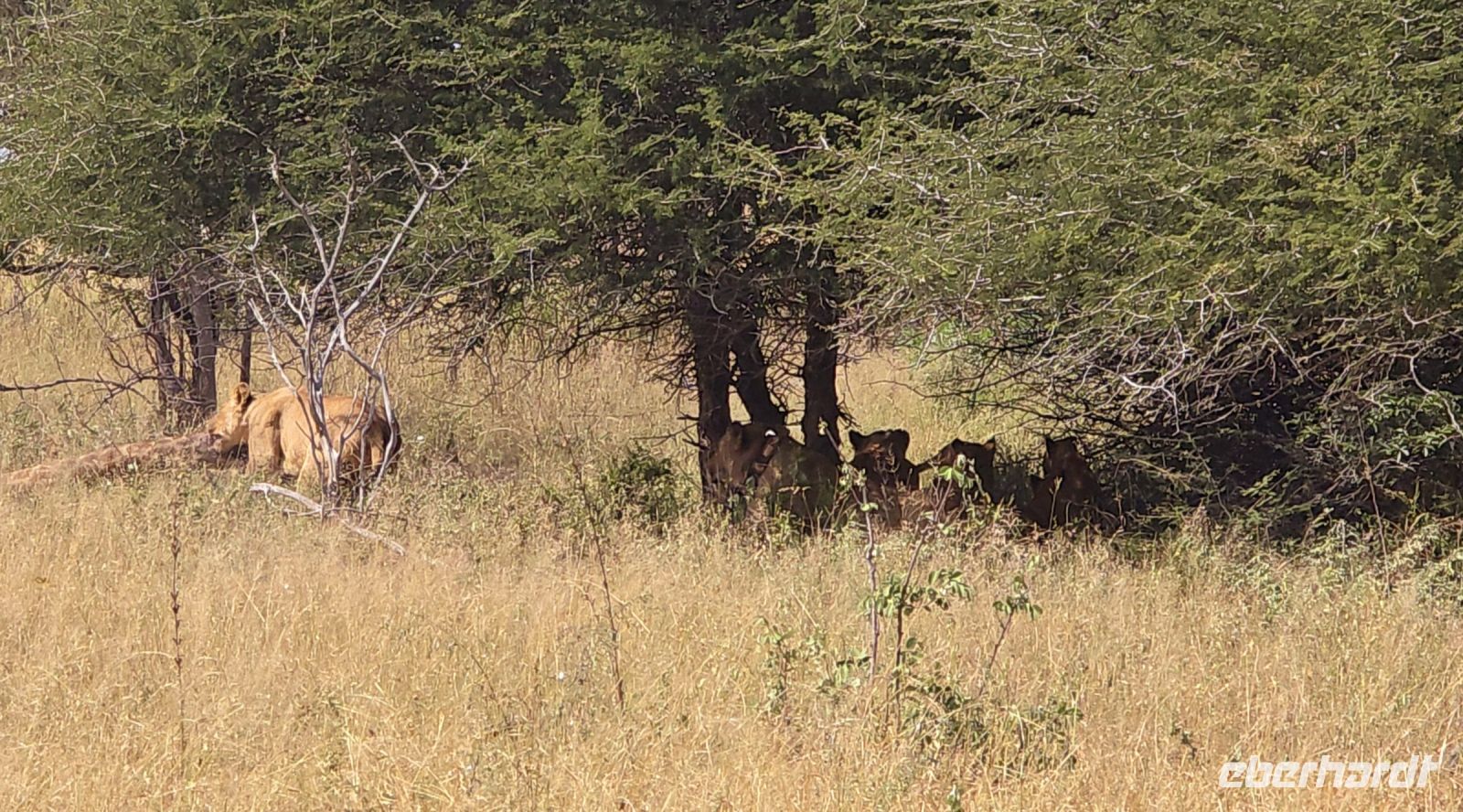 Und dann – der Höhepunkt des Tages. Der Geruch von Beute liegt in der Luft. Eine Löwin zieht eine gerissene Giraffe in den Schatten, während ihre Jungen sich gierig auf das Mahl stürzen. Über uns warten bereits die Geier auf ihre Chance, und nur wenige Meter entfernt schleichen Hyänen ungeduldig umher, bereit, in der Nacht ihren Teil zu ergattern. Ein wahres Schauspiel der Natur, das uns alle sprachlos macht.