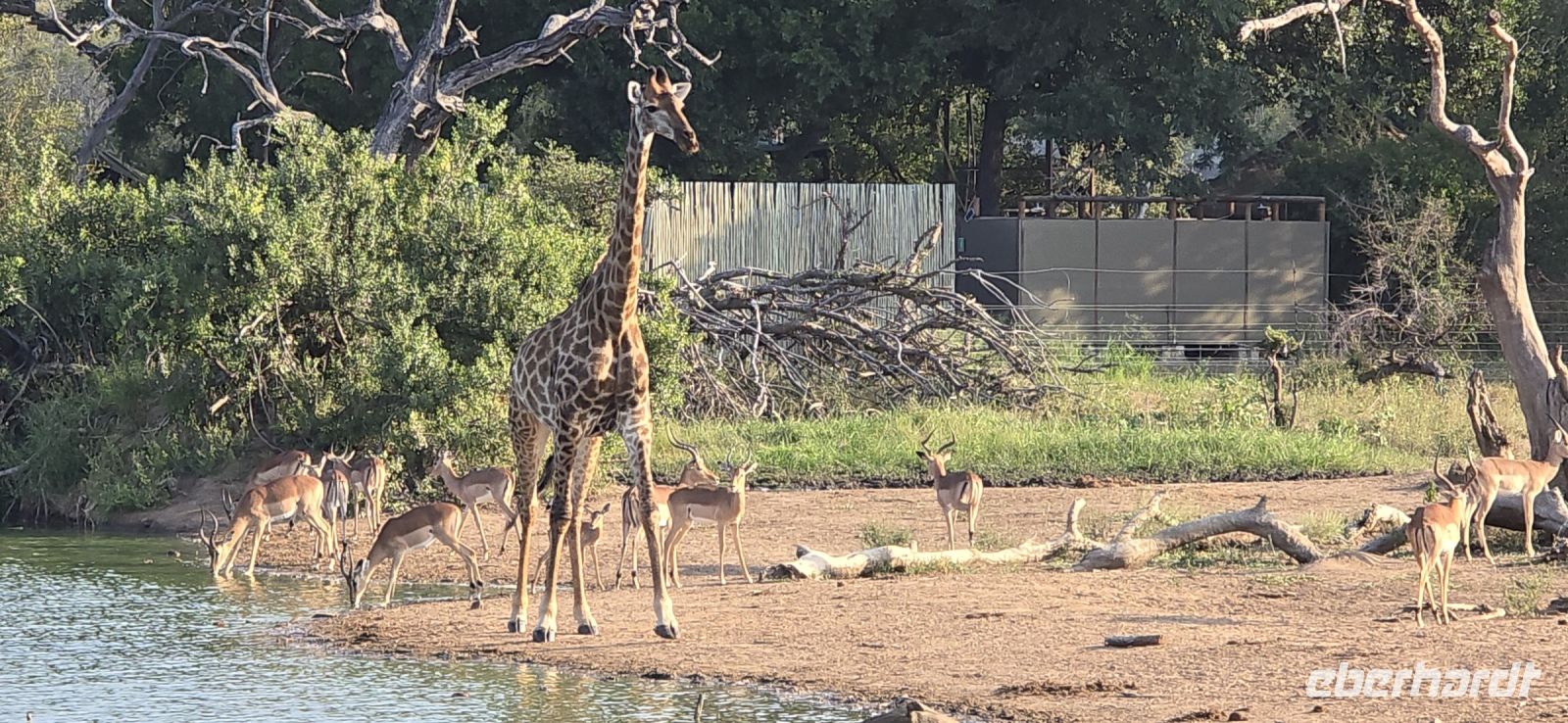 Auf dem Spaziergang zurück zur Lodge kam es in der Dämmerung zu einer unerwarteten Begegnung, als eines der Gruppenmitglieder fast mit einem Warzenschwein kollidierte, das gemütlich auf dem Fußweg stand. Der Abend klang in der gemütlichen Lodge mit leckerem afrikanischen Essen aus. Ein besonderes Highlight war die Feier für unser Geburtstagskind, das mit einem Ständchen und einem Törtchen geehrt wurde. Einige blieben noch nach dem Essen beim köstlichen Wein sitzen und ließen den Tag mit einem letzten Schlückchen in geselliger Runde ausklingen.