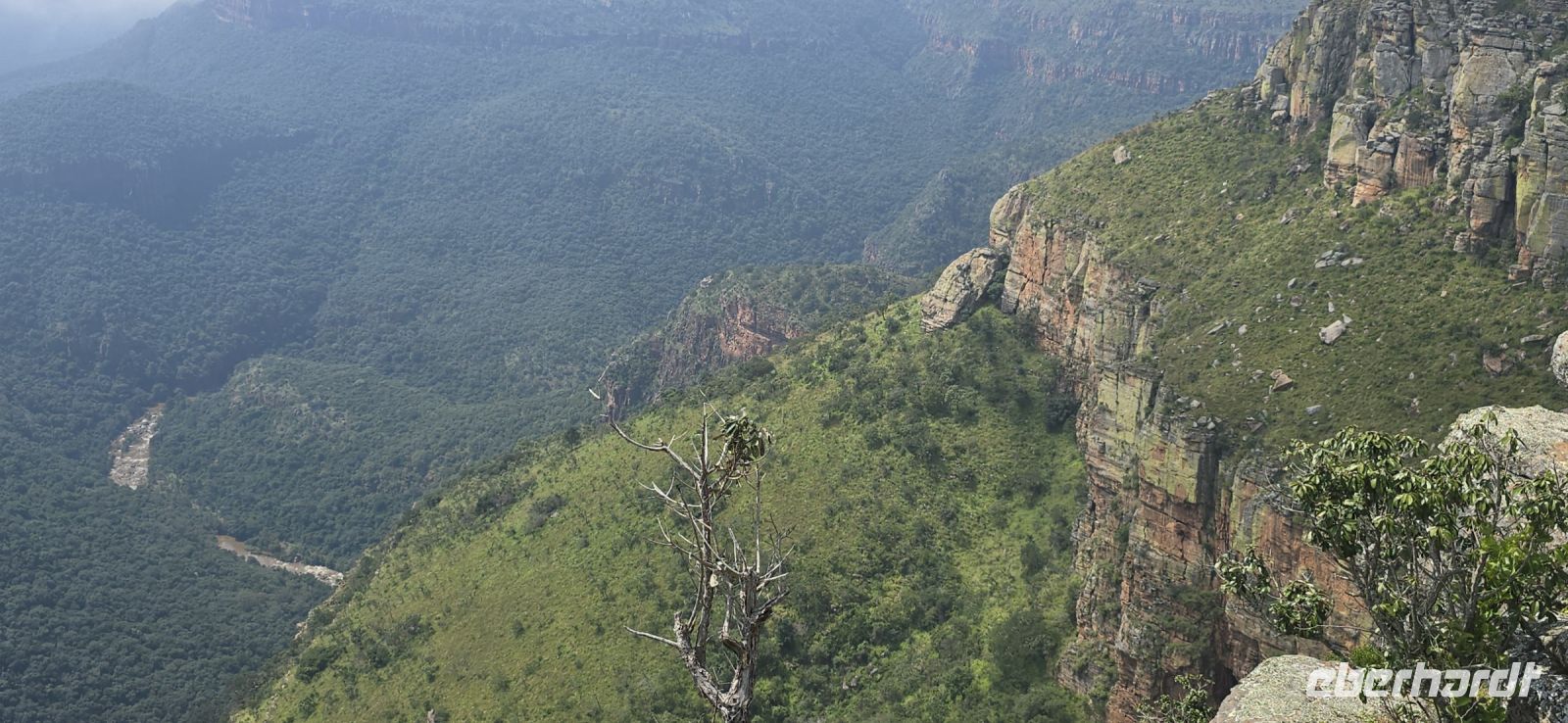 Unser nördlichster Punkt der heutigen Tour wäre der berühmte Aussichtspunkt Three Rondavels, doch wegen eines Streiks bleibt die Zufahrt leider geschlossen. Doch wir improvisieren schnell und steuern stattdessen den Lowveld View an. Die Traumaussicht auf den Canyon und den Blyderiver in alle Richtungen entschädigt uns mehr als genug für den Ausfall.