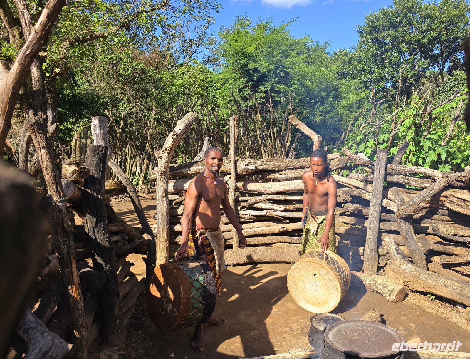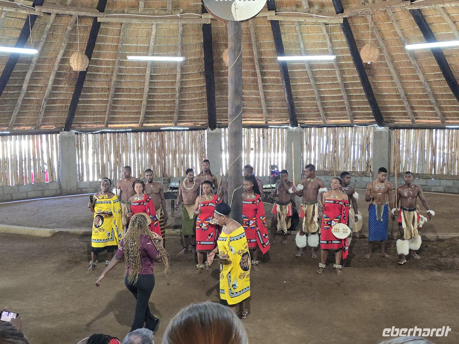 Zur Mittagspause gibt es eine breite Auswahl an Speisen, und wer sich für Pommes entscheidet, bekommt wirklich eine riesige Portion. Auch das lokale Bier überzeugt mit seinem würzigen Geschmack. Danach geht es weiter zum Mantenga Cultural Village, wo wir eine spannende Führung durch ein traditionelles Dorf erleben. Die alten Bräuche und Lebensweisen der Swasi werden uns anschaulich erklärt. Im Hintergrund ragt der imposante Execution Rock auf, der Todesfelsen, an dem in früheren Zeiten Verurteilte hinabgestürzt wurden. Besonders beeindruckend ist die Aufführung mit Gesang und traditionellen Tänzen, die verschiedene Lebenssituationen und Zeremonien der Swasi nachstellen und die Jahrhunderte alten Traditionen lebendig werden lassen.