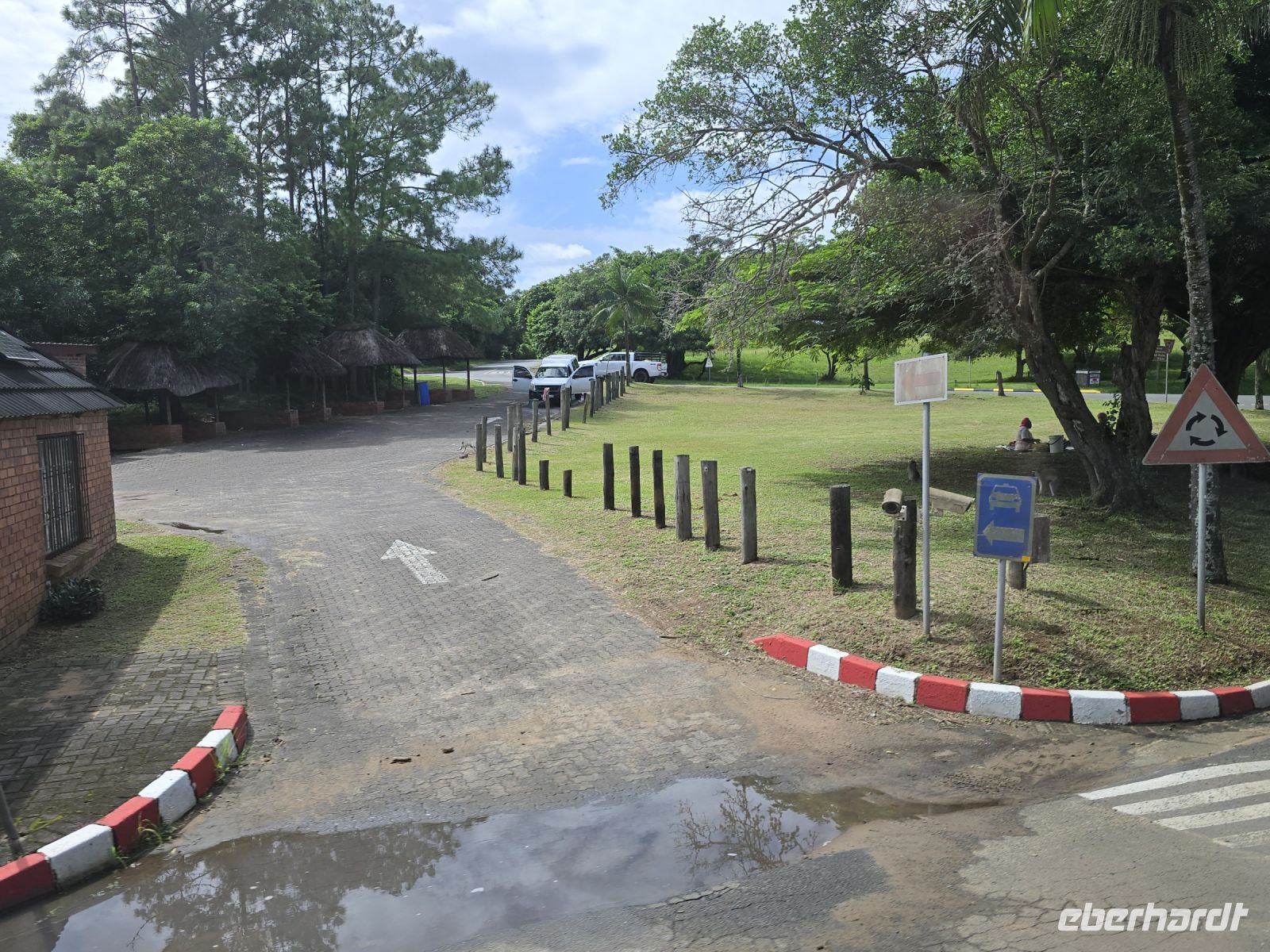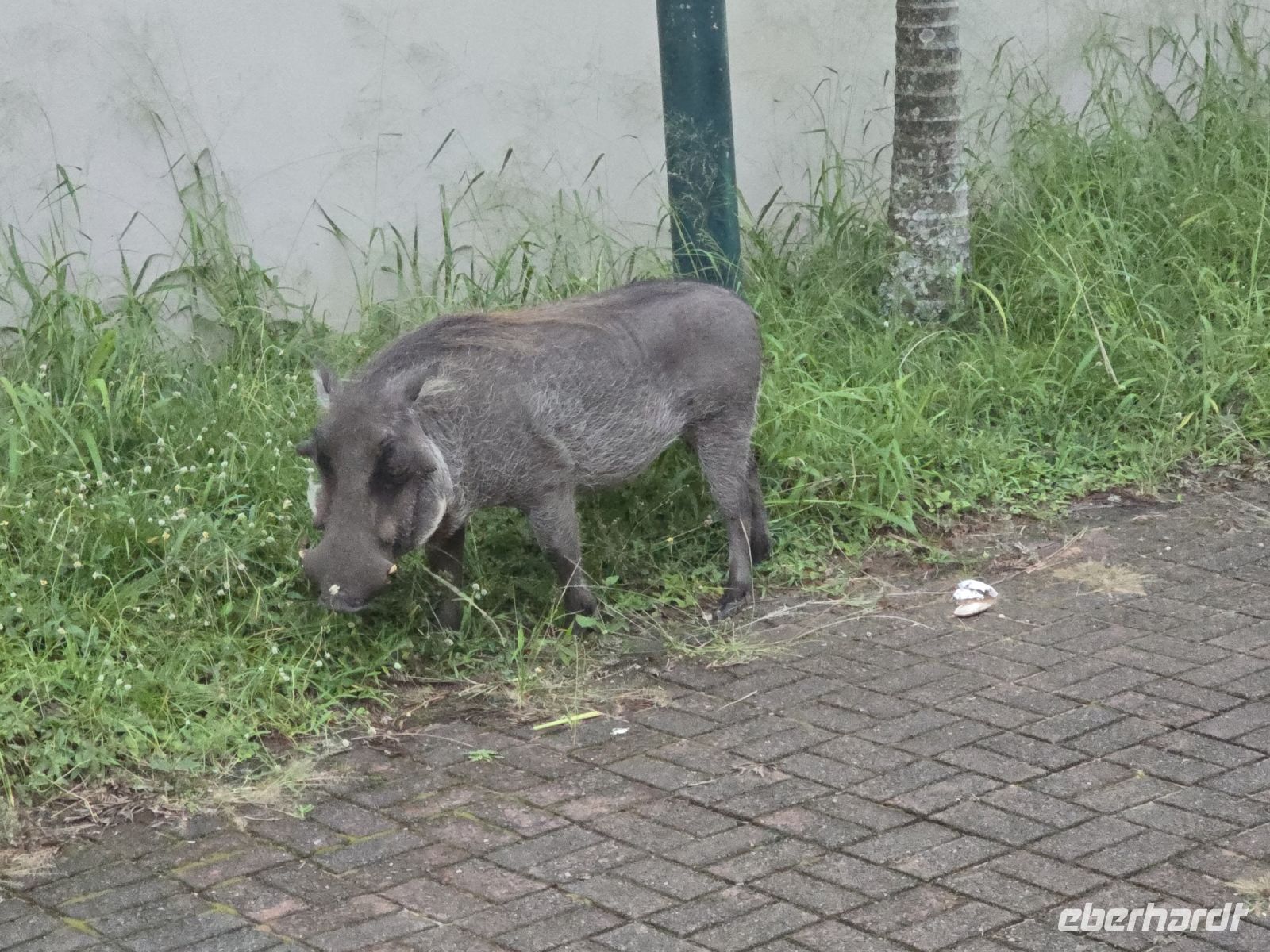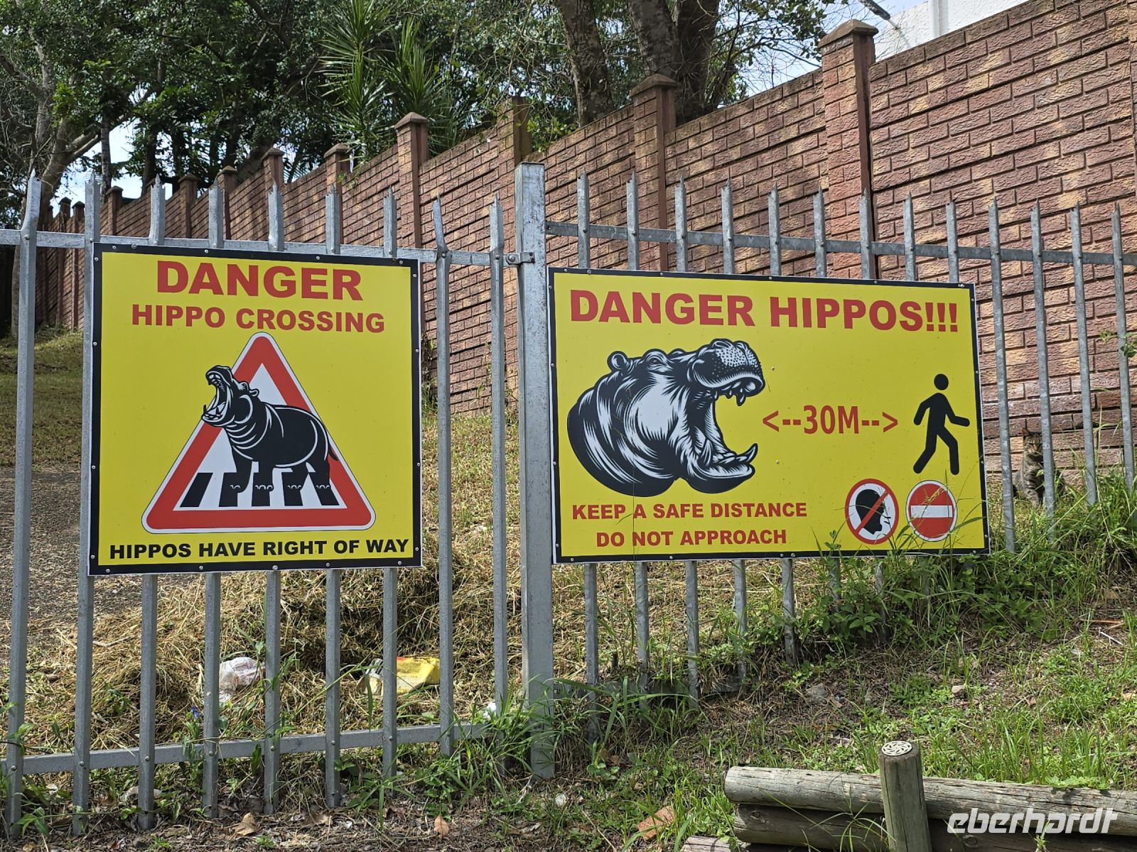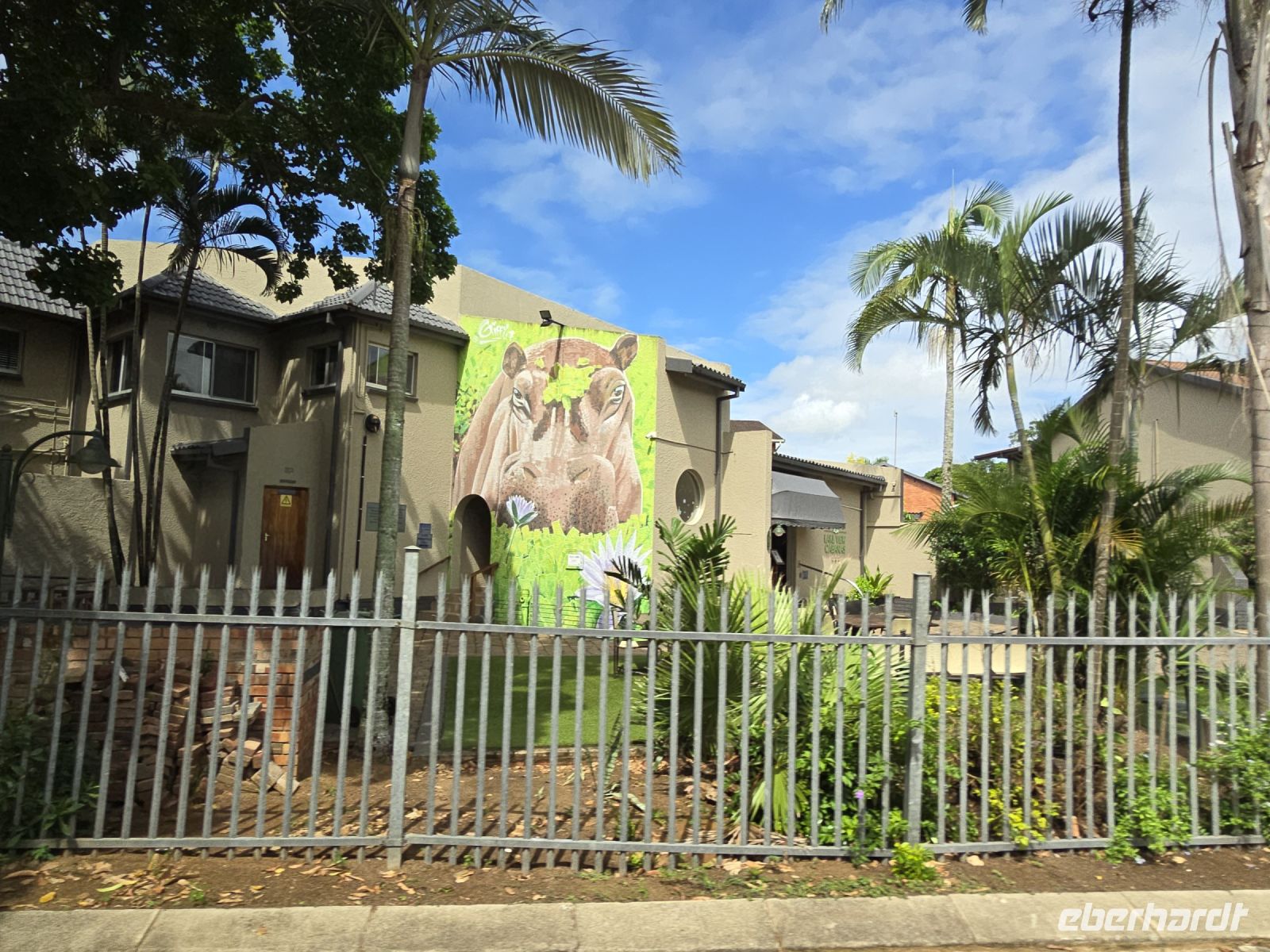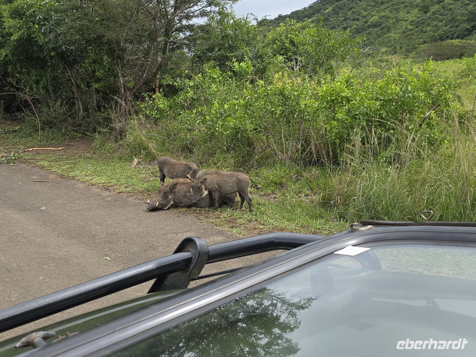 Auf halber Strecke legten wir eine kurze Pause ein, bevor wir schließlich St. Lucia erreichten, die Hippo-Hauptstadt, in der nachts die Tiere durch den Ort streifen. Warnschilder am Straßenrand machten auf die echte Gefahr aufmerksam. Unsere Lodge entpuppte sich als uriges Dschungelcamp mit sehr komfortablen Zimmern, eingebettet in einen Garten mit üppiger Vegetation. Die Mittagspause wurde genutzt, um den Ort zu erkunden und Bekanntschaft mit den hier lebenden Warzenschweinen und Grünen Meerkatzen zu machen.