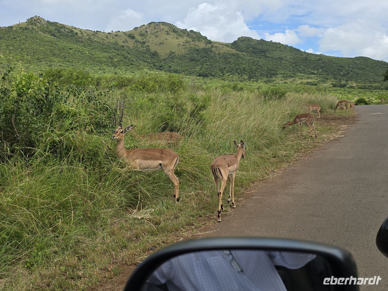 Noch vor dem Rückweg begegneten wir einer kleinen Herde Elands und einer besonders lebhaften Pavianfamilie, die mitten auf der Straße spielend für ein Verkehrschaos sorgte. Doch unser Fahrer meisterte auch diese Herausforderung souverän.