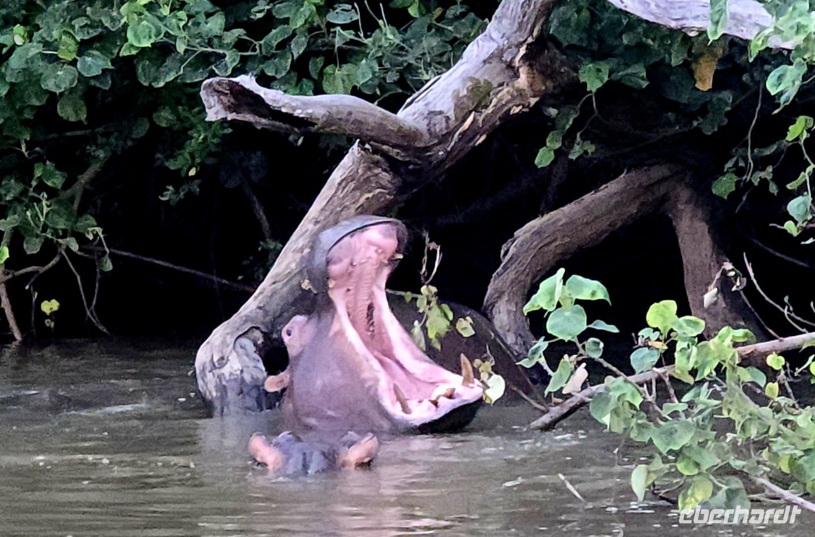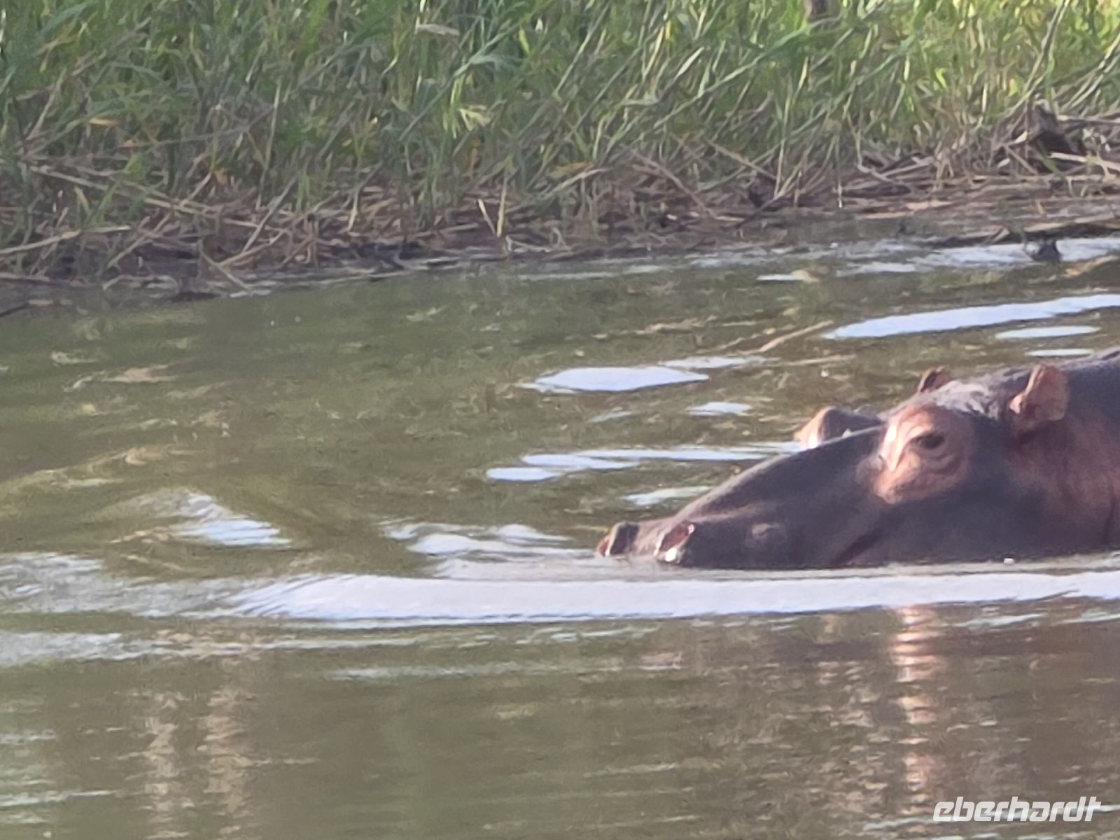 Am Nachmittag unternahmen wir eine Bootssafari, die für große Begeisterung sorgte. Die ersten Flusspferde ließen nicht lange auf sich warten, darunter auch einige Jungtiere und Babies. Immer wieder tauchten Gruppen von Hippos auf, die entspannt im Wasser trieben oder beeindruckend gähnten und dabei ihr gewaltiges Maul aufrissen. Dazu gesellten sich Königsfischer, Eisvögel, Milane und Adler, während am Ufer ein Warzenschwein durch das Gebüsch streifte. Krokodile blieben uns an diesem Tag verborgen – doch das gibt uns einen Grund für eine nächste Reise.