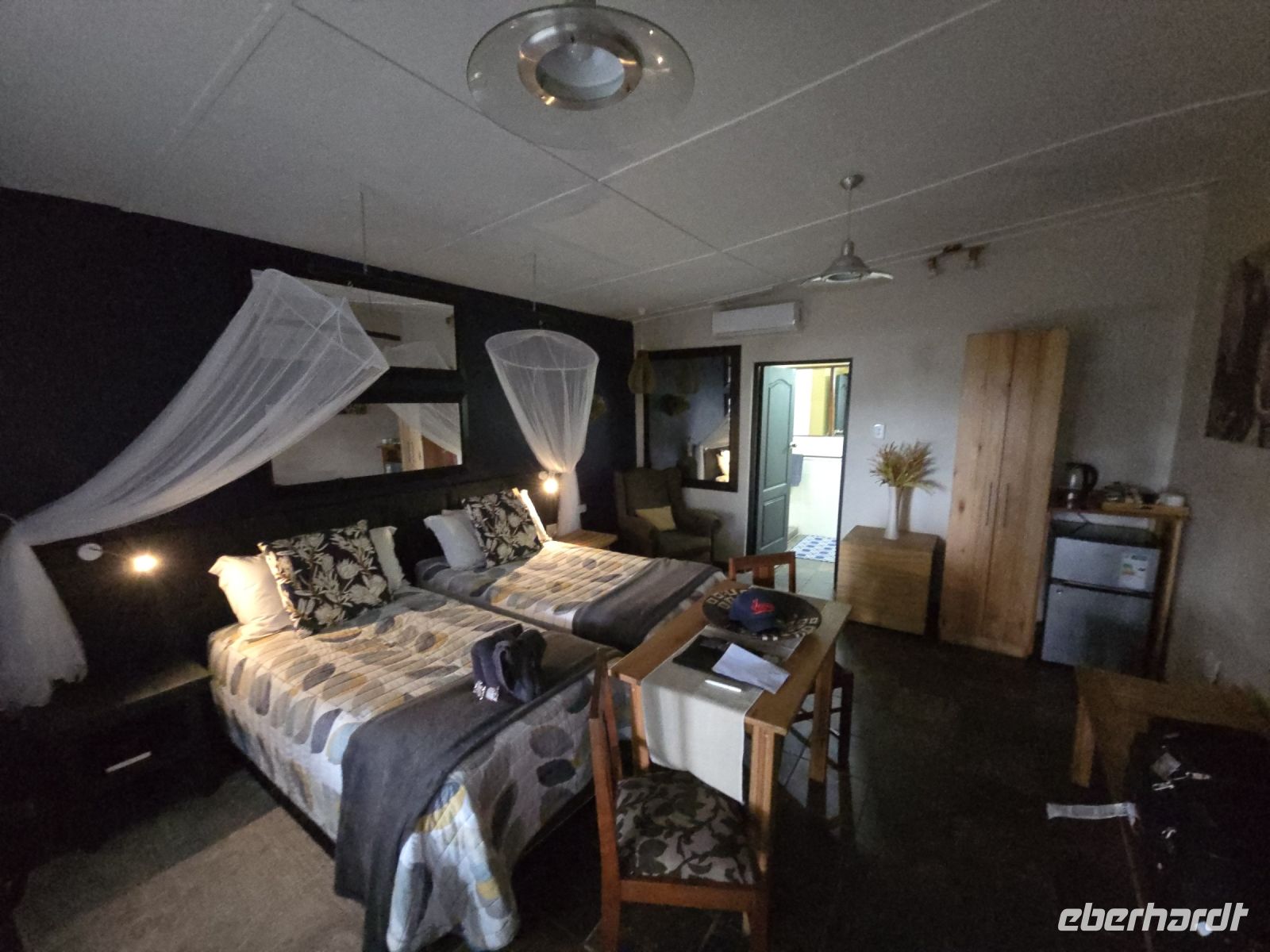 Am Flughafen begrüßte uns unser Guide Doomie von Wild Horizons mit einem freundlichen Lächeln. Nach einer kurzen Fahrt erreichten wir unsere Unterkunft, die wunderschöne Pioneer Lodge – eine wahre Oase der Ruhe. Nach einer kurzen Einweisung in alles Wissenswerte blieb Zeit zum Entspannen und Ankommen.