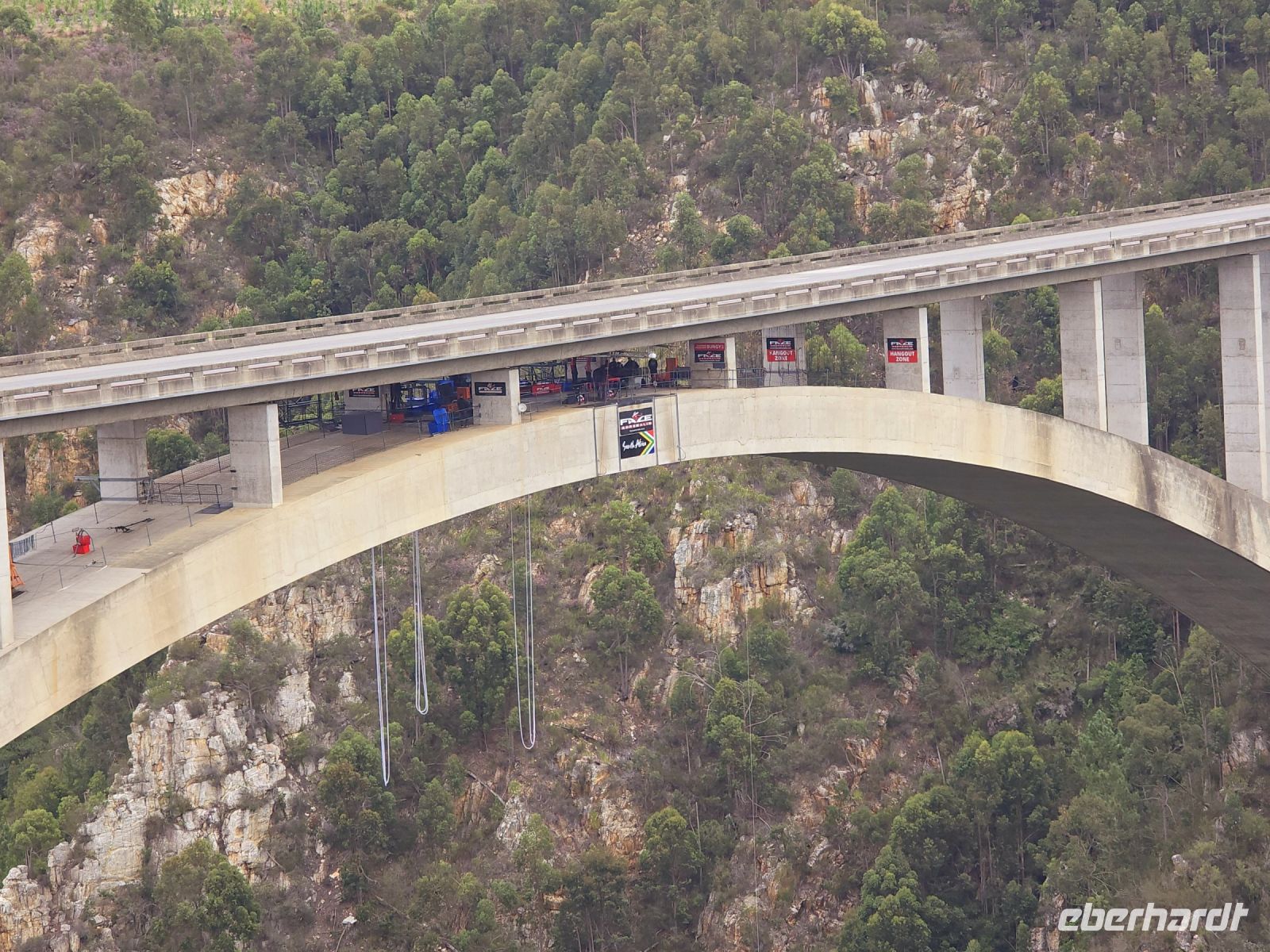 Von oben beobachten wir wagemutige Zipliner und Adrenalinjunkies, die sich beim Big Swing in die Tiefe stürzen – ein Nervenkitzel, den wir lieber aus sicherer Entfernung bestaunen. Ein kurzer Wanderweg führt uns schließlich über eine große Hängebrücke mit einem spektakulären Blick auf den Canyon.