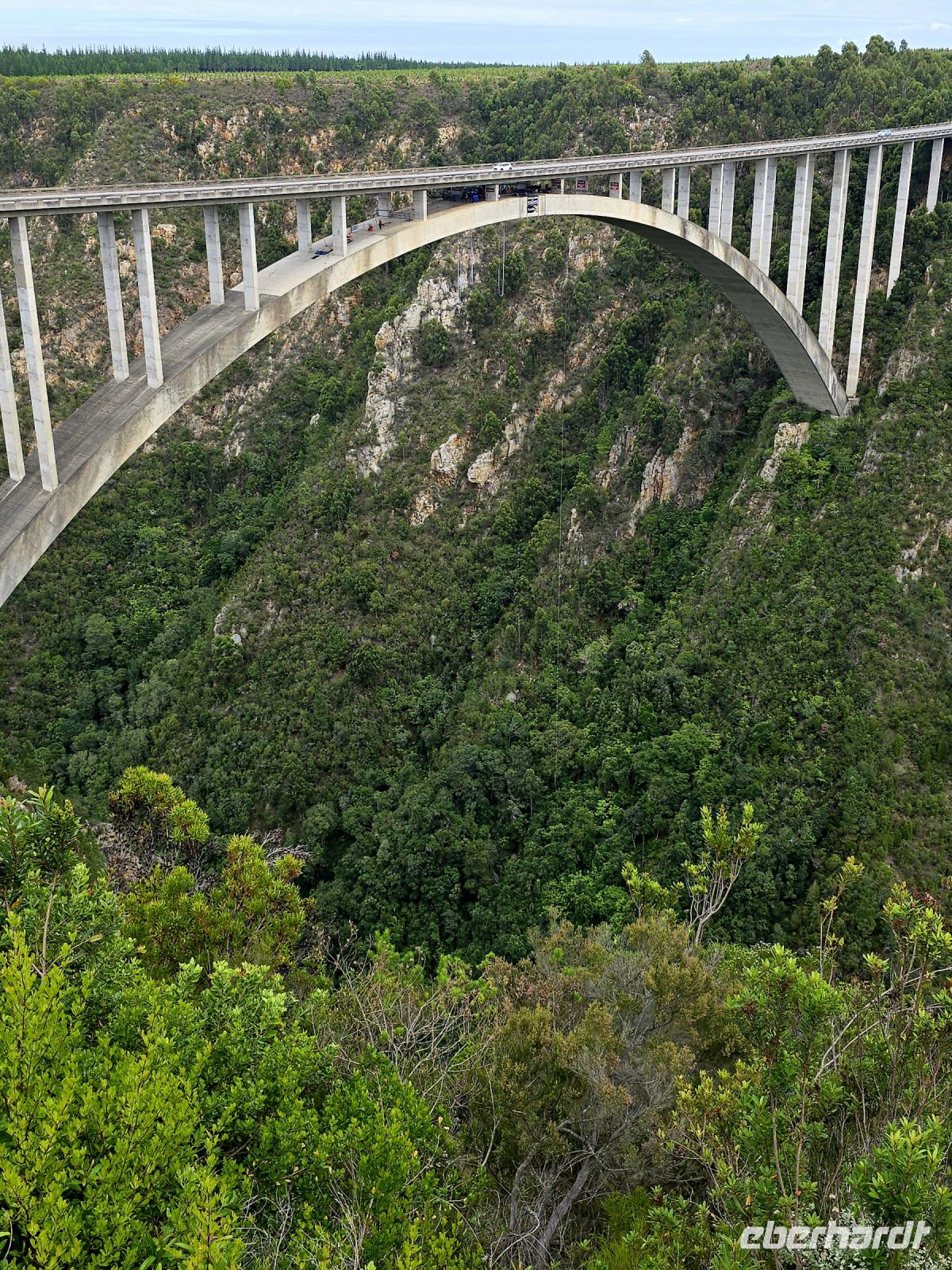 Unser erster Stopp führte uns zum Aussichtspunkt Lookout Bay View in Plettenberg Bay, wo uns ein atemberaubender Blick auf die Küste erwartete. Die Mischung aus türkisblauem Wasser, endlosen Stränden und sattgrünen Hügeln hätte locker als Hintergrundbild für einen Reiseprospekt getaugt. Doch lange blieb keine Zeit zum Schwärmen, denn es ging weiter zur Bloukrans Bridge, dem absoluten Mekka für Bungee-Jumper. Beeindruckende 216 Meter stürzt man sich hier in die Tiefe – also theoretisch. Praktisch sprang während unseres Stopps niemand, und es stellte sich heraus, dass auch in unserer Gruppe niemand scharf darauf war, der nächste Fotoheld zu werden. Stattdessen blieb es bei staunenden Blicken und einem einvernehmlichen Nicken: mutig, aber bitte ohne uns.