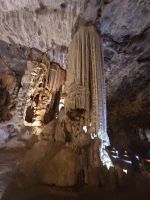 Nächstes Highlight: Die Cango Caves! Schon von außen beeindruckend, doch was uns im Inneren erwartet, übersteigt alle Vorstellungen. Riesige Hallen, von der Natur in Jahrtausenden gemeißelt, Stalaktiten und Stalagmiten, die sich über Ewigkeiten hinweg zu steinernen Türmen vereinen. Unser Guide? Eine Show für sich! Mit charmantem Akzent, der irgendwo zwischen „exotisch schönem Deutsch“ und kreativem Pantomime schwankt, führt er uns durch die Höhlen – immer mit einer geheimen Abkürzung in petto, um beim nächsten Höhepunkt zufällig vor uns zu stehen.