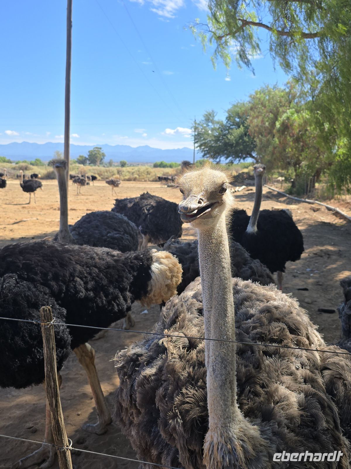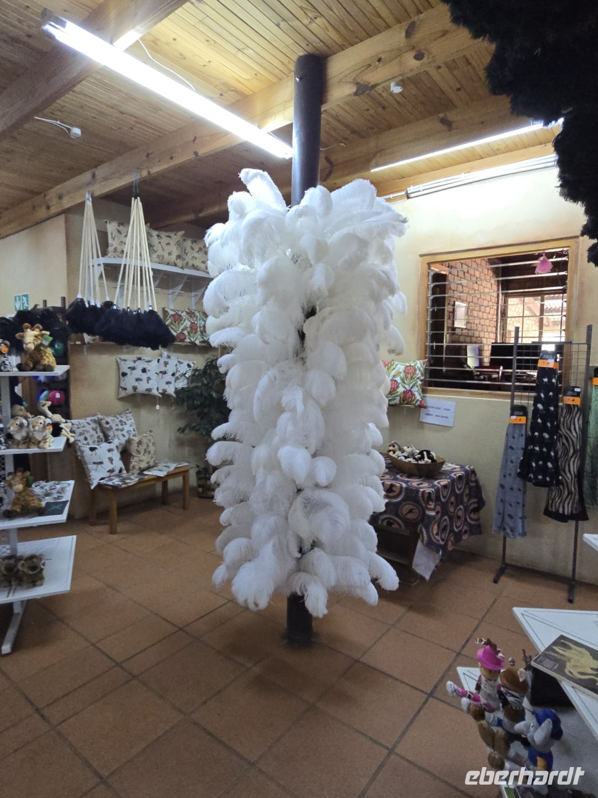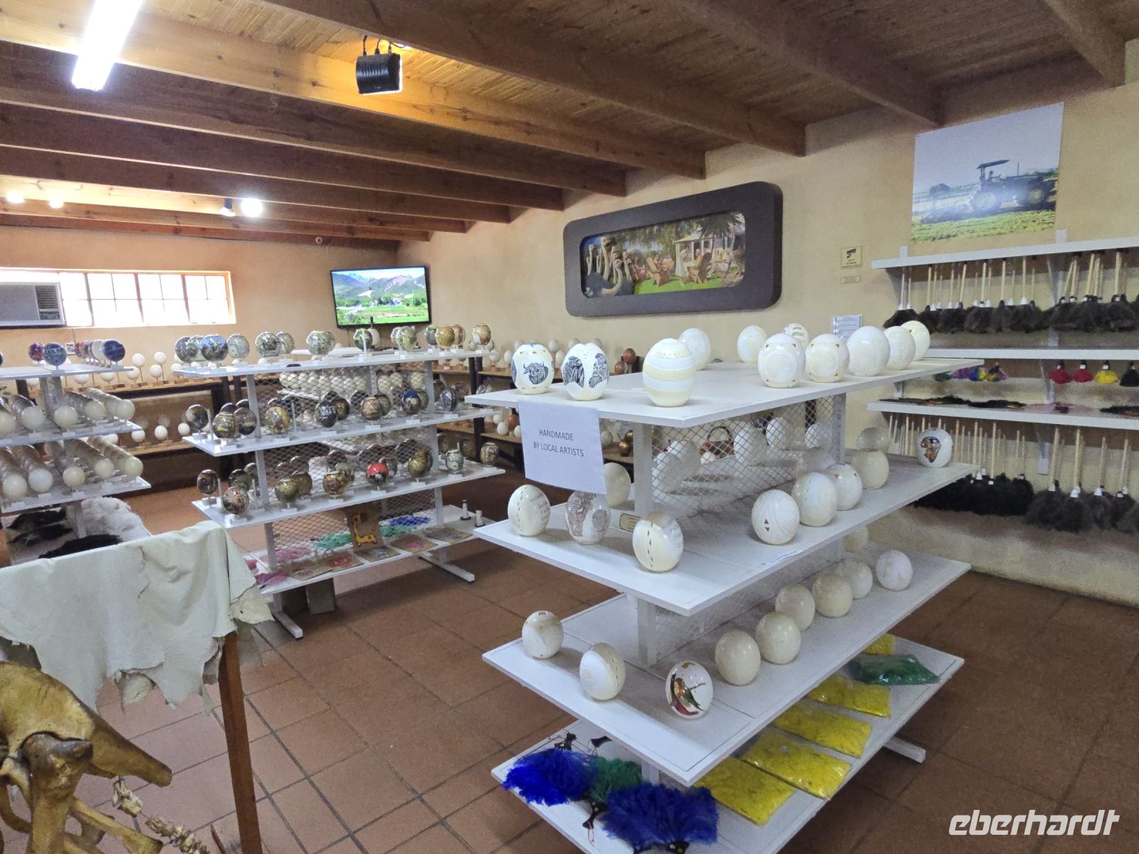 Zurück ans Tageslicht und weiter zur Straußenfarm. Hier ist alles XXL: Strauße in jeder Altersklasse, riesige Eier, die angeblich so stabil sind, dass man darauf stehen kann (Spoiler: Ja, es funktioniert wirklich!), und ein Brutofen, der aussieht, als könnte er glatt eine ganze Straußenherde gleichzeitig ausbrüten. Wir erleben die Fütterung, lernen, wie die Eier geprüft werden – und landen am Ende zwischen allerlei Straußensouvenirs. Von Federn über Leder bis hin zu Straußeneierlampen – hier gibt es wirklich alles.